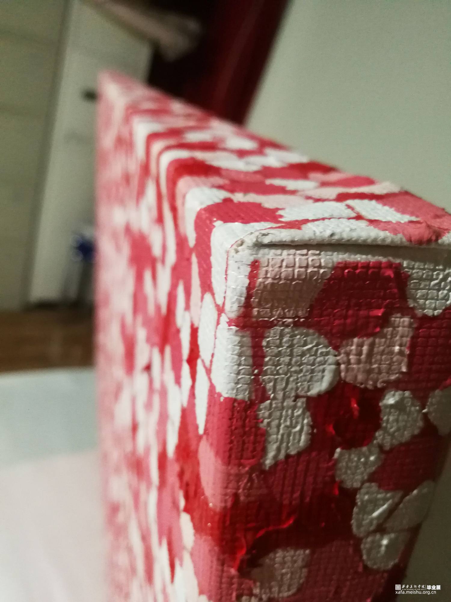创作的过程中,我在想怎么样可以把二维平面的作品来以三维的作品呈现,于是我利用了油画布框的边缘来进行绘制延伸。