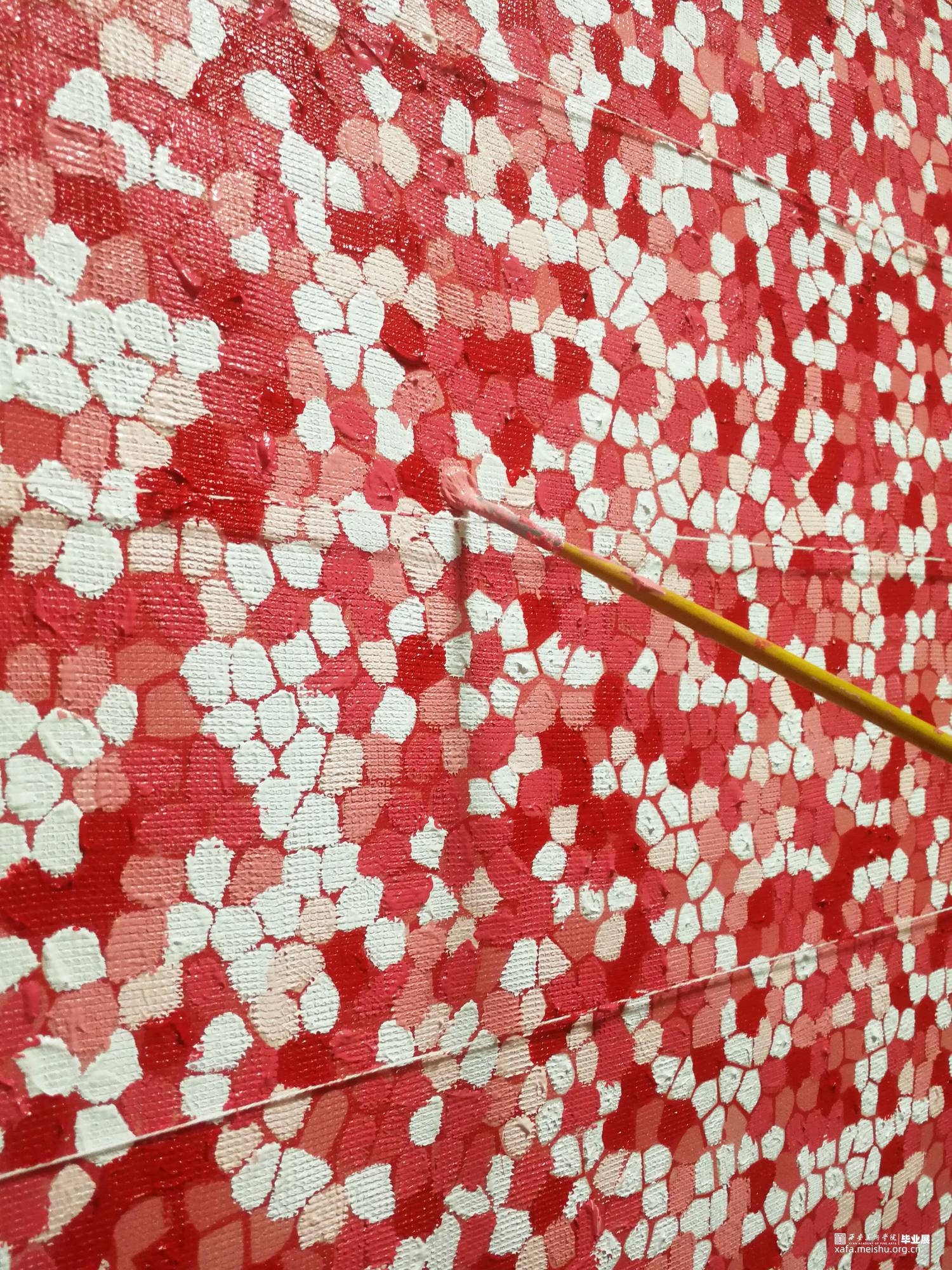 经过了前期多方位立体式的铺垫最终画面得以完成,采用木制内框、钉枪、绷布钳等相关工具材料进行加固固定。