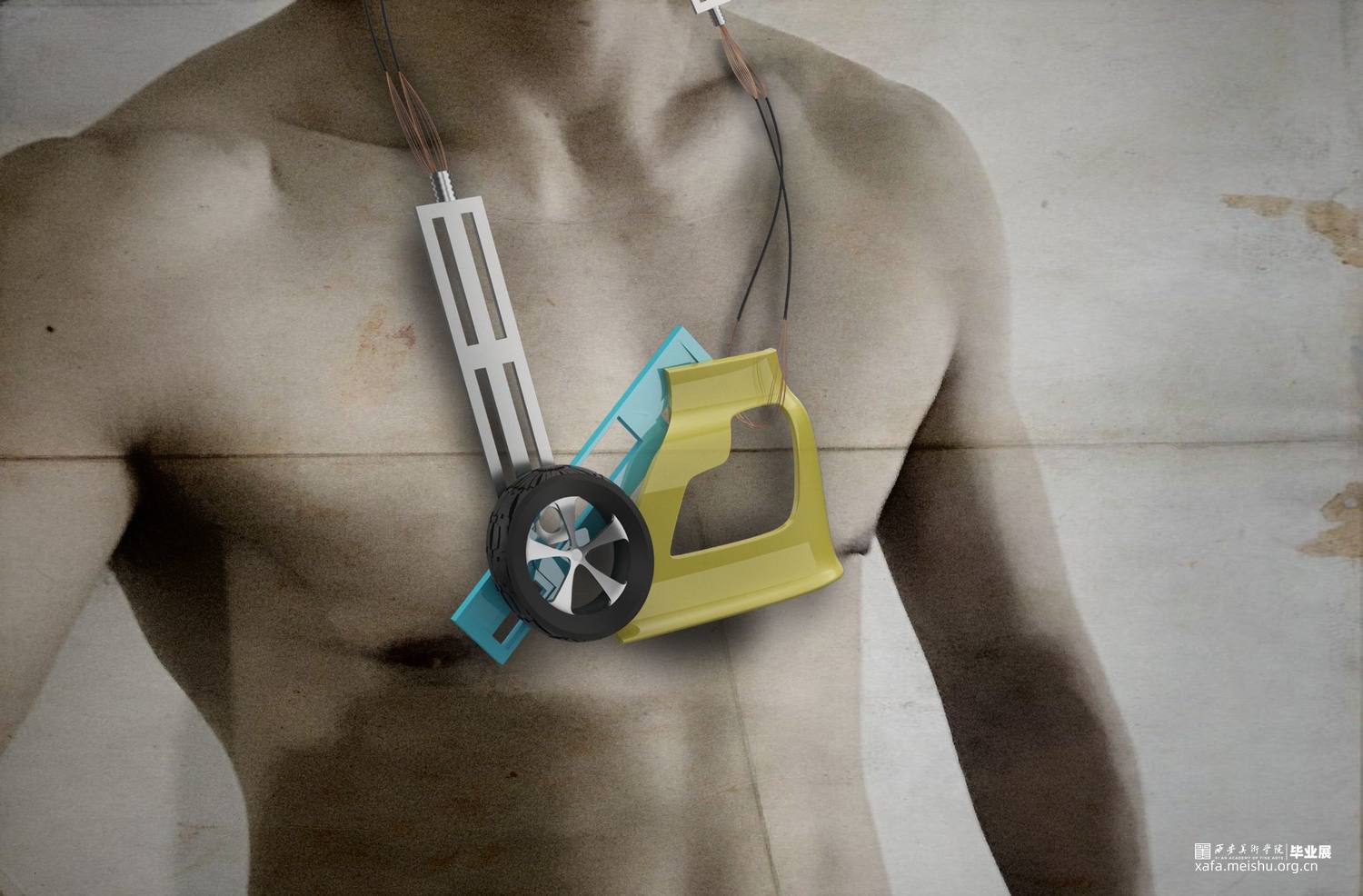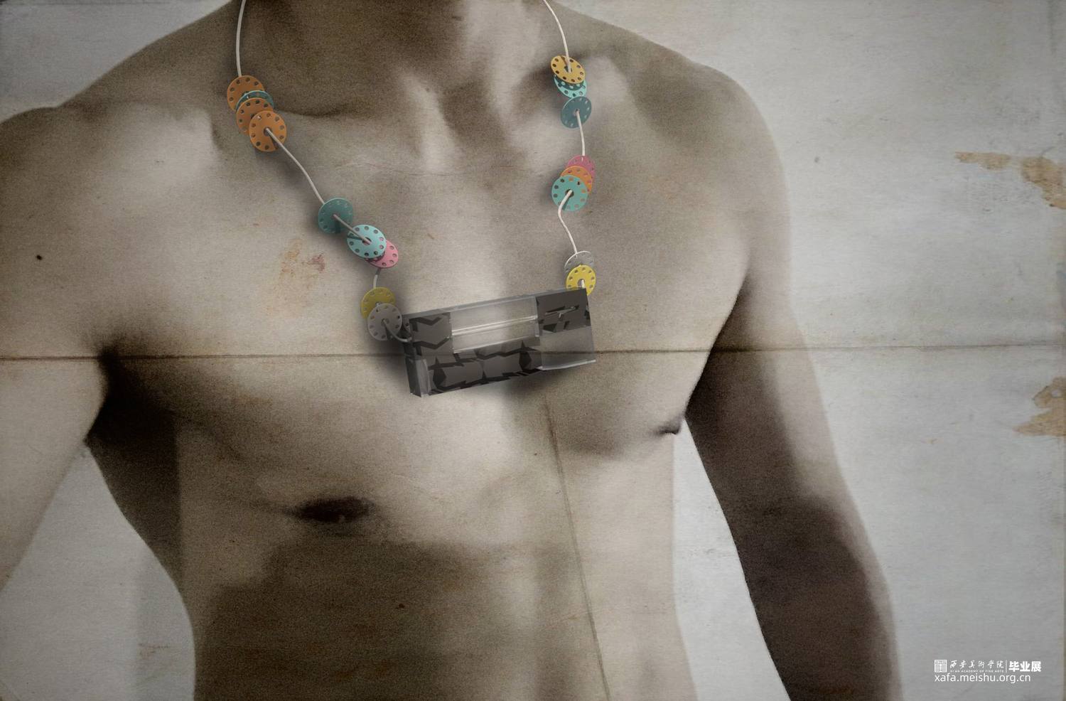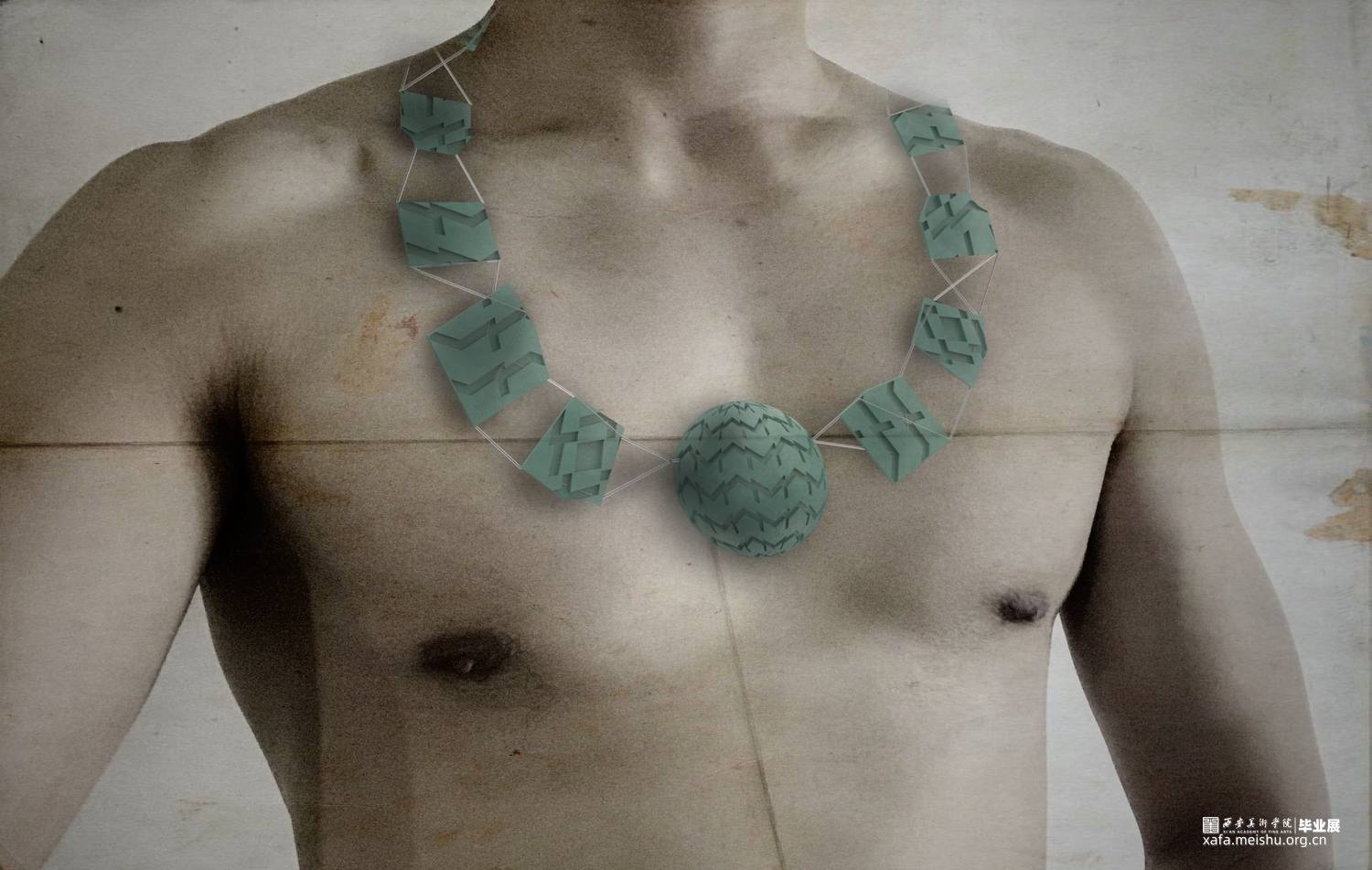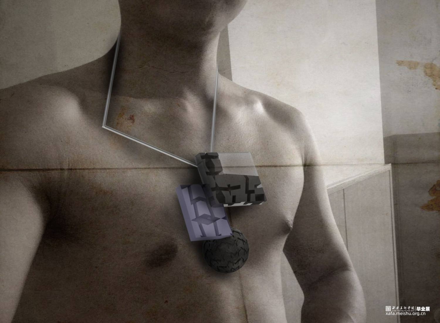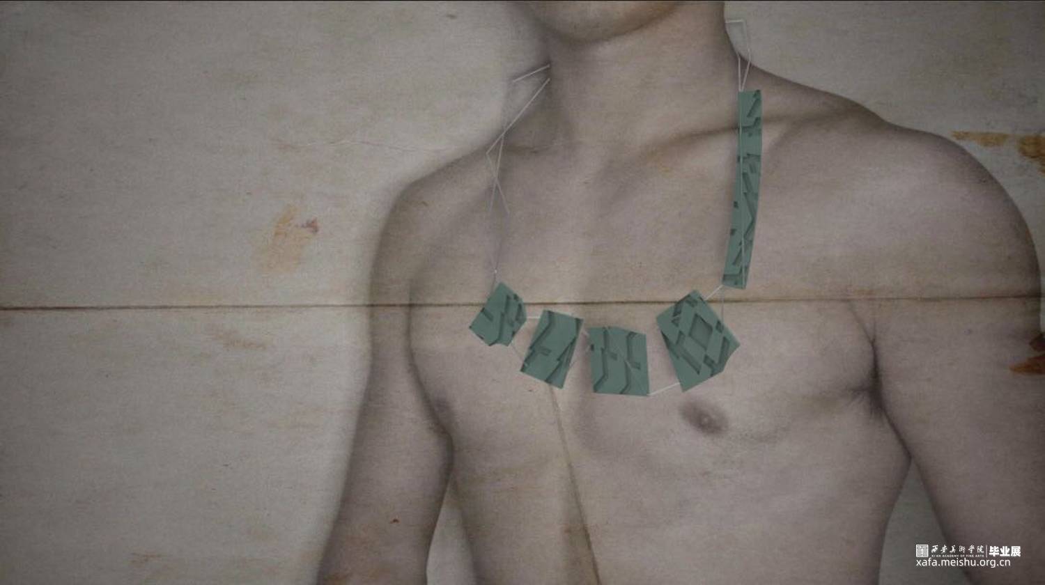 生活造就艺术,艺术无处不在,需我们从中发现,给予那些站在角落里需要关爱的人一点爱为他们做一份好的设计,就是艺术高于生活的存在,让艺术真正融入我们的生活中。作品从个人情感的角度出发,修车师傅平时贴身使用的工具,这是他们的好搭档 。关注他们的生活,通过解构重组零部件,让这些零件换一种方式与他们相伴。这些材料的可塑性不强,运用的方法是拆解重组,尽量将材料的个性发挥到最大化,使它与佩戴者能够产生情感上的共鸣尽量使其与修车师傅的形象融合,才能留下深刻的印象。首饰是一件艺术品,它被人佩戴装饰美化人们的形体,提升人们的自信。被人佩戴体现了一个人的审美水平,满足人们的心理需求。首饰设计一定是要有感情注入,市井生活宁静淳朴,让艺术融入其中,达到艺术与情感的双面结合,使它具有内涵和生命力。现在男性首饰设计比较单调,与其相关的东西也不是很多,社会多方面的影响,呈现的是多元化的设计方向。从市井生活的角度出发,让我们现实生活更具艺术化,艺术源于生活,结合感情在反馈生活高于生活。