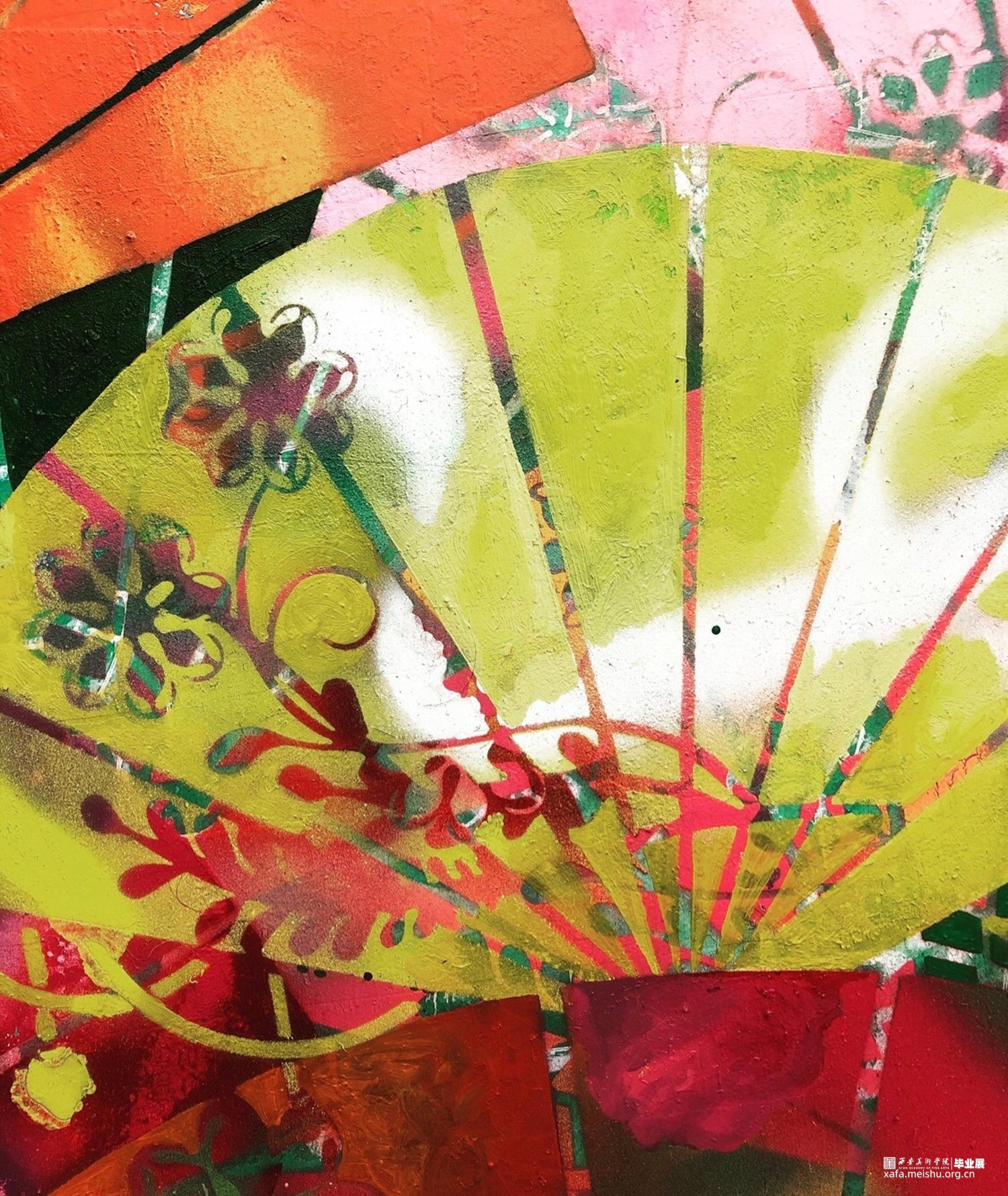 古代将扇子曾叫做腰扇,汉末时期,是王公贵族所爱之物,到晋代,腰扇又被叫做叠扇,流传于上流社会用于驱蚊避暑,到了清朝年间,轻工业与纺织业的发展,扇子文化更是得到提升,成为一种艺术品,而到了当代,这种看似阶级感的融化,发展为大妈跳广场舞的玩具,我叫它“大妈扇”。随着时间看流逝而变化的过程让扇子发生改变,扇子两端的木质头柄叫做“排口”,我和父亲、家人的距离就好像这排口打开的过程,未绽放前的鞠簇,距离恨不得挨在一起,被教训的无奈与亢奋让这个距离并没有很快拉远,成长的痕迹让排口逐渐展开,也让扇子有了应有的美感,但也