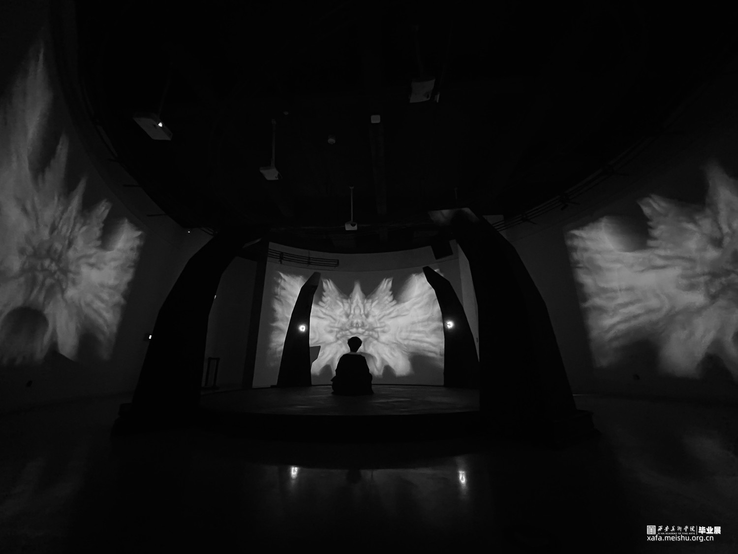 作品构造了一种黑方碑式的异色景观,它不断映射着来自精神世界的回声,将真实世界的生命韵律融入声音数据的每个角落。