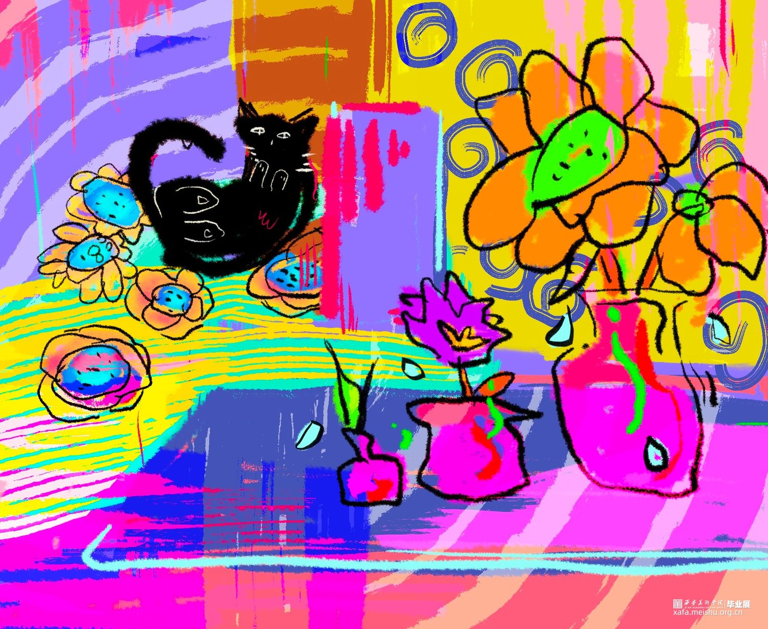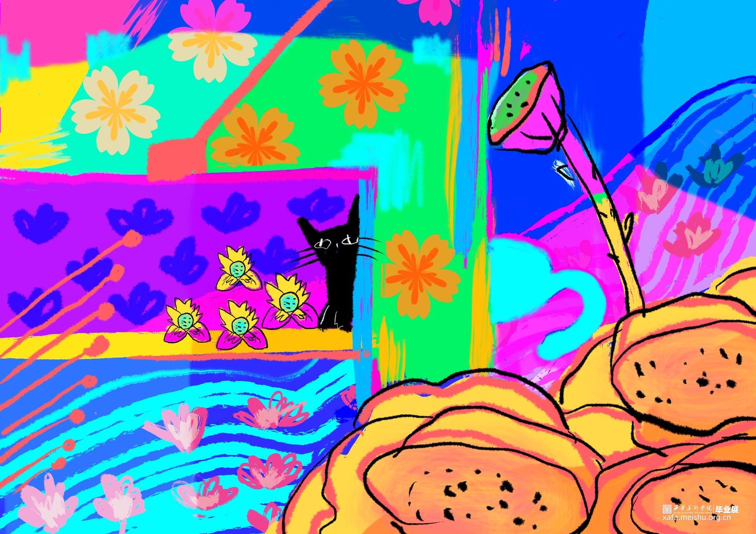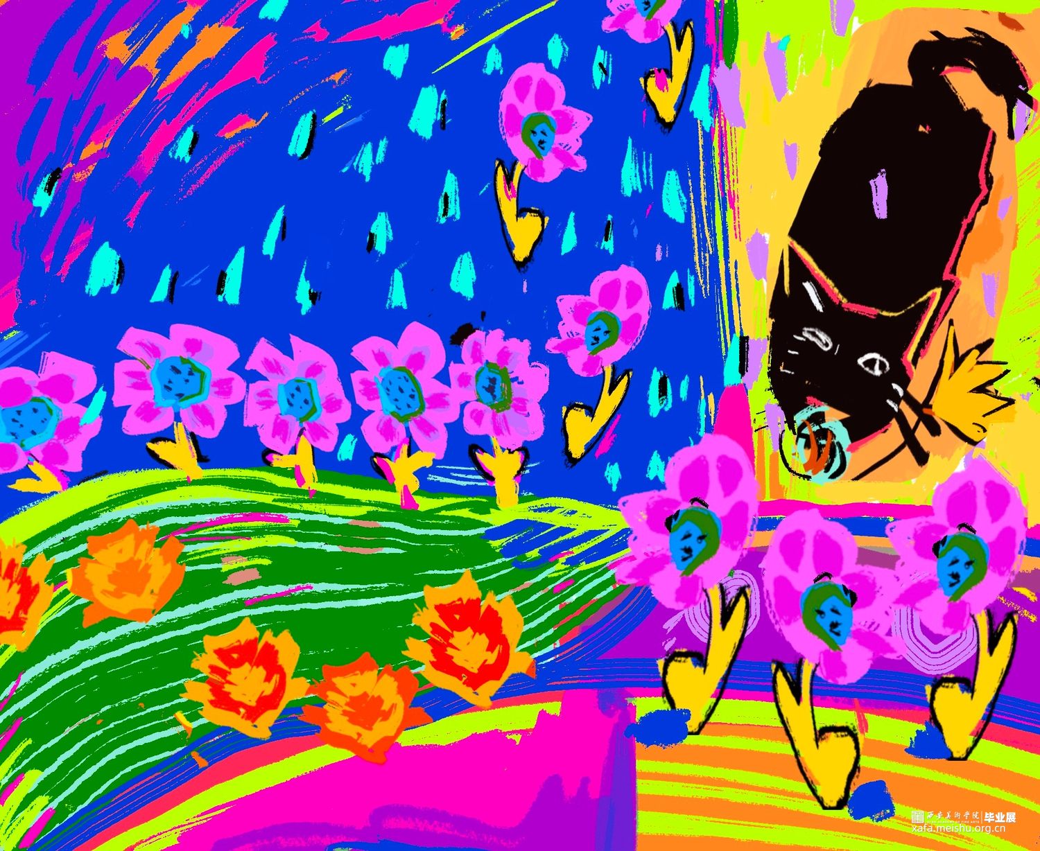 狄丝梦露是一只黑猫,我赋予它人的行为习惯以及情感要素。通过插画表达动物与自然之间相互依存的情感。于是便记录下脑海中的猫咪花园,与猫咪一同感受喜怒哀乐。