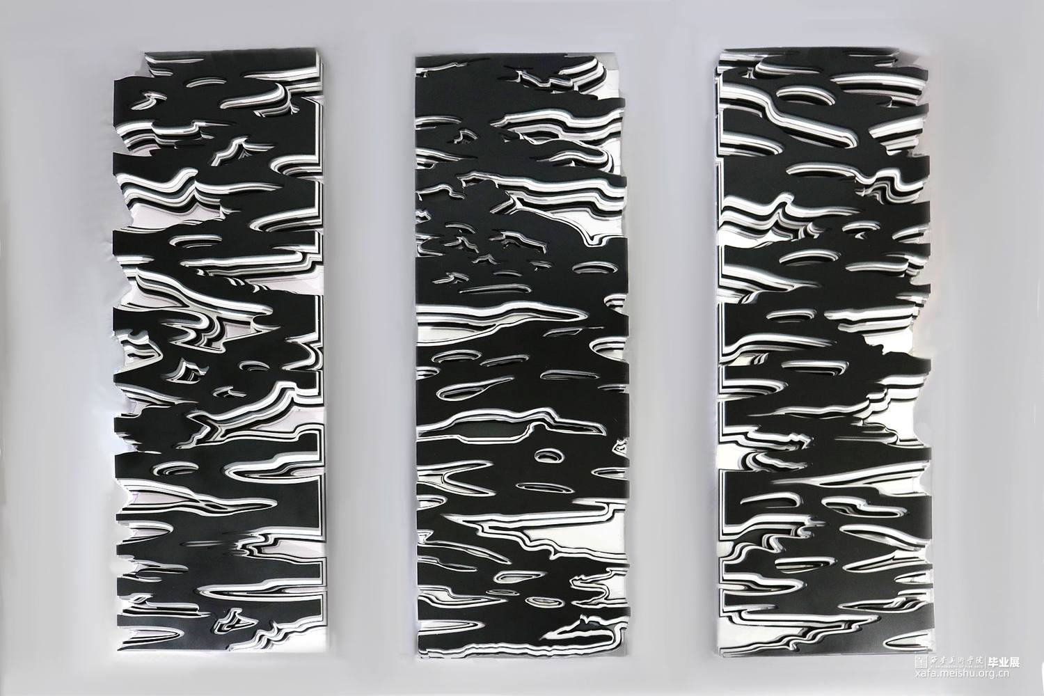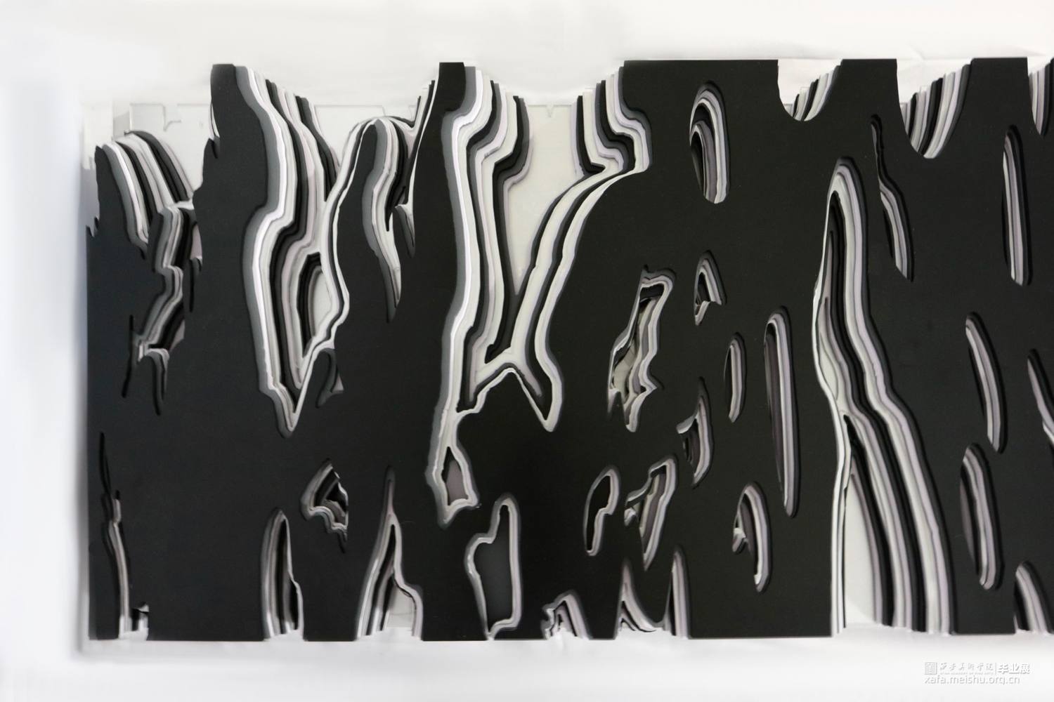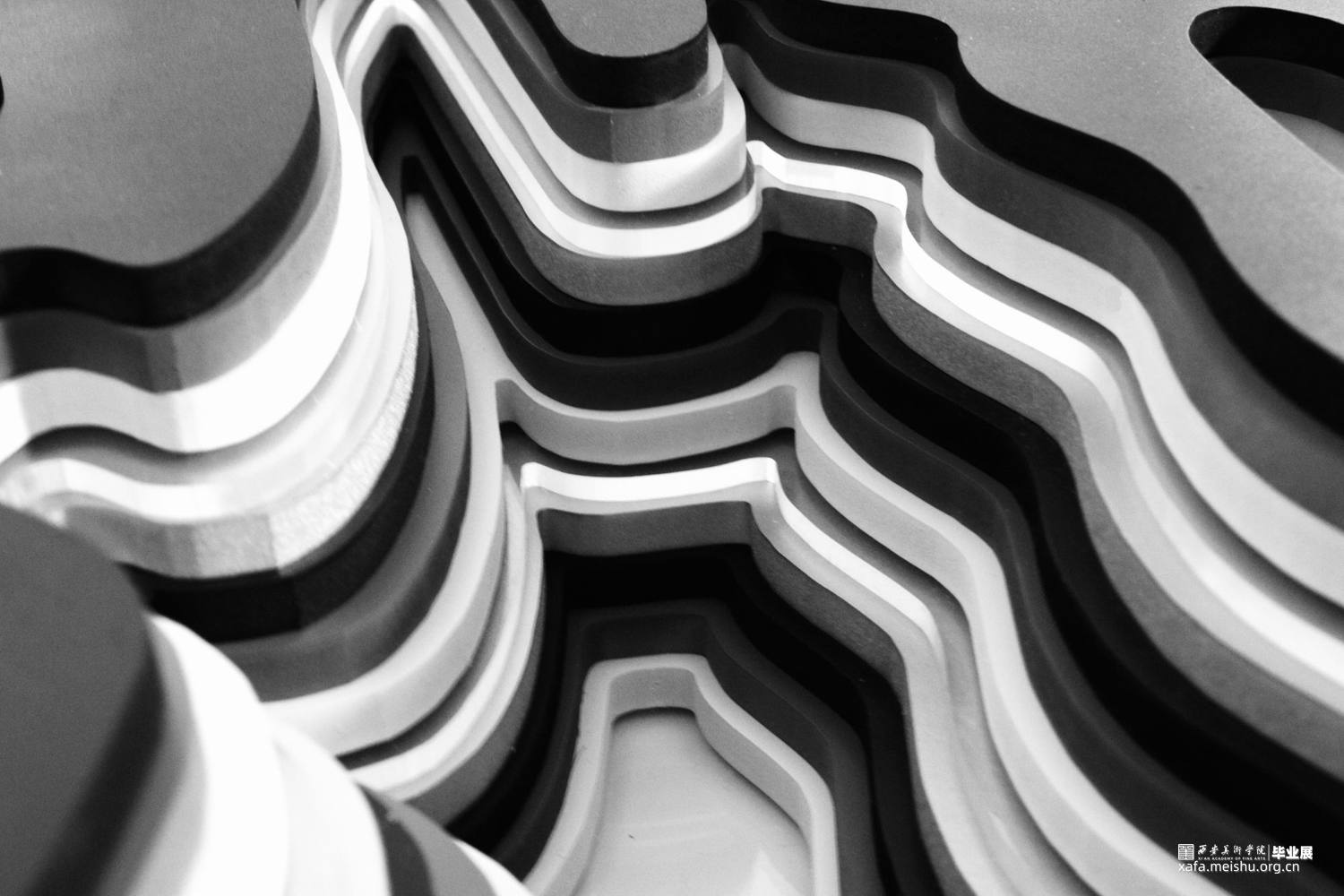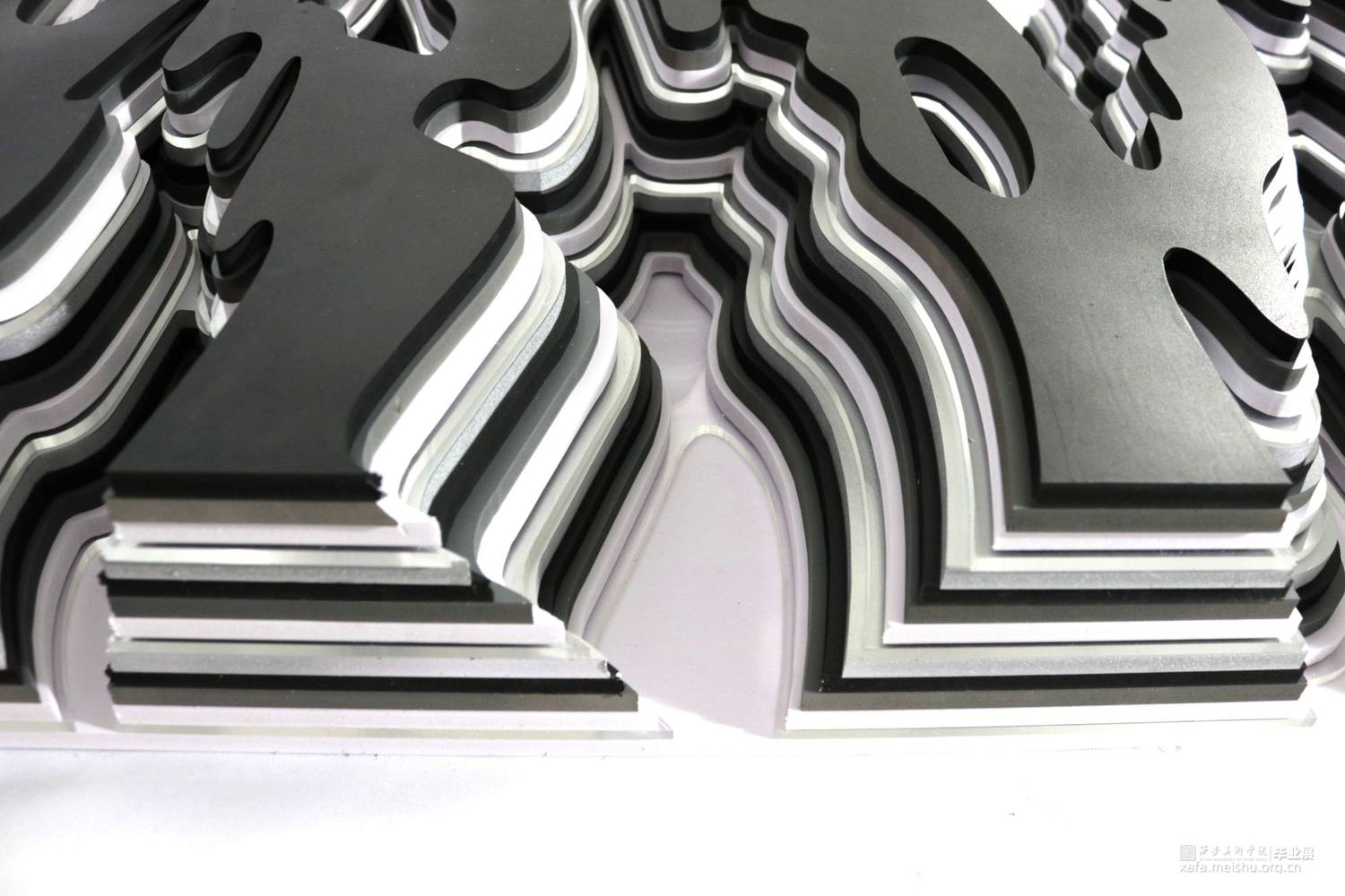 我首先以海洋保护为初心,以一瞬间消逝海波纹的局部图为灵感,将其变得抽象和概念化,选用塑料化学制的材料,比如pvc和亚克力等,每一层都做出镂空的形态,创作出有立体层次的综合雕塑,设计上结合产生破坏感的抽象形态,以及昏暗的灰色调带来的情感影响,表现出我心中想象的未来污染下的海洋局部,探究人类与海洋之间不稳定的未来。