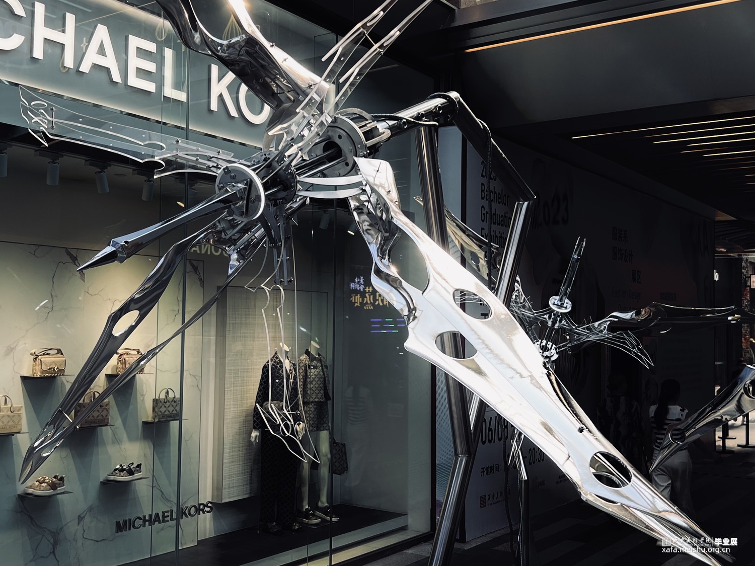 作品通过开合式机械和异形植物体阐明了人造结构与自然姿态之间的相似之处,利用冰冷的钢铁与单一的程序提出当下自然生态空间局限的问题。