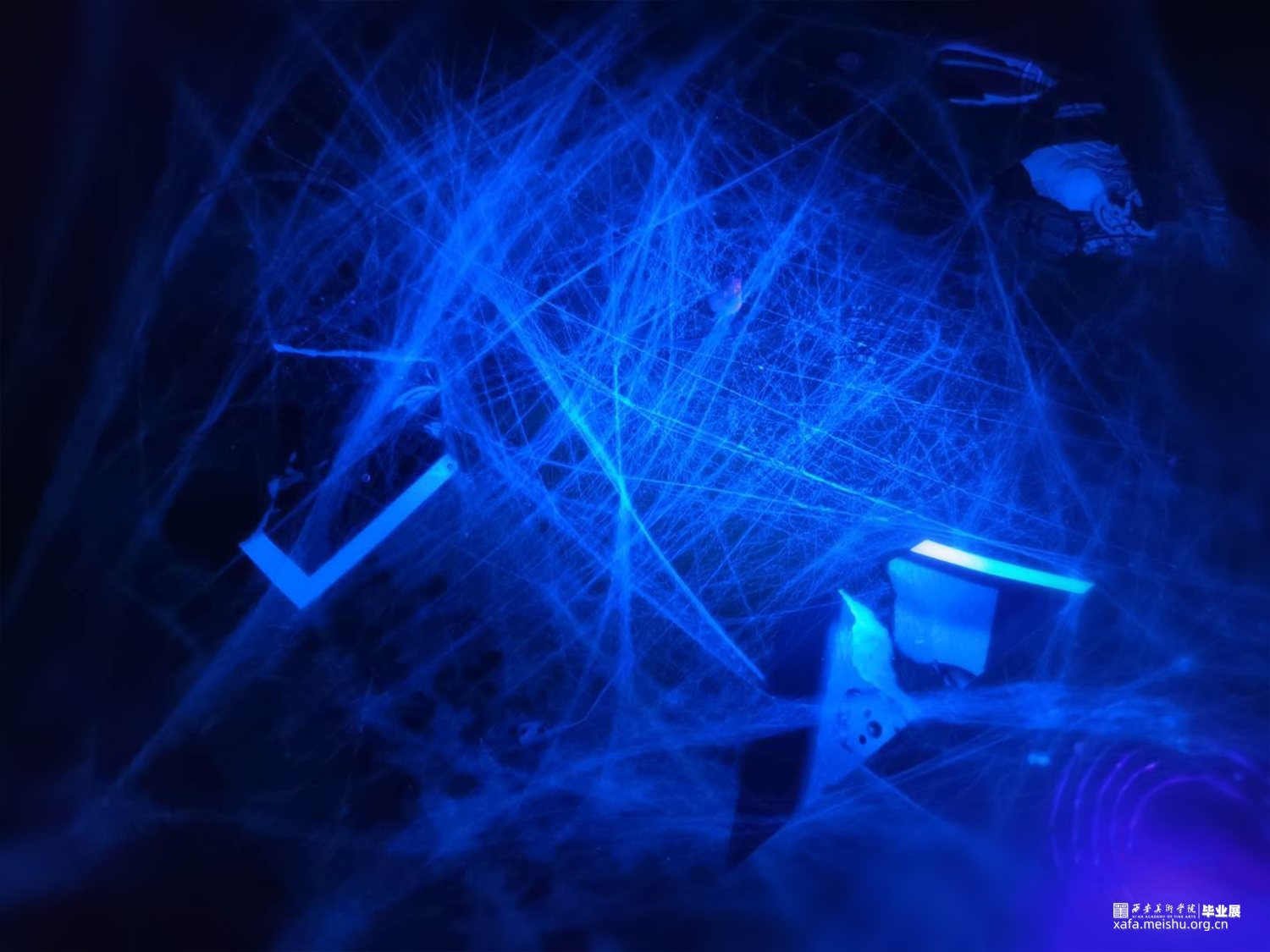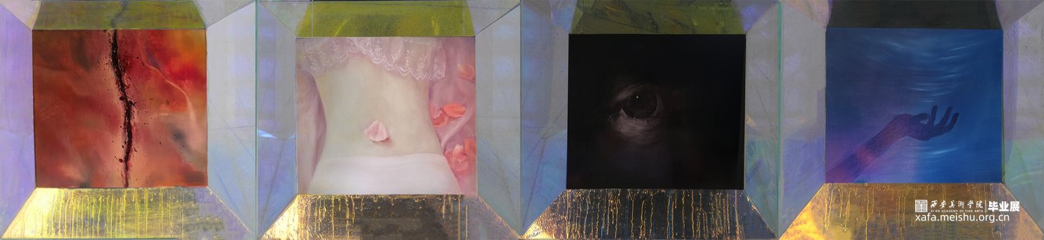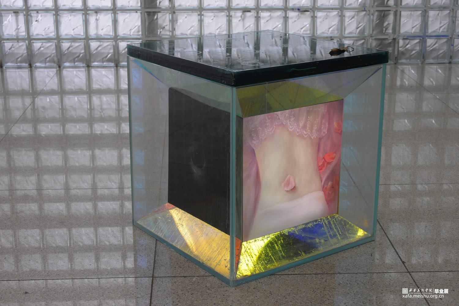 作品《下沉》外观立方体模拟四维架构,其实也是表达自我情感空间的模拟搭建与延续,以此打破我一贯的固有三维思考的局限性, 让其自由的穿梭于不同时空,进一步表达了我对“时间”的思考——流逝的从来都不是时间,流逝的是我们,在流动的时间轴上寻找灵感共享,再反哺当下。寻找现实与虚无的零界点,孤独永恒但希望犹在。