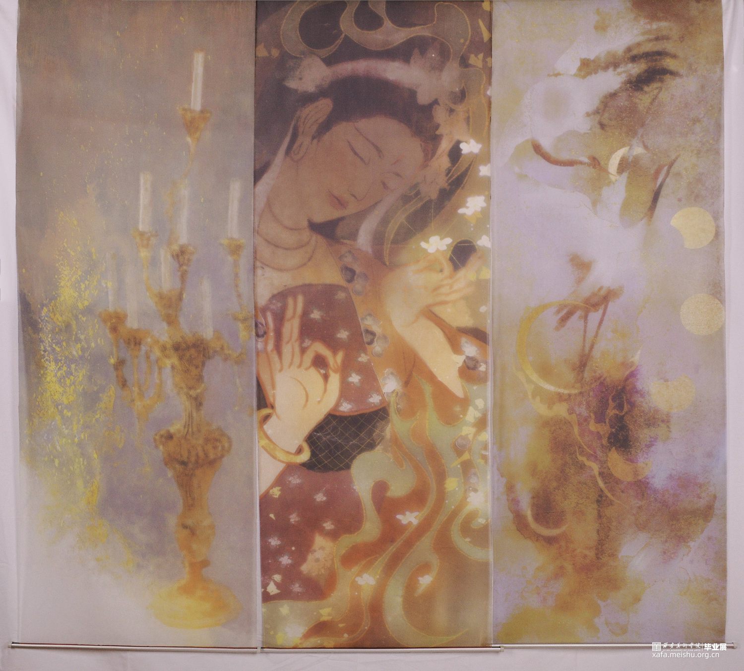 灵感自于对古典文化的热爱与钟情。读诗时难免想到这些写出传唱千古名句的钟灵毓秀的文人墨客也曾经经历了爱恨情仇的一生,如今都早已作古。人类在根本上是时间性的存在,是在无限时间洪流中被不断冲刷的渺小个体。“大都好物不坚牢,彩云易散琉璃脆”,生命与青春是在每时每刻都不断流逝的。俗语说“读万卷书不如行千里路”,我对生命意义的解读也包括一路走来的无尽思索 : 敦煌遗窟的大梦;秦岭山中的围炉夜话;乌鲁木齐的千年干尸,新冠疫情下的反思.....回首时难免生出许多感慨。生命行至于此,虽为花期仍怕零落。每个人对衰老与死亡都怀有惧怕,而此次作品的主题便萦绕此展开,不为表达恐惧而以美好的形态描绘生命的遗憾冻结时光。