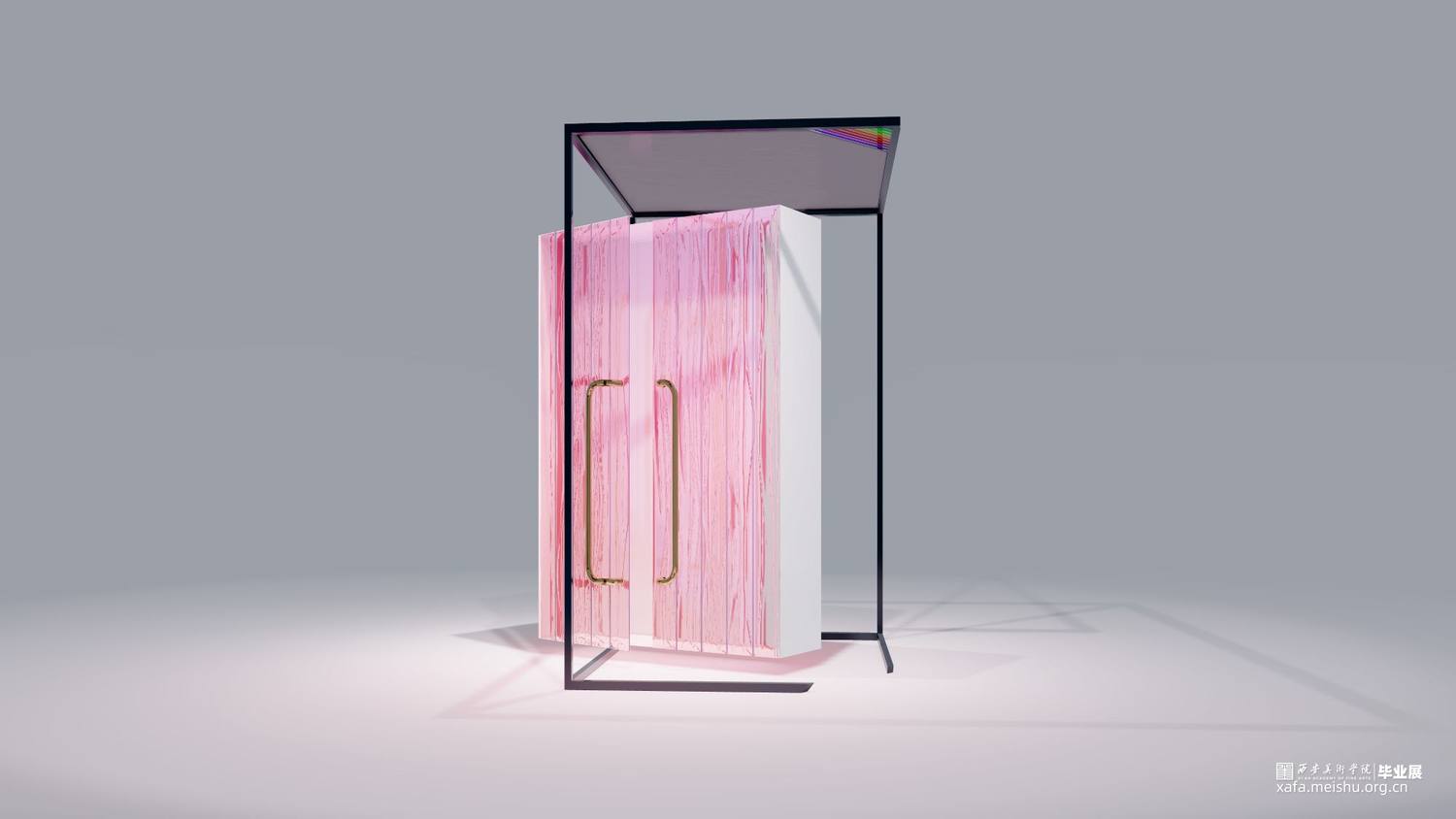 《Got it in you》是一系列为女性群体与特殊群体发声的,综合材料制作的胸针设计作品。一组共五个不同的样式,每一件作品中都存在粉色的玻璃材质与点缀在作品角落的彩虹色元素。我试图用粉色玻璃与彩虹隐喻美丽且脆弱又有着斑斓色彩的内心。作品主体由纤细的框架与保留写实特征的柜门组合而成。解构化的“衣柜”中,运用了大量的冷抽象手法设计造型,喻指特殊群体普遍的“孤独”与”静默“属性。作品中有些柜门敞开,露出有着斑斓色彩的光影,而有一些柜门只是开放一个缝隙,透露出如瓷般质感的一片洁白。还有的柜门依然紧闭,通体呈现出石榴一样清澈的水红色。象征人们不同的心理与人们对于“走出衣柜”的不同选择与不同态度。
