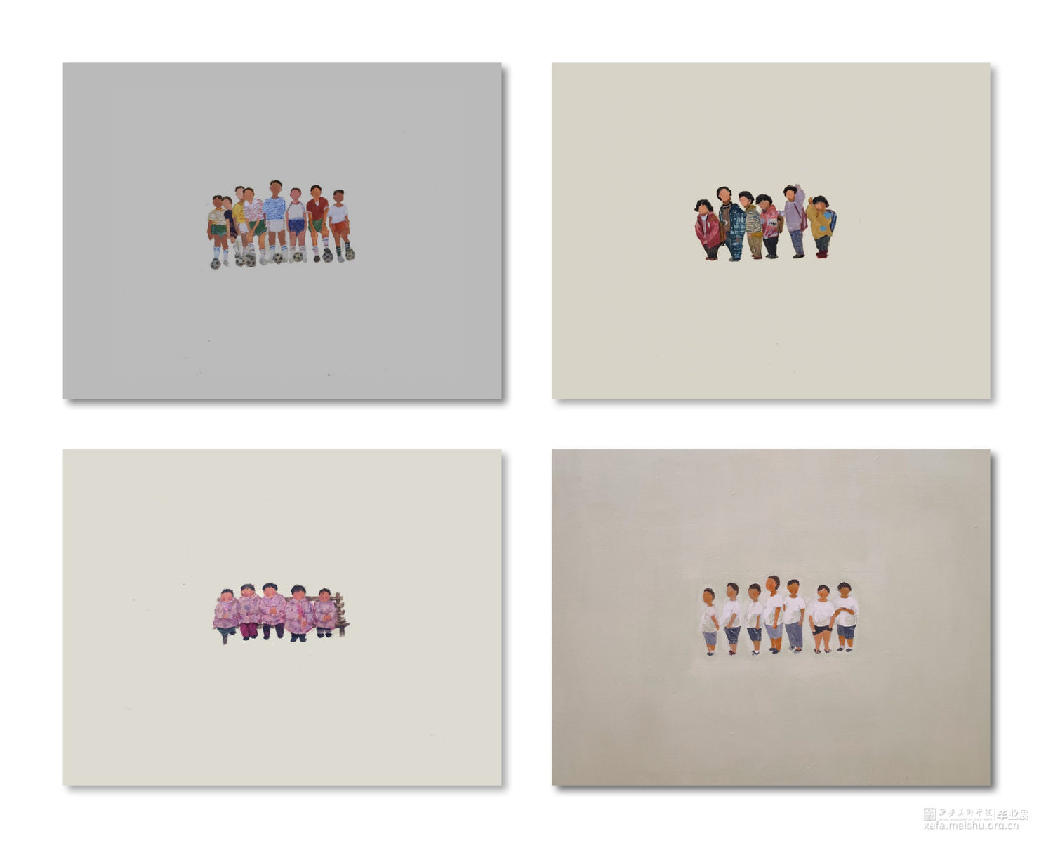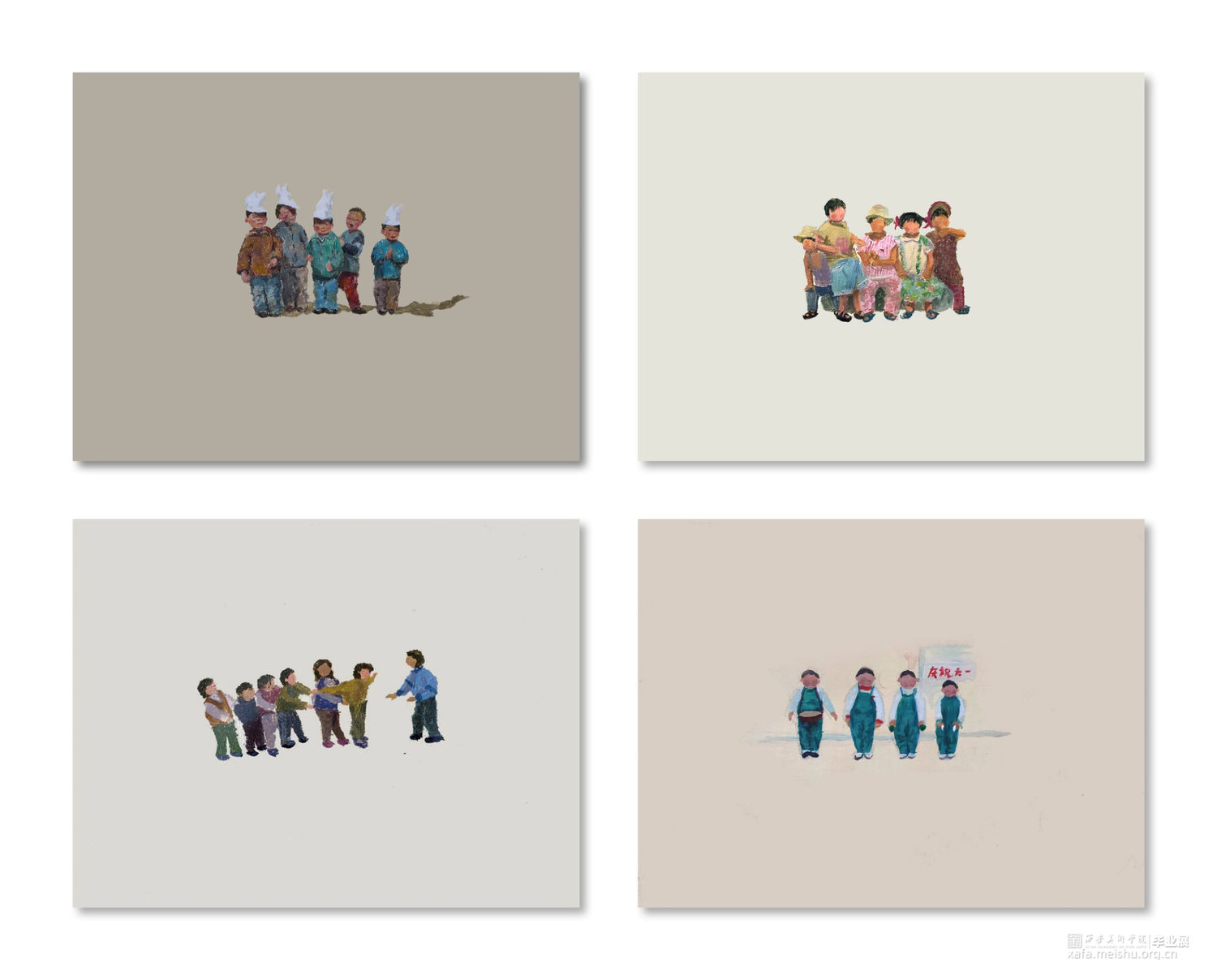 每一个人都有自己的童年,懵懂时代都有很多珍贵的小故事,或者让人啼笑皆非的,或者让人深思不已的。每一个人的童年都有所不同,每一个人的童年的故事都有所不同,而分享这些不同的小故事,不但能够从中唤回快乐,而且还能够受到很多的启发。童年虽已逝去,可是当我们看到一张张自己的小清新照的时候,还是忍不住笑了。尘封多年的老照片再次展示的时候,我们的内心有了这样一种共鸣——原来自己的童年是如此的天真美好,原来自己曾经也那么可爱。在这组绘画中,为了展现人物的趣味性,凸显人物的“拙”,我在人物素材的挑选丶形象丶衣着以及动作和人物数量丶环境上做了反复调整,最后到用色和笔触的结合,来实现我想要的最终的绘画结果。童趣,用绘画来表现这童年时光的趣味性。