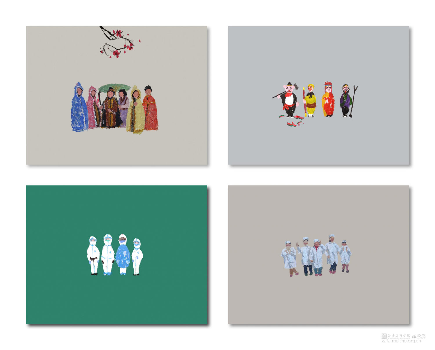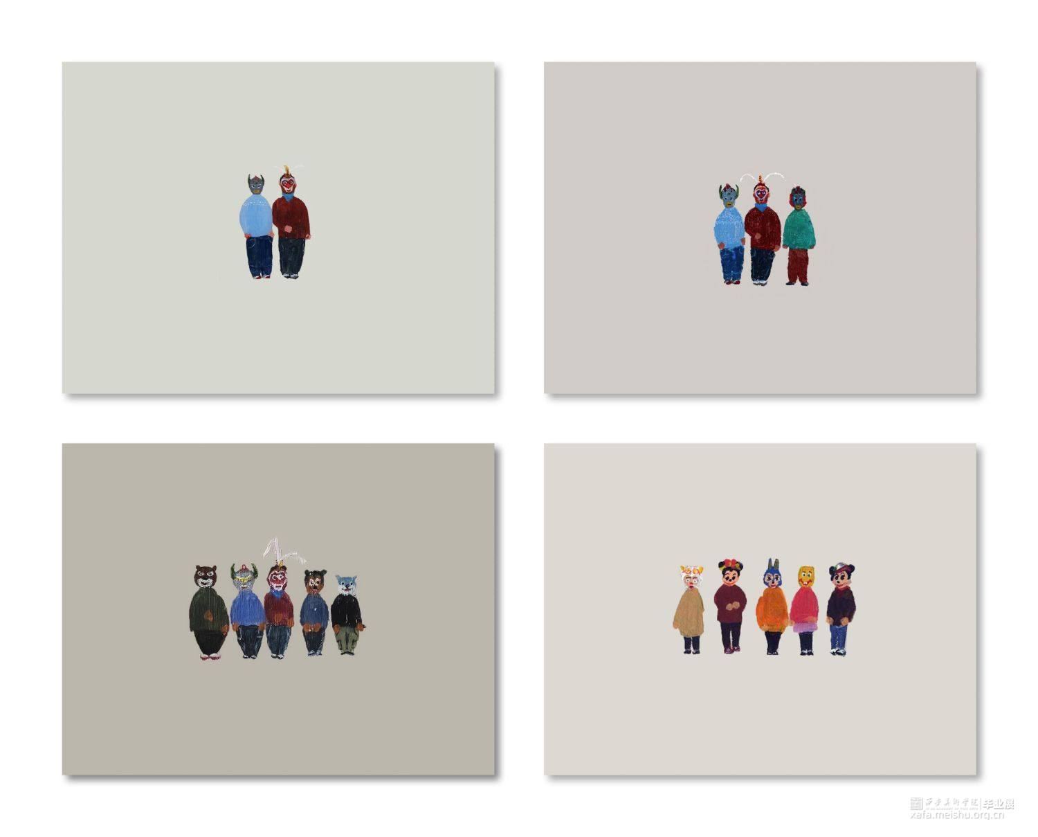 每一个人都有自己的童年,懵懂时代都有很多珍贵的小故事,或者让人啼笑皆非的,或者让人深思不已的。每一个人的童年都有所不同,每一个人的童年的故事都有所不同,而分享这些不同的小故事,不但能够从中唤回快乐,而且还能够受到很多的启发。童年虽已逝去,可是当我们看到一张张自己的小清新照的时候,还是忍不住笑了。尘封多年的老照片再次展示的时候,我们的内心有了这样一种共鸣——原来自己的童年是如此的天真美好,原来自己曾经也那么可爱。在这组绘画中,为了展现人物的趣味性,凸显人物的“拙”,我在人物素材的挑选丶形象丶衣着以及动作和人