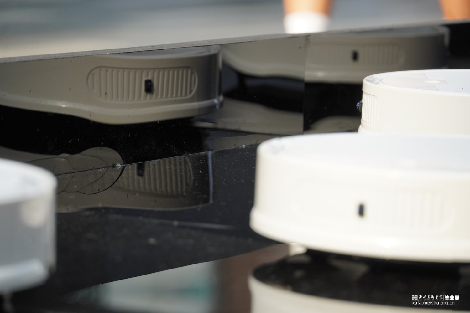 具有规律性避障功能的扫地机器人产生不可控性,随机的不可控结果既是对现成品的语言转化,也是对当下“社交回避”现象的隐喻。