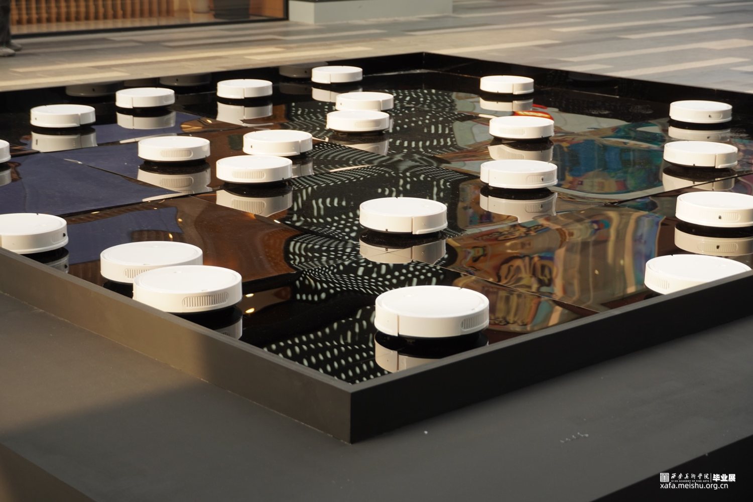 作品以“弱人工智能”扫地机器人的避障功能来映射群体关系,通过对红外避障功能的编译,使原本