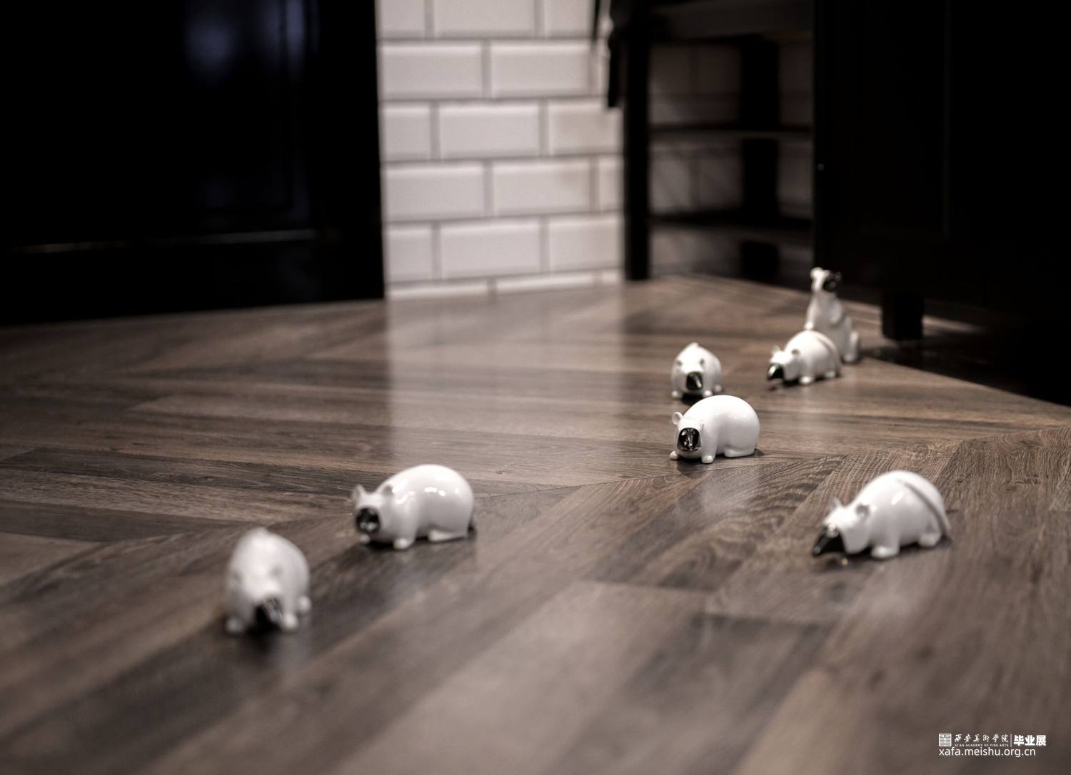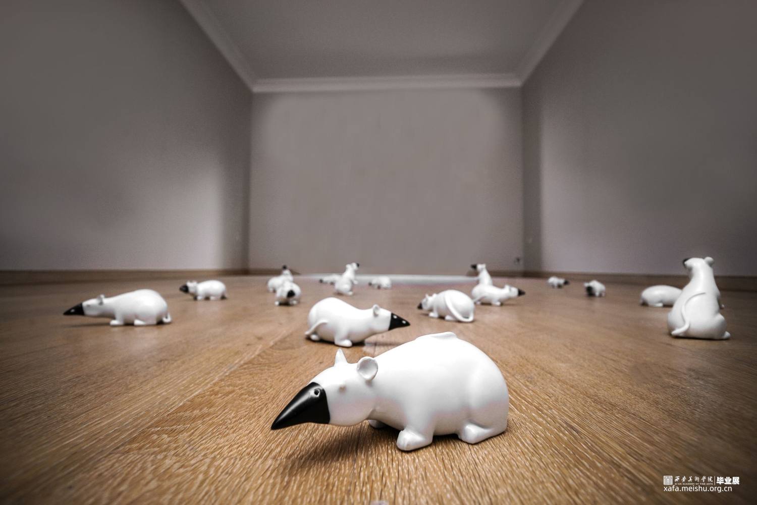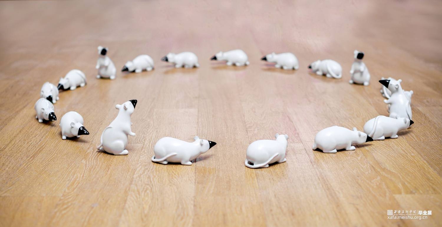 《○》的观念和展示的源头来源于我一开始的一个精灵在树林里到处漂浮的想法,后来因为这次疫情的发生,我就把元素融入了进来,表达的观念也更有深意。关于动物的形象考虑了很久,选用老鼠是因为它本身和鼠疫的关联,恰逢今年也是鼠年,和人类生活联系也很密切,具有代表性,虽然我的观念一部分和这次的疫情相关,但我并不想那么直白的表现表现出来。后面也有表现一些老鼠在人类的生活场所四处游荡的场景,附加表现人类和老鼠在生活中密切相关。
