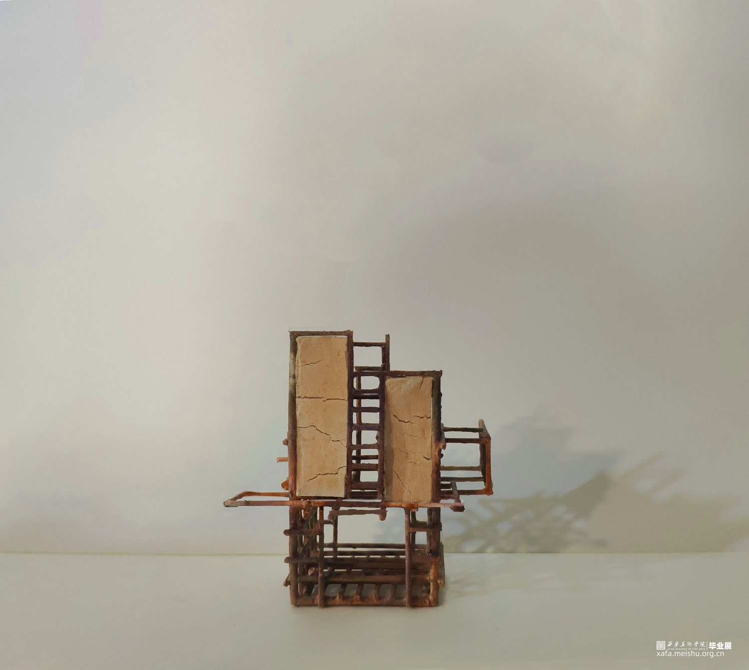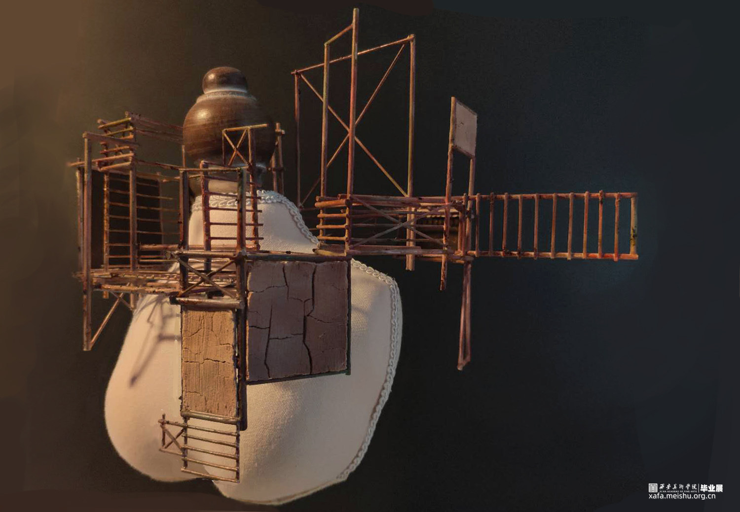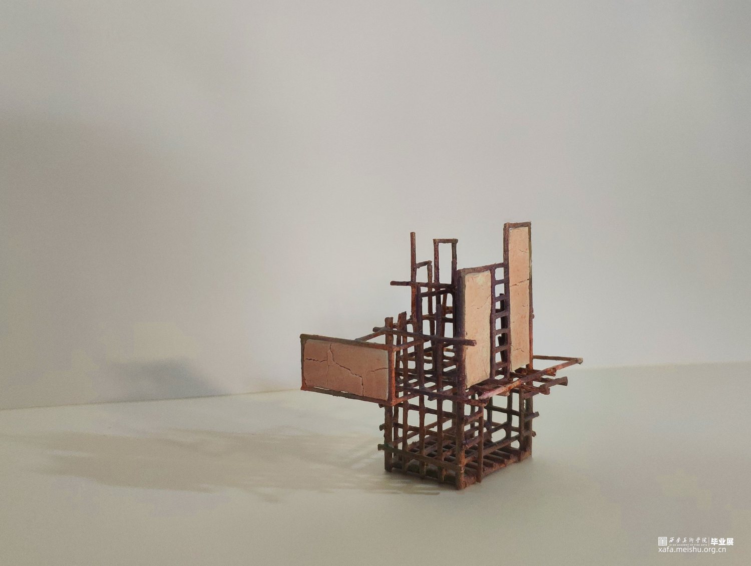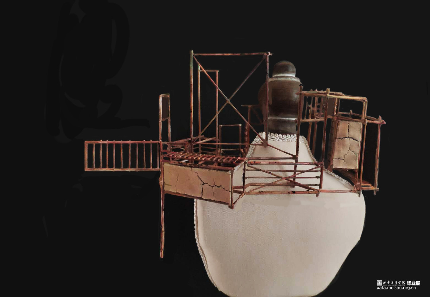 我的作品将建筑作为身体视觉秩序的元素,把观察到的建筑的密集和频繁,还有很多建筑工地使用的锈迹斑斑的脚手架和被拆除的老建筑的残垣断瓦之中冉冉升起了洁白的新墙,进行重新的设计和组合,完成由身体承纳的新建筑丛林美学。