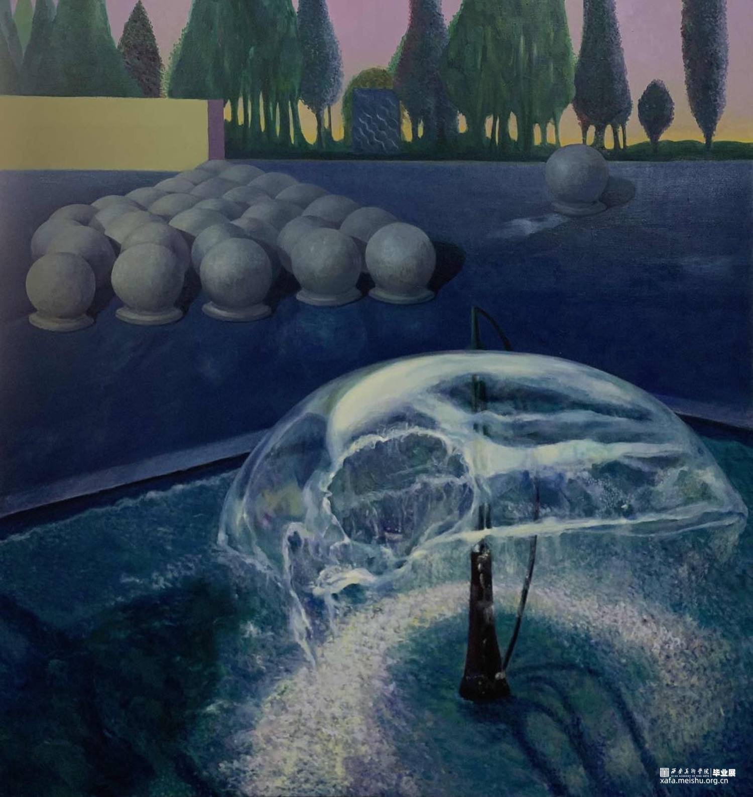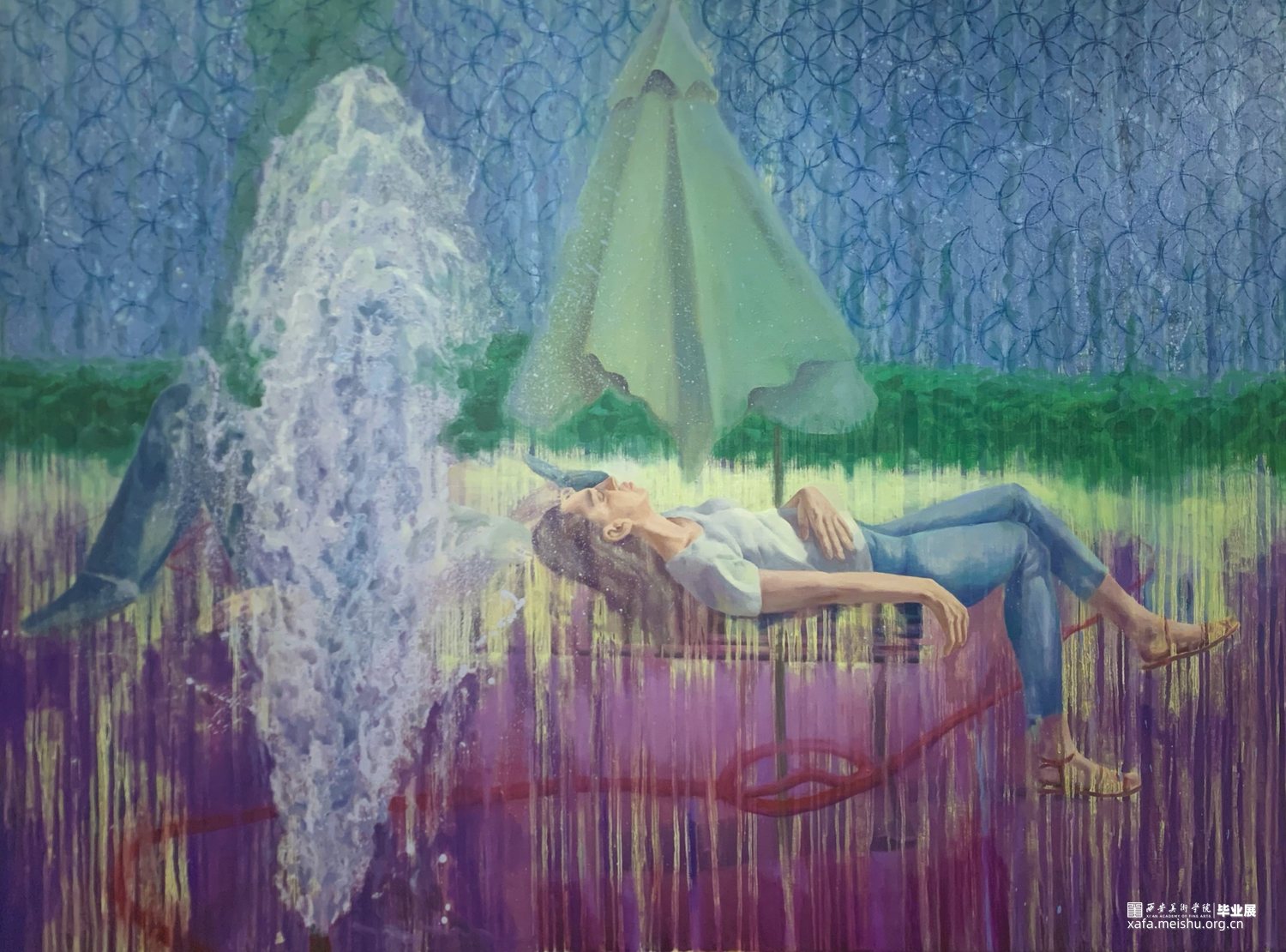作品名称:《梦——水光》作品材质:布面油画 作品尺寸:180cm×200cm 创作年代:2020年 指导老师:何军教授