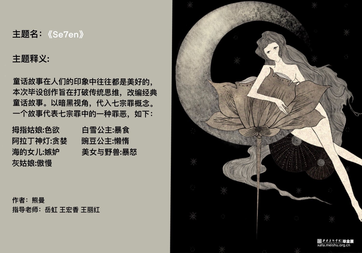 童话故事在人们的印象中往往都是美好的,本次毕业创作旨在打破传统思维,改编经典童话故事。以暗黑视角,代入七宗罪概念。一个故事代表七宗罪中的一种罪恶。