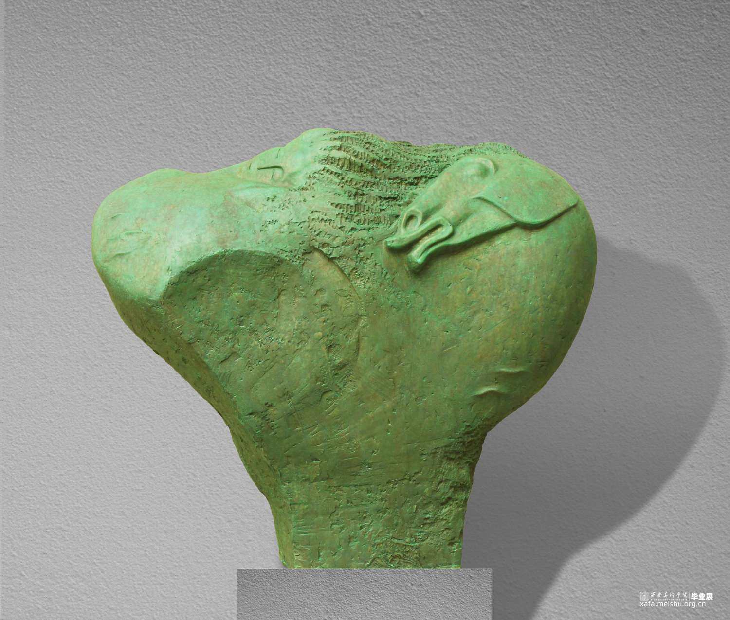 该系列作品用写意的表现手法和循石造型的处理方式,充分借鉴霍去病墓石刻的雕刻技法,浮雕与线刻相结合,追求浑然一体的造型趣味。以黄土为喻,马的形象象征着自然,人的形象象征着人类整体,土地孕育了人类,母亲孕育了子女,从中表达了对土地的无限热爱以及对母亲的感怀。