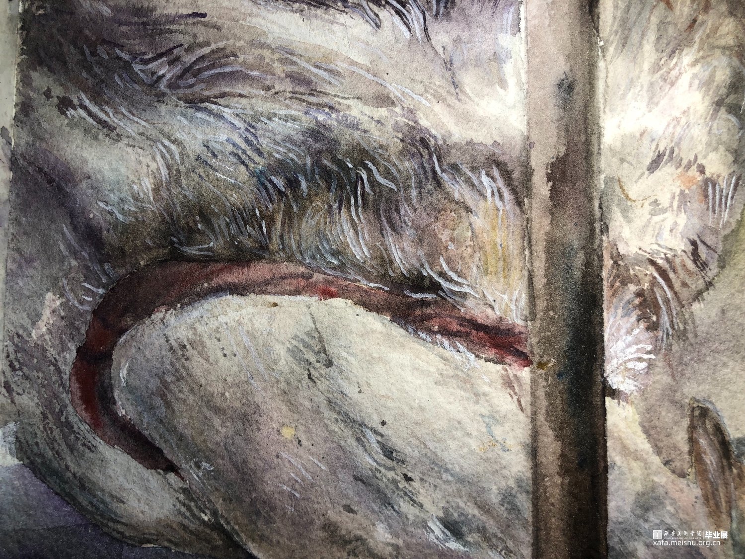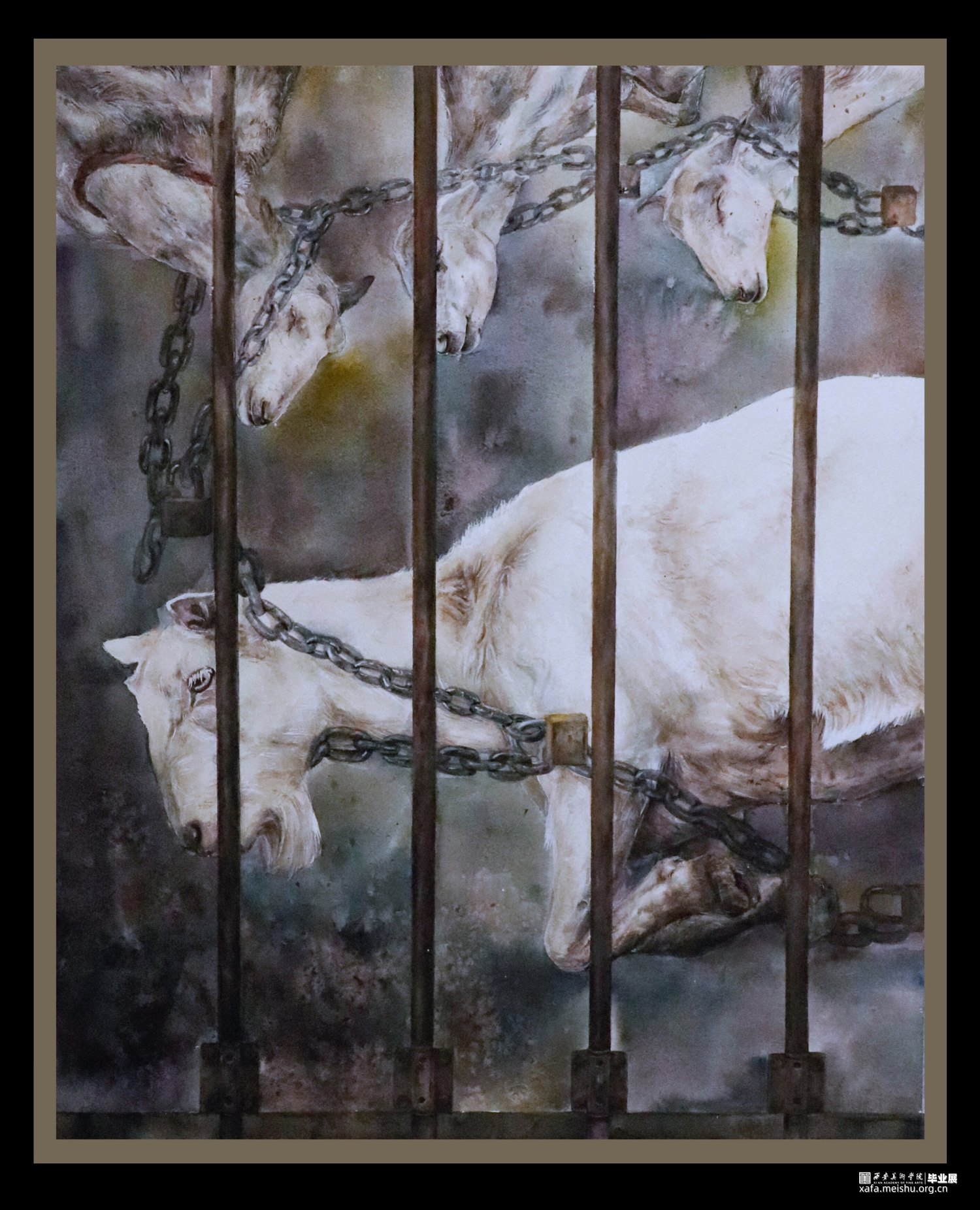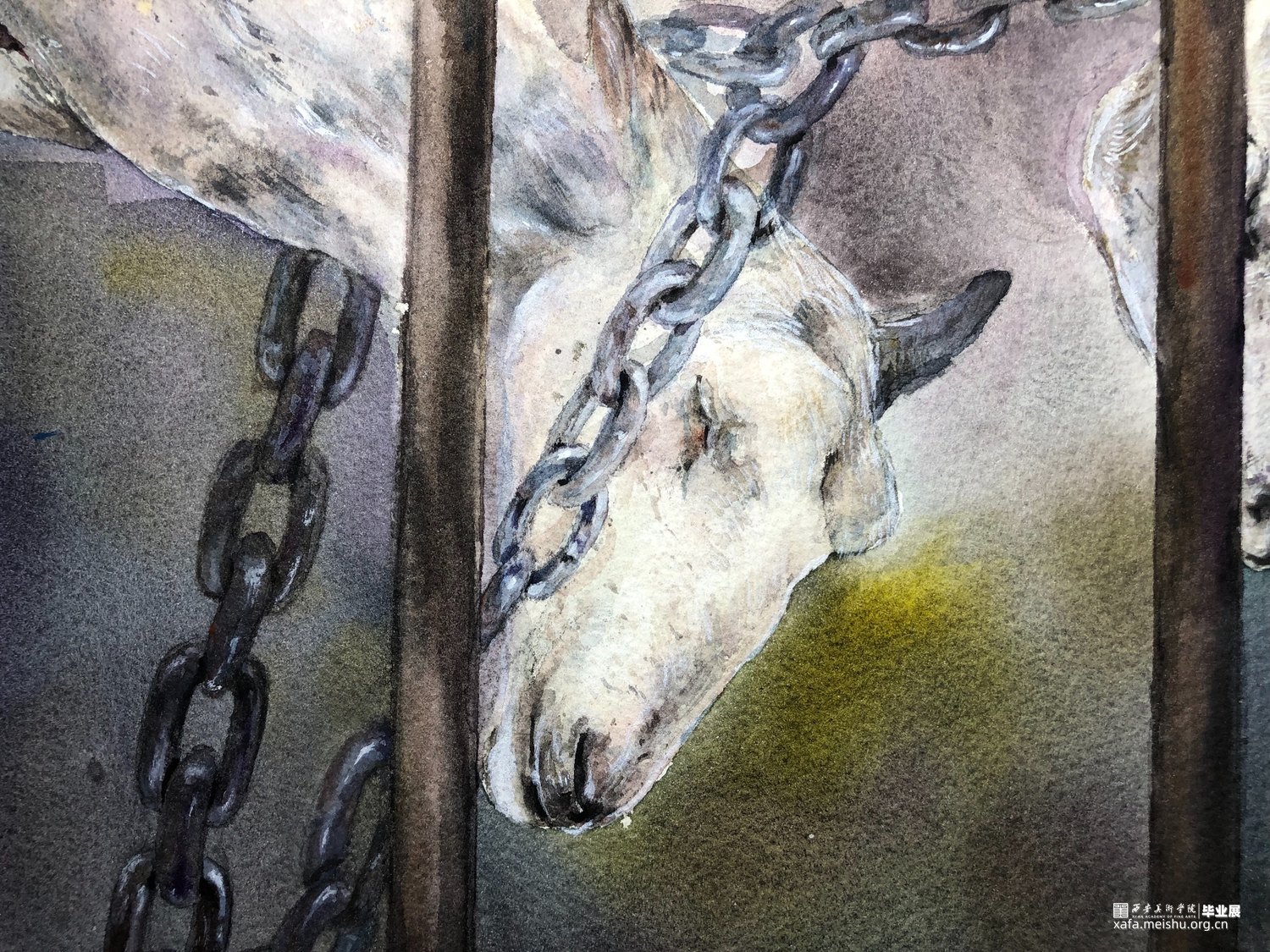 由于社会的变迁,如今的社会充满了物欲,对于羊来说,不仅是肉体被锁给禁锢了,更深刻的感受是羊的灵魂,羊的精神,那种象征着美好的精神被铁链给捆绑住了,这也是对我来说比较重要的一点,因为由羊及人,我也有被社会被家庭被某些关系所捆绑的感觉,而且是随着社会的发展日益加剧的态势,这种心态越来越多的出现在当代年轻人的内心深处,此次画本系列作品,也是想表现当代年轻人的内心世界,尤其是其中的被铁链捆绑住的灵魂,借以羊为代指。