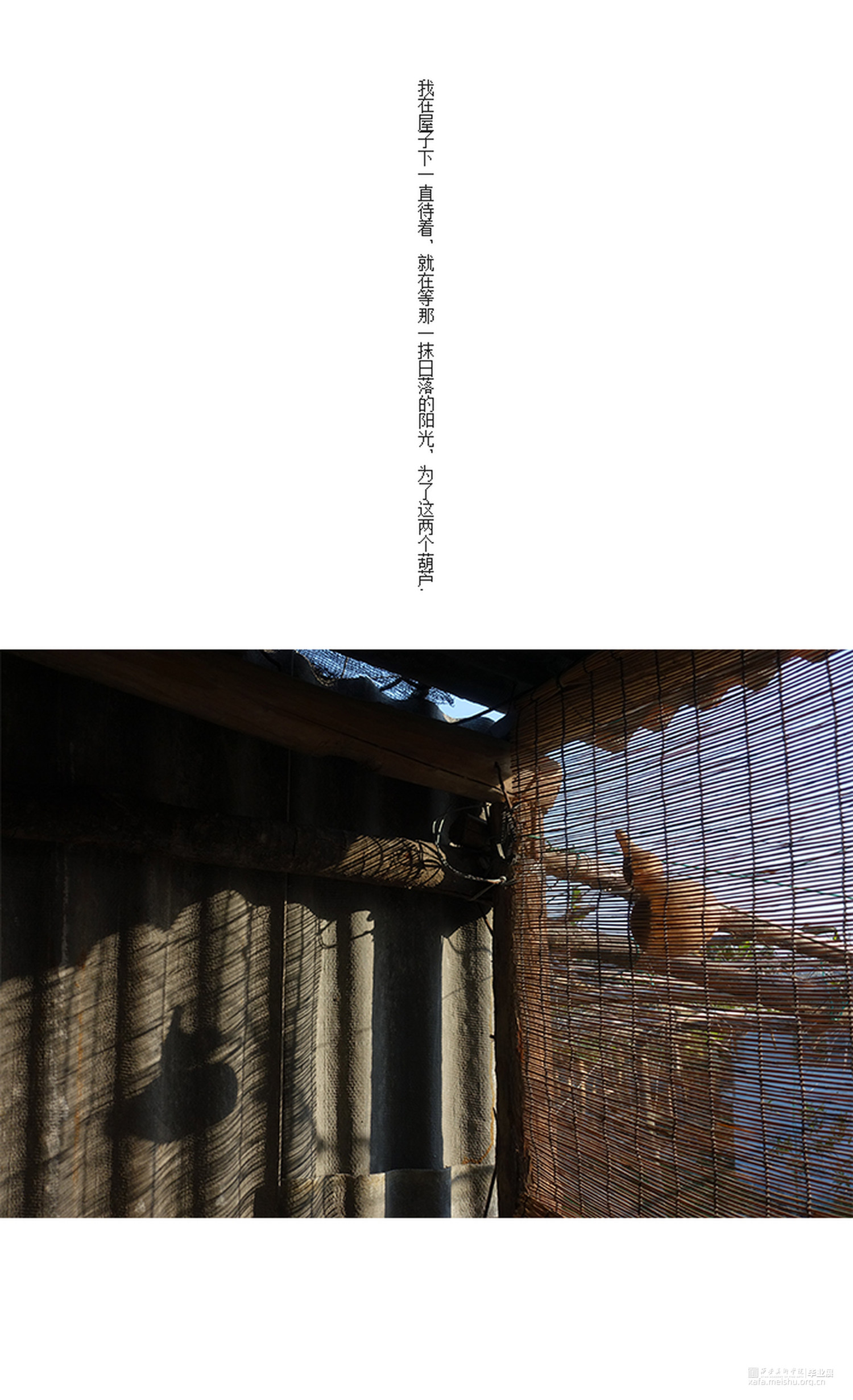 如今,随着城市化的发展,很多老房子都被改建或拆迁,久而久之,能够保存下来的旧房子也越来越少,很多都变成了现代化的高楼大厦。这让很多新一代的人对于乡村的印象也少之又少,而通过纪实摄影的方式去探索老房子,会更真实的记录这些老房子和里面的生活状态,会发现很多在城市所见不到的惊喜。“斯是陋室,为吾德馨”,只有真正走进“陋室”,才能真正体会到住在其中的人为何能够每天都生活的很惬意很舒适。对于我小时候生活环境的回忆,由于近几年我都是在外地读书,每次回家再看看这座小城的时候总会感觉不一样,而我所能做的,就是用相机记录下
