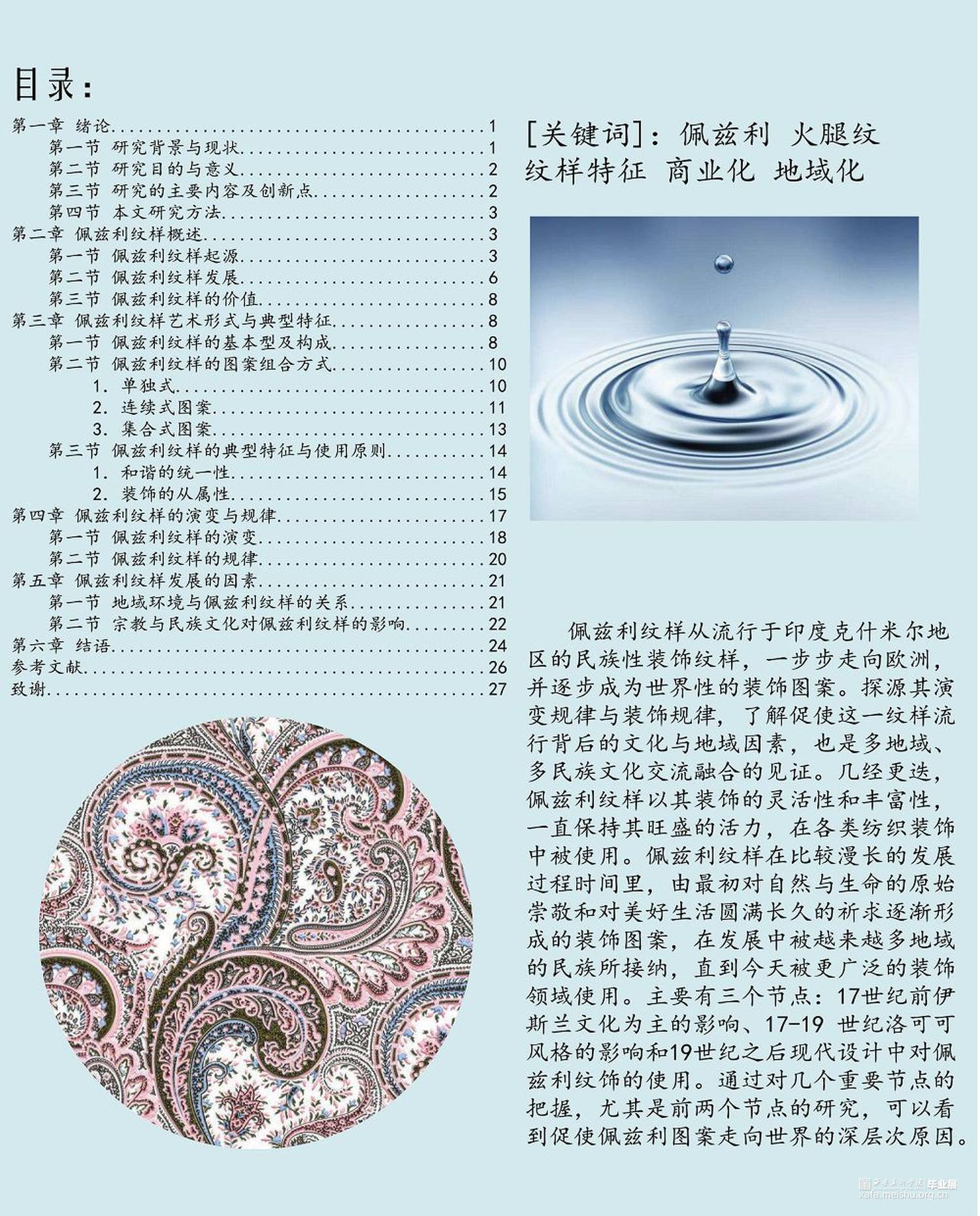 佩兹利纹样从流行于印度克什米尔地区的民族性装饰纹样,一步步走向欧洲,并逐步成为世界性的装饰图案。探源其演变规律与装饰规律,了解促使这一纹样流行背后的文化与地域因素,也是多地域、多民族文化交流融合的见证。几经更迭,佩兹利纹样以其装饰的灵活性和丰富性,一直保持其旺盛的活力,在各类纺织装饰中被使用。佩兹利纹样在比较漫长的发展过程时间里,由最初对自然与生命的原始崇敬和对美好生活圆满长久的祈求逐渐形成的装饰图案,在发展中被越来越多地域的民族所接纳,直到今天被更广泛的装饰领域使用。主要有三个节点:17 世纪前伊斯兰文化为主的影响、17-19 世纪洛可可风格的影响和 19 世纪之后现代设计中对佩兹利纹饰的使用。通过对几个重要节点的把握,尤其是前两个节点的研究,可以看到促使佩兹利图案走向世界的深层次原因。