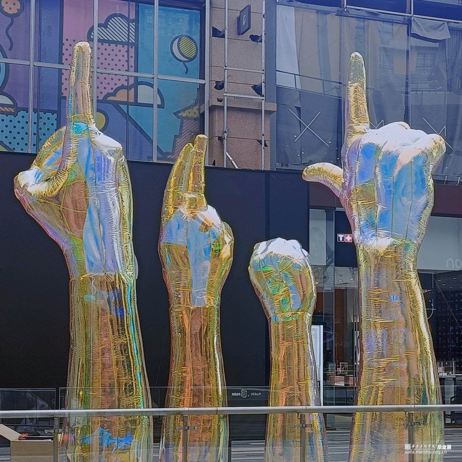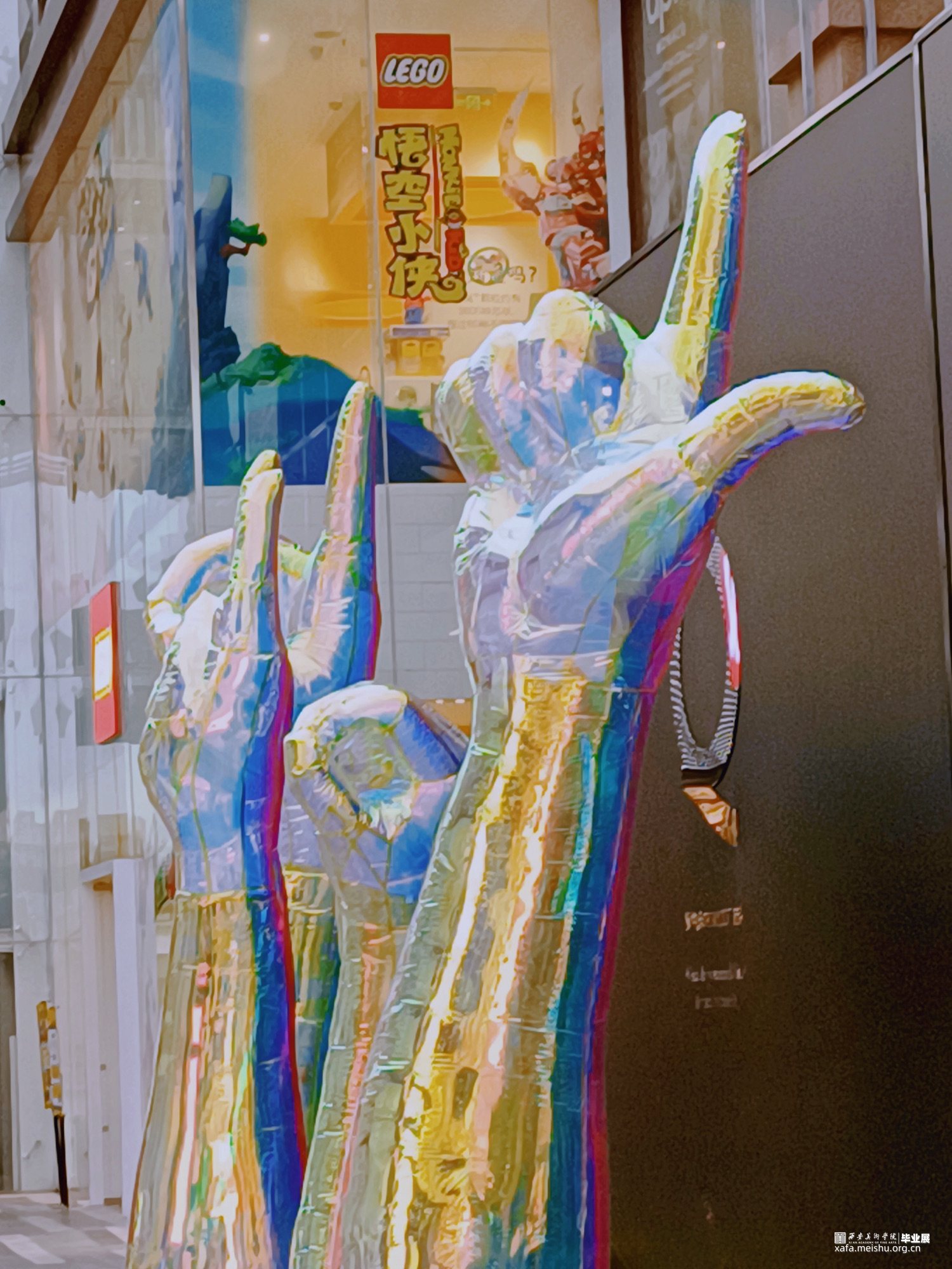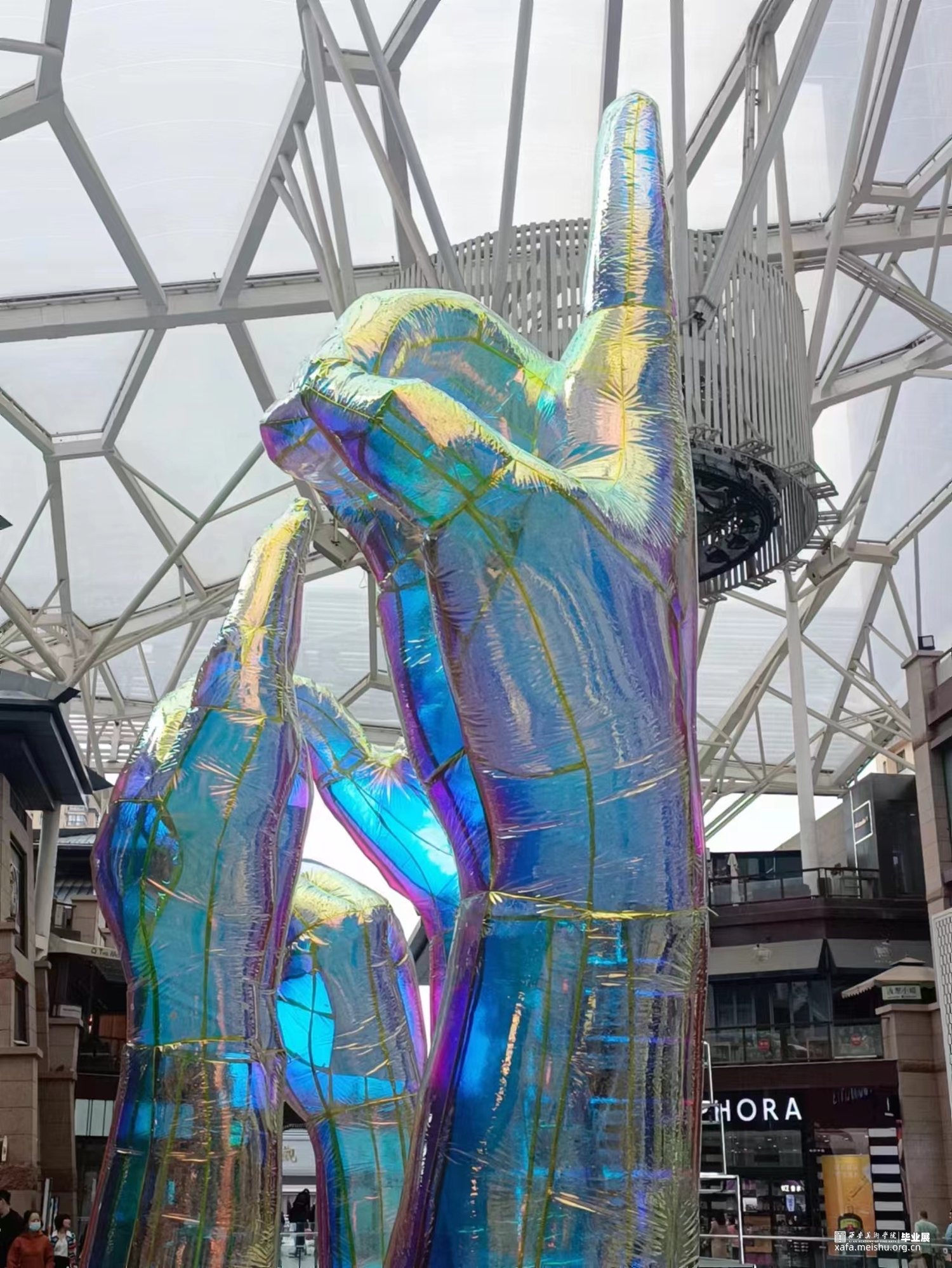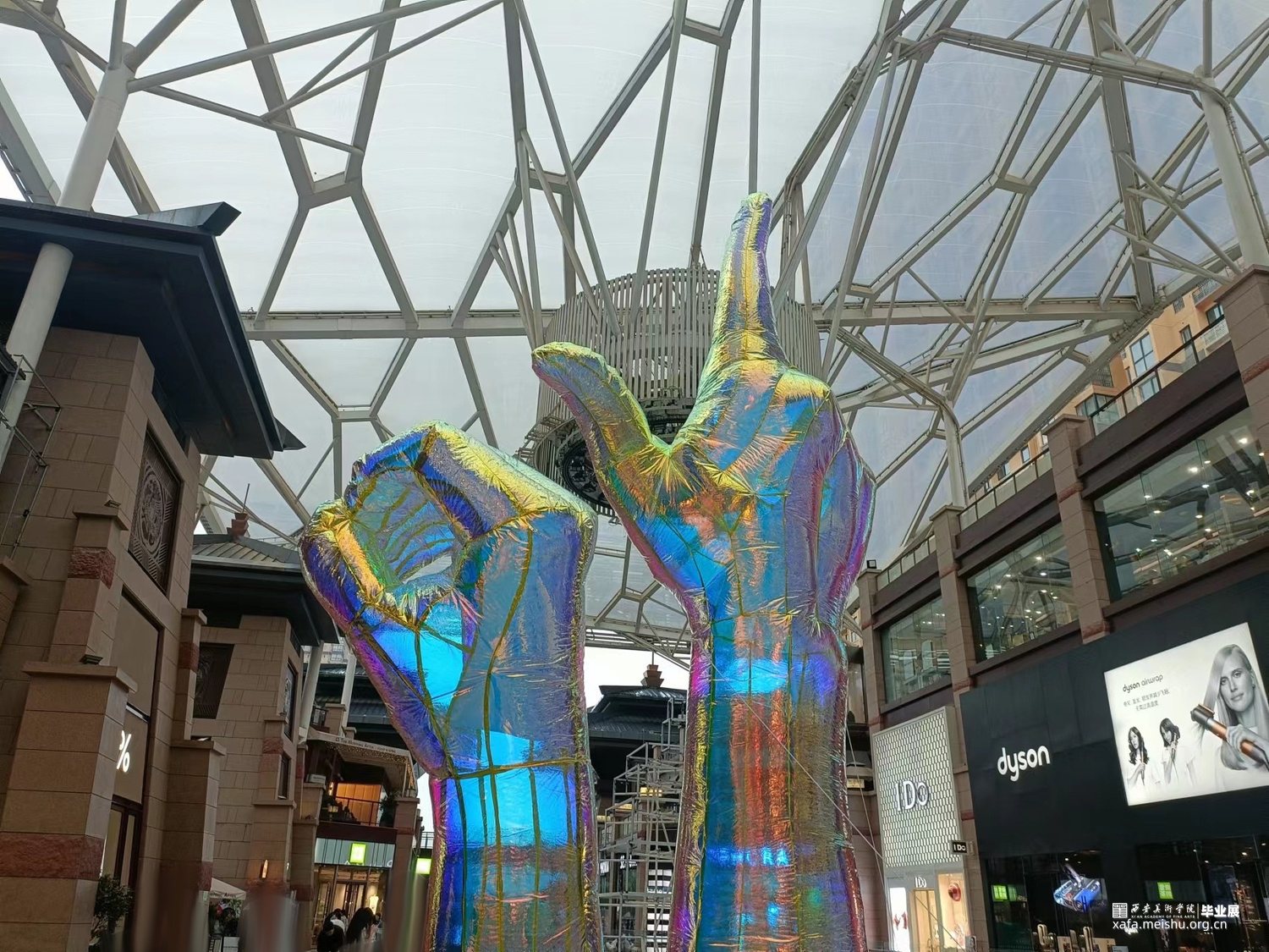 作品采用气膜充气时的喧嚣和斑驳的色彩,呼应听障人群内心世界渴望与常人一样“大声说、大声喊、大声笑”的诉求与心愿。以手语字母为原型拼出单词“loud”,发出无声之言,旨在于沉默不语中发出喧嚣。