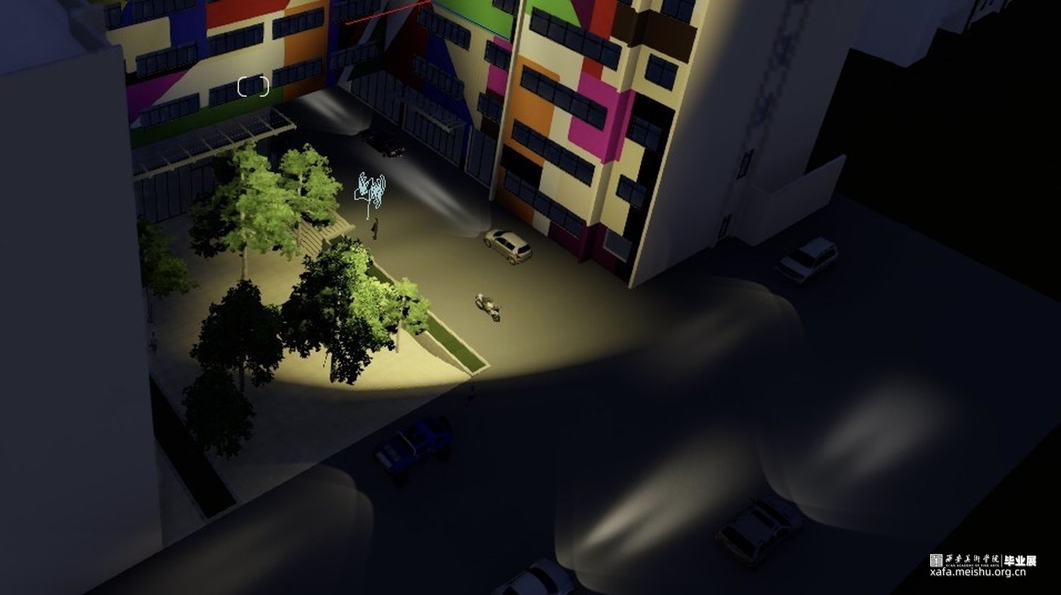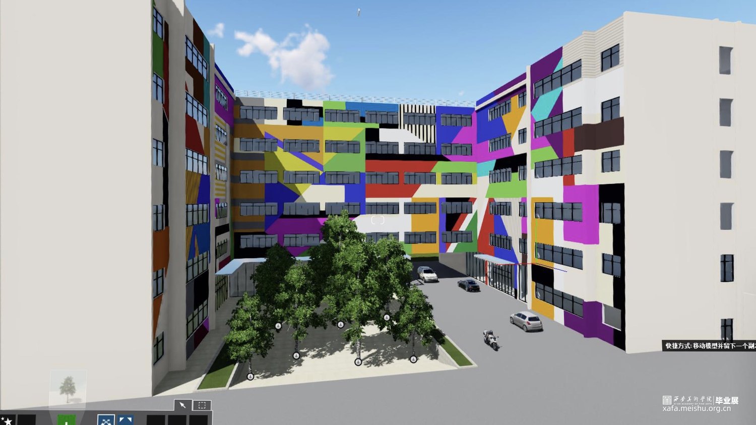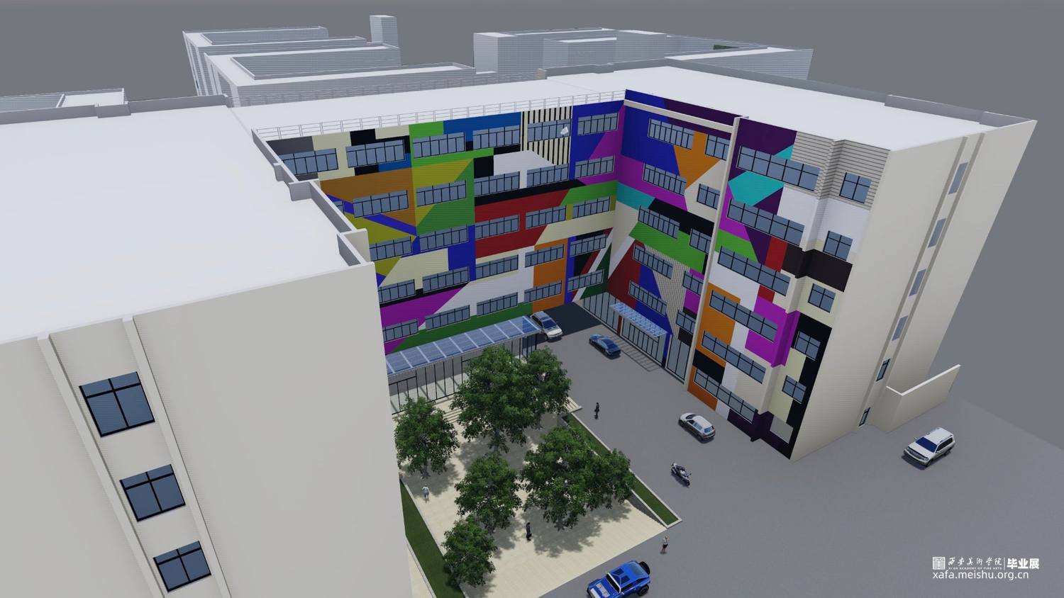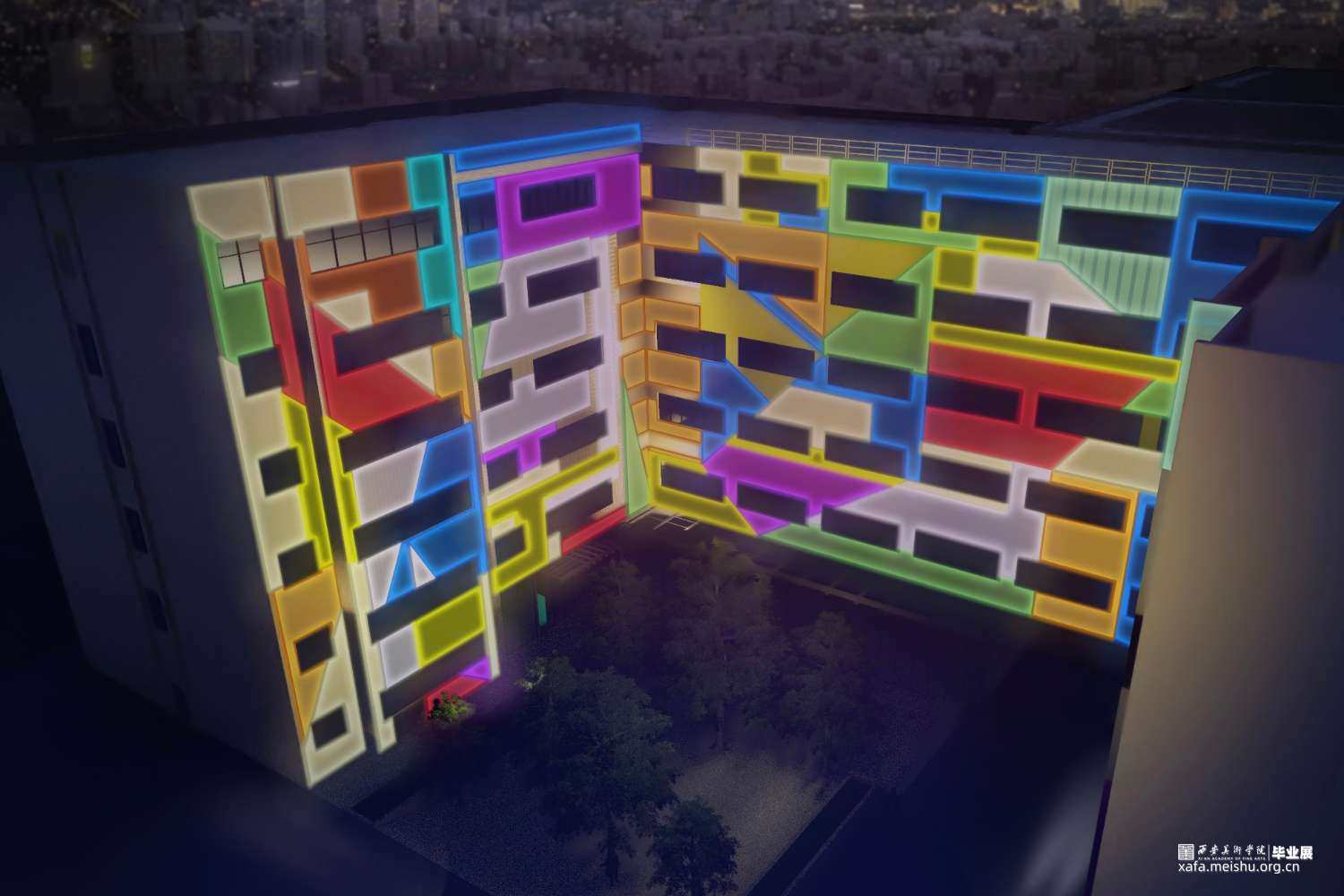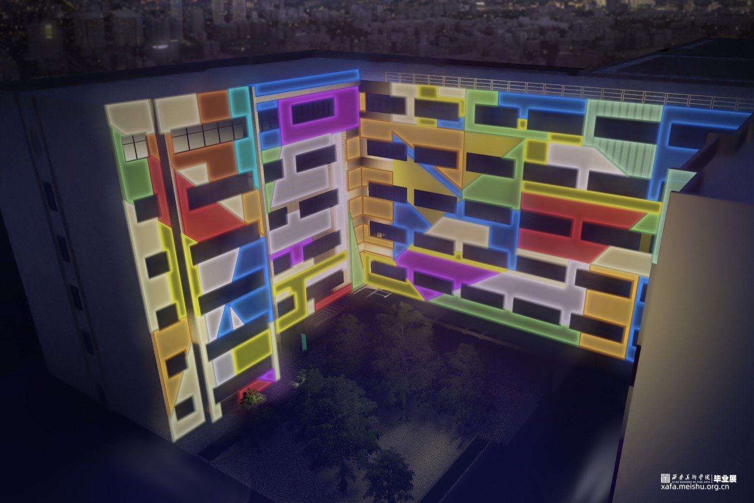 本件作品《三号教学楼2020》从自身为学生的角度出发,利用学习生活四年的三号教学楼为设计载体。在图形创作过程中,通过查找大量欧普作品资料作为参考,并极力做好创新,不断寻求新的表现风格。我将线条和图形整合处理,思考重组后图形在空间中应用关系,希望作品能与观者产生情感上的交流沟通。