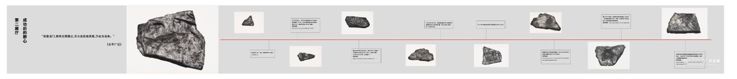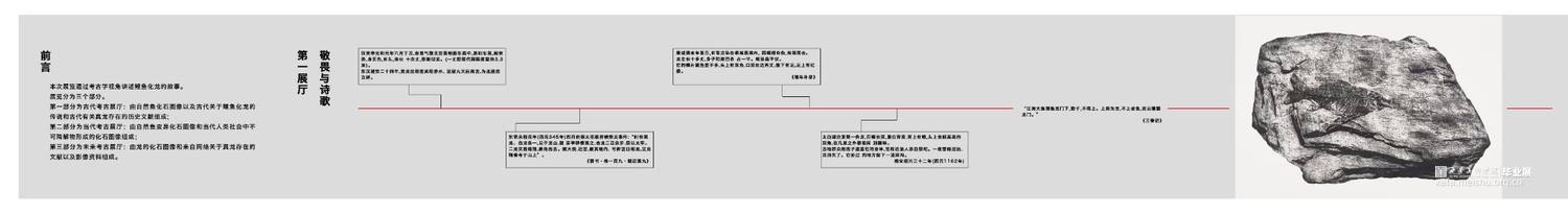 该部分以传统考古学的方法,通过历史遗存物和文献的考证来证明某一历史的存在。方案通过伪造自然⻥化石和历史文献讲述传统的鲤⻥化龙的故事起源同时也反映出在人类社会早期对于自然的敬畏和崇拜。