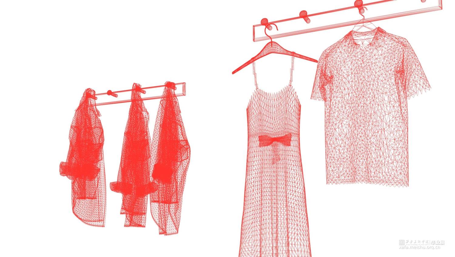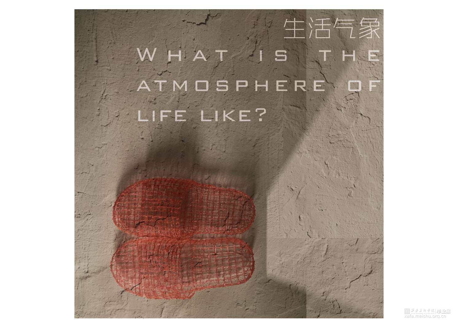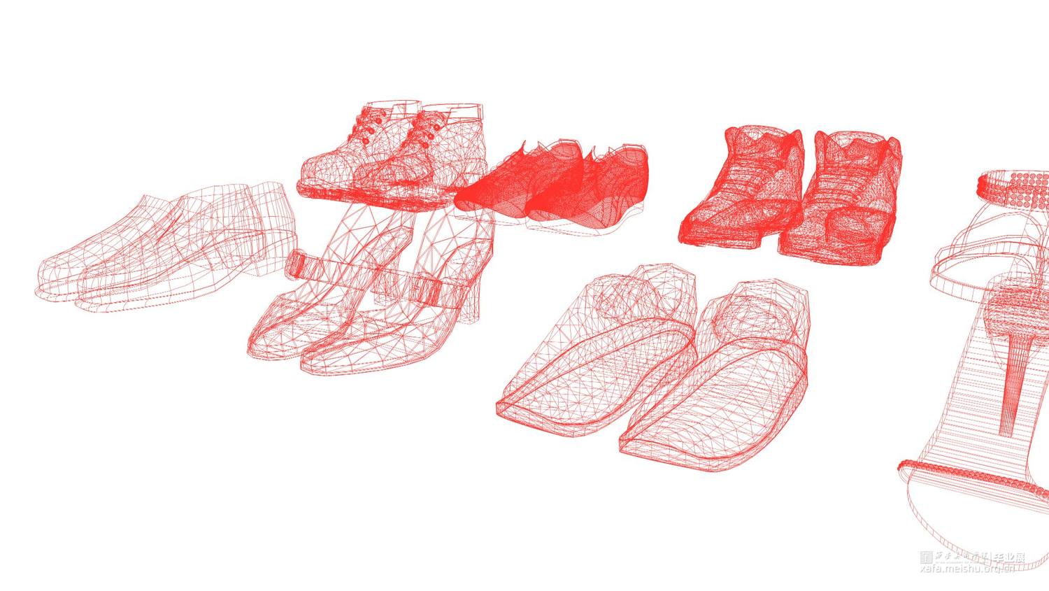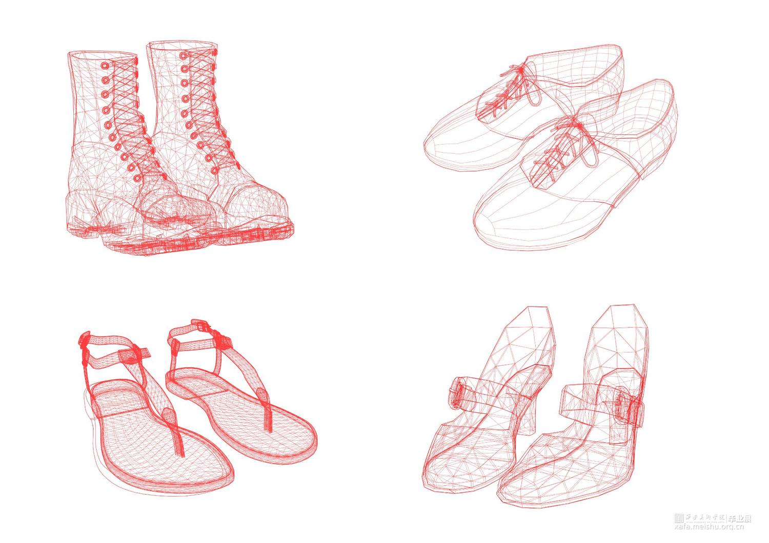 毕业创作的灵感来源于韩国艺术家徐道获的作品,他用色彩鲜艳,通透的纤维材料将自己的曾经居住的家创作成实体纤维装置,以此来探索不同空间的定义。因此,我借鉴了艺术家选用辨识度比较高的透明红色。通过材料结合服装鞋子等用品作为创作方式,选用透明红的3D打印材料加之网格肌理来表现作品的细腻质感,这种质感是夏天的、是廉价的、是随意的。