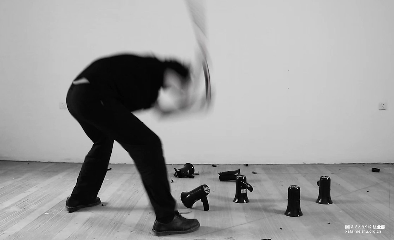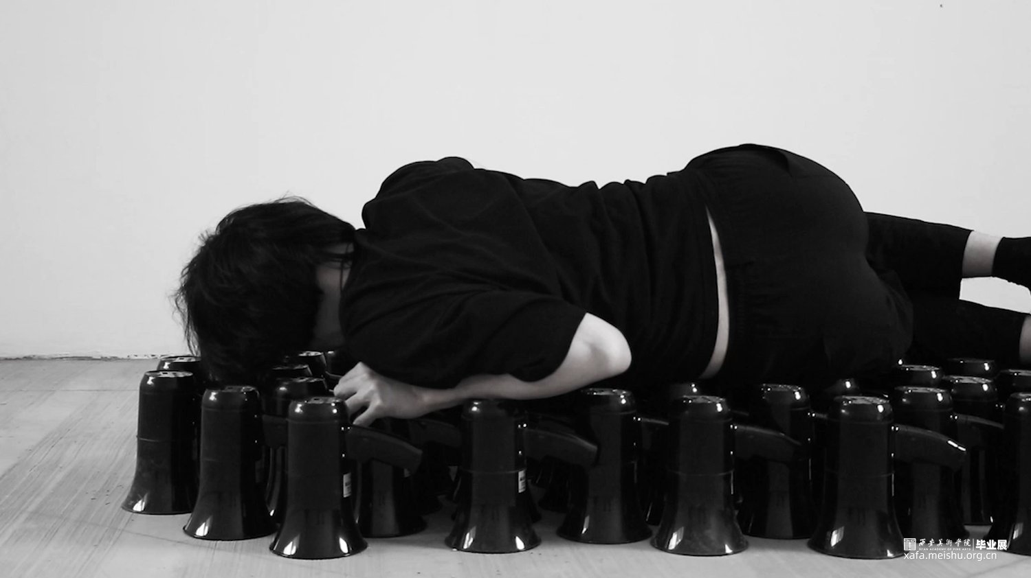 作品记录了以扩音器为表达主体的3个行为实验。在扩音器本身就具有较强的符号性质基础上,我再将自身的行动施加到聚集的扩音器上,以此来形成话语。作品产生于2020年初的社会氛围之下,一切突如其来。于是,我试着从相对积极的角度来去驱散一些自我束缚。并非是去宣誓口号,我实现的作品更类似于一种情感说明;当我控制自己的身体部位去贴近扩音器时,扩音器会发出吵闹的尖啸,并且会因为我的动作变化而产生音量、音调上的变化,而当我结束接触时,一切都会停止。同时,扩音器会放大我个人产生的所有声音,如轻微的肢