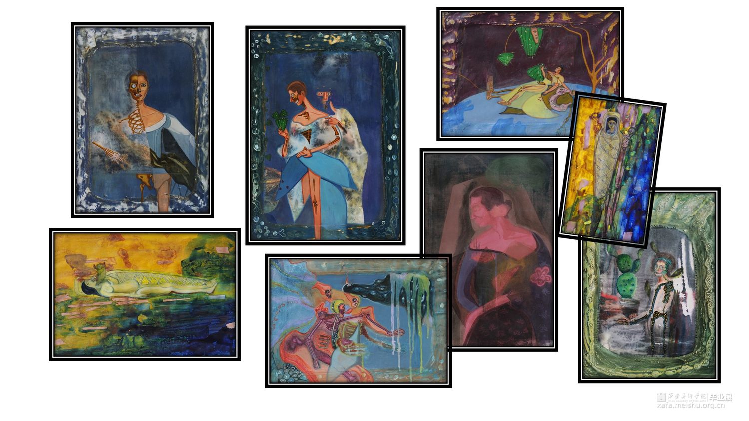 幻灭:她来到镜子前,重新审视自己,美丽的外表正在迅速改变,肉体肢解裸露出淋漓的血肉和骨骼。但她并不感到恐惧,因为她知道自己看透了虚假和美丽的欺骗,当先前的事实和真相幻灭,真实与虚假,美丽与丑陋之间开始流动新的平衡秩序正在建立。