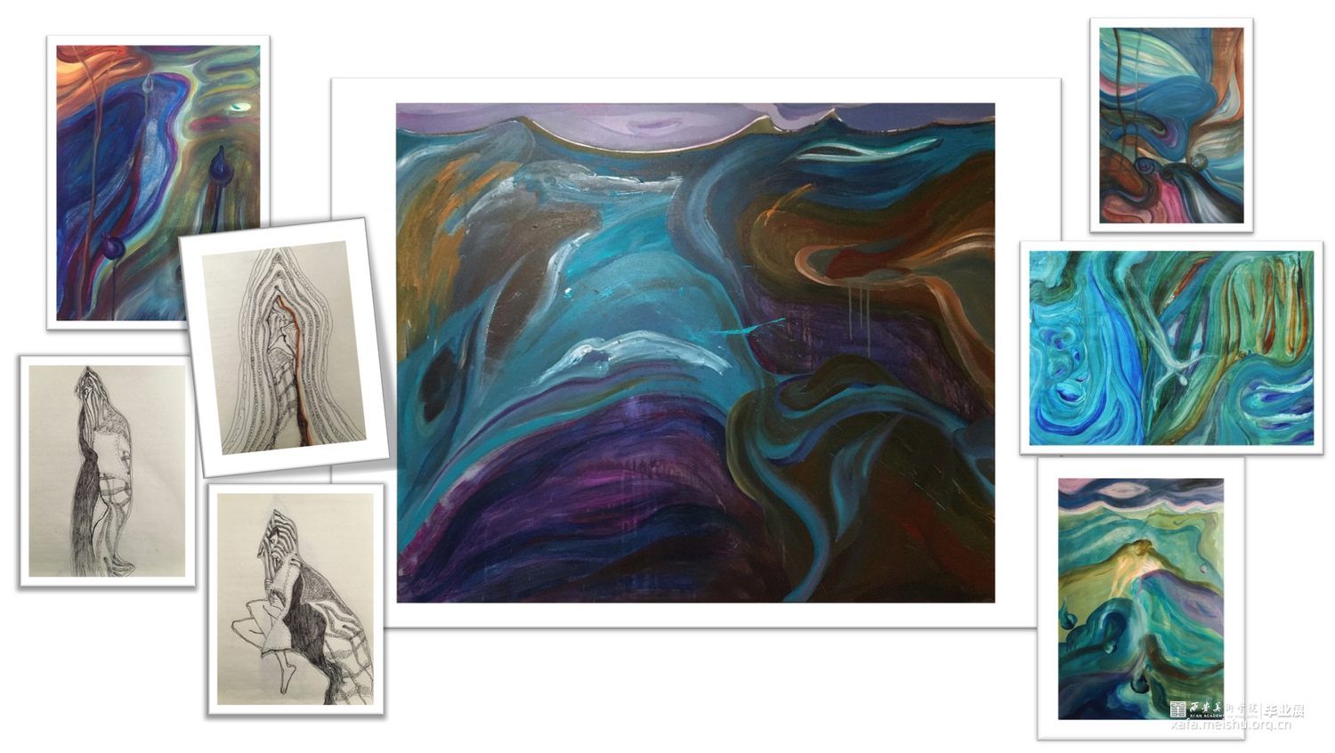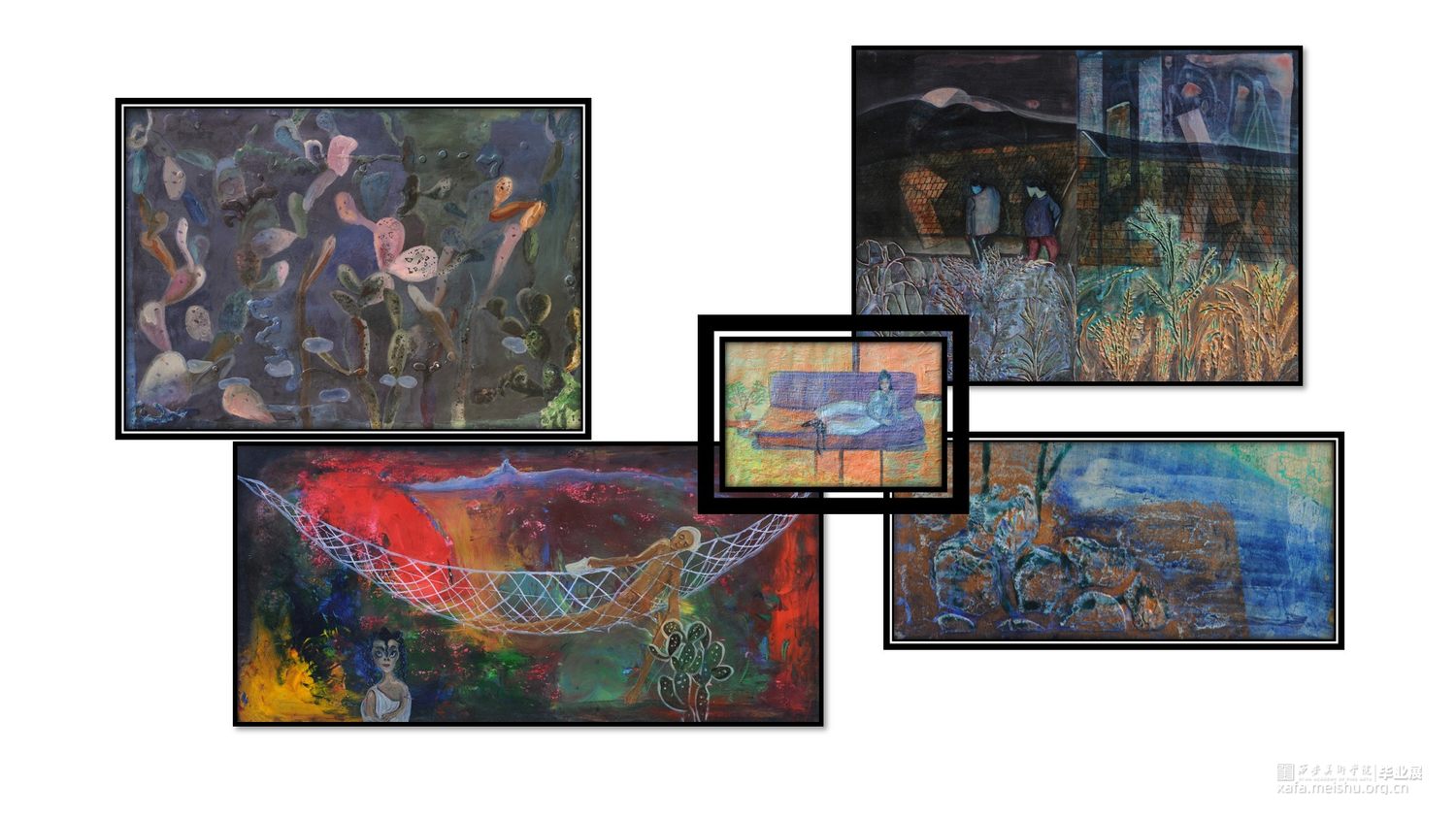 梦境:她沉浸在思考中……我们赖以生存的理所当然认为会存在的太阳是变化的,有一天也会消失,那时一切秩序都将被打破包括社会以及以此为基础建立的性别概念和偏见……肉眼所见的美则是一种欺骗,就像花园里美丽的花朵让我们忘记了藏匿其中的毒蛇,晴朗的海面下也有汹涌的激流和肆虐的猛兽,星宿密布的夜空后闪烁着窥伺的外星文明。如果美是欺骗,那么美术就是欺骗的技巧,画笔描绘的不实之物欺骗了眼睛,然而谁又能说这它不是真实存在的呢?它就挂在美术馆的墙壁上,能清楚的看到笔刷的痕迹,闻到油墨的味道,触摸凹凸的材料肌理……它就是真实与虚假之间的一道裂缝,透过它,虚假的世界得以被窥探。然而却没有谁能过真正的分辨真实与虚假,就像庄周梦蝶,就究竟是谁进入了谁的梦中?又像电影《楚门的世界》,主角楚门作为无可争辩的真实,生活在一个他人搭建的真人秀舞台上,这也是他认识世界和自我方式。她感到真实与虚假似乎也在以某种形式相互流淌,所有的边界都在模糊……她梦见自己做了一个梦……