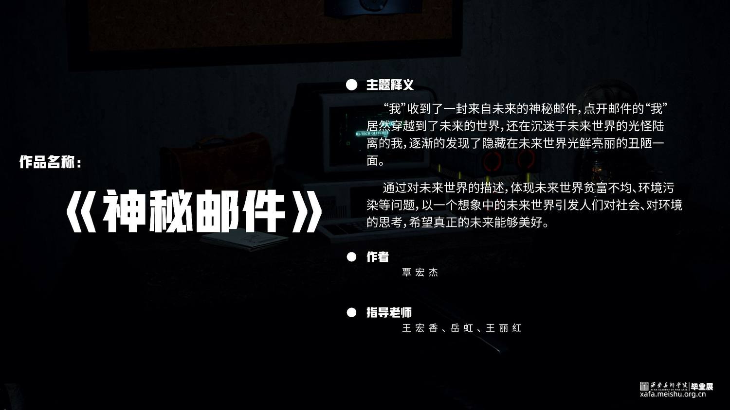 “我”收到了一封来自未来的神秘邮件,点开邮件的我居然穿越到了未来的世界,还在沉迷于未来世界的光怪陆离的我,逐渐地发现了隐藏在未来世界光鲜亮丽下的丑陋一面。