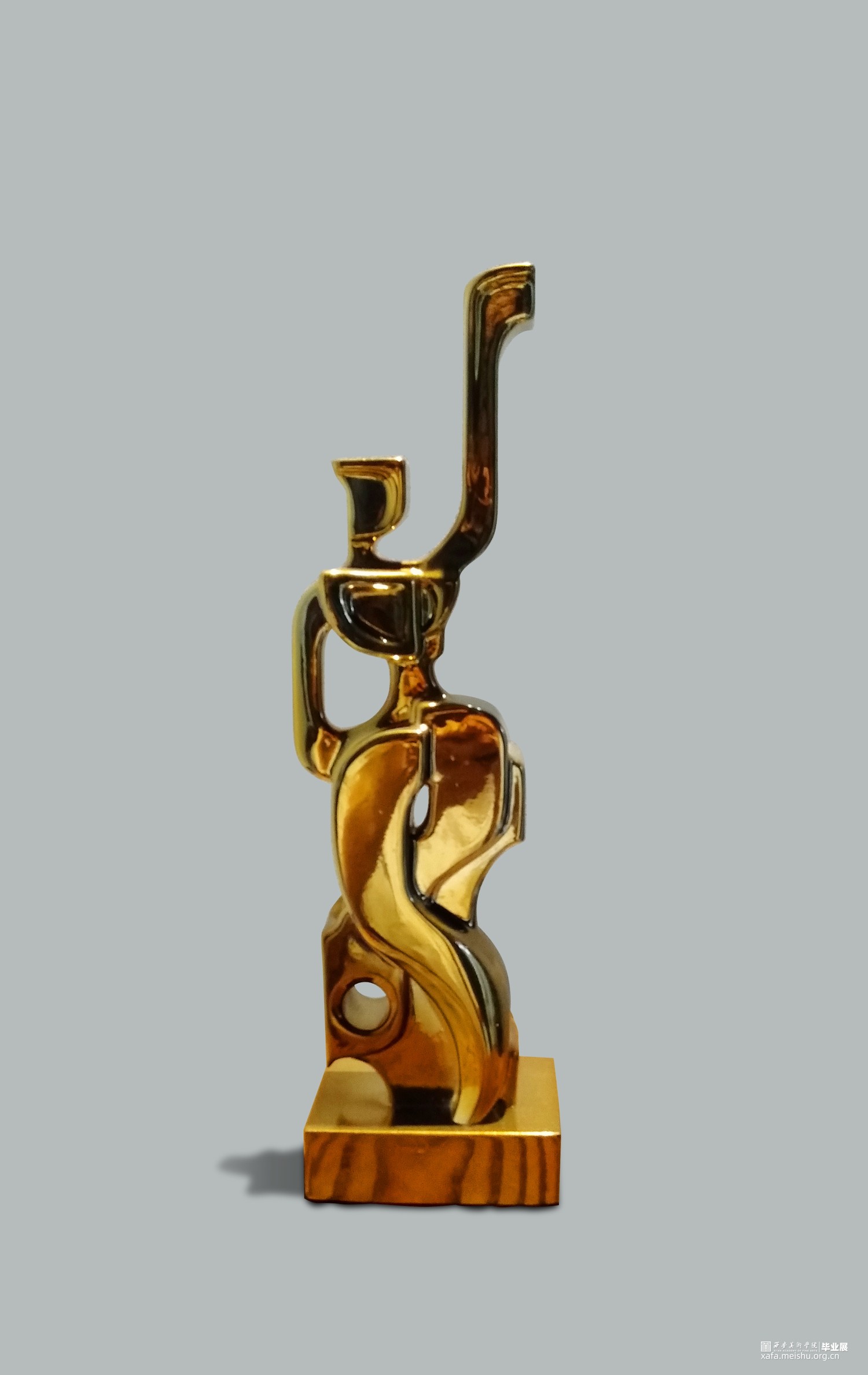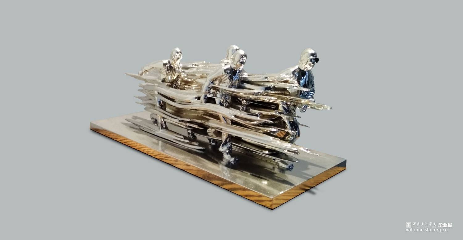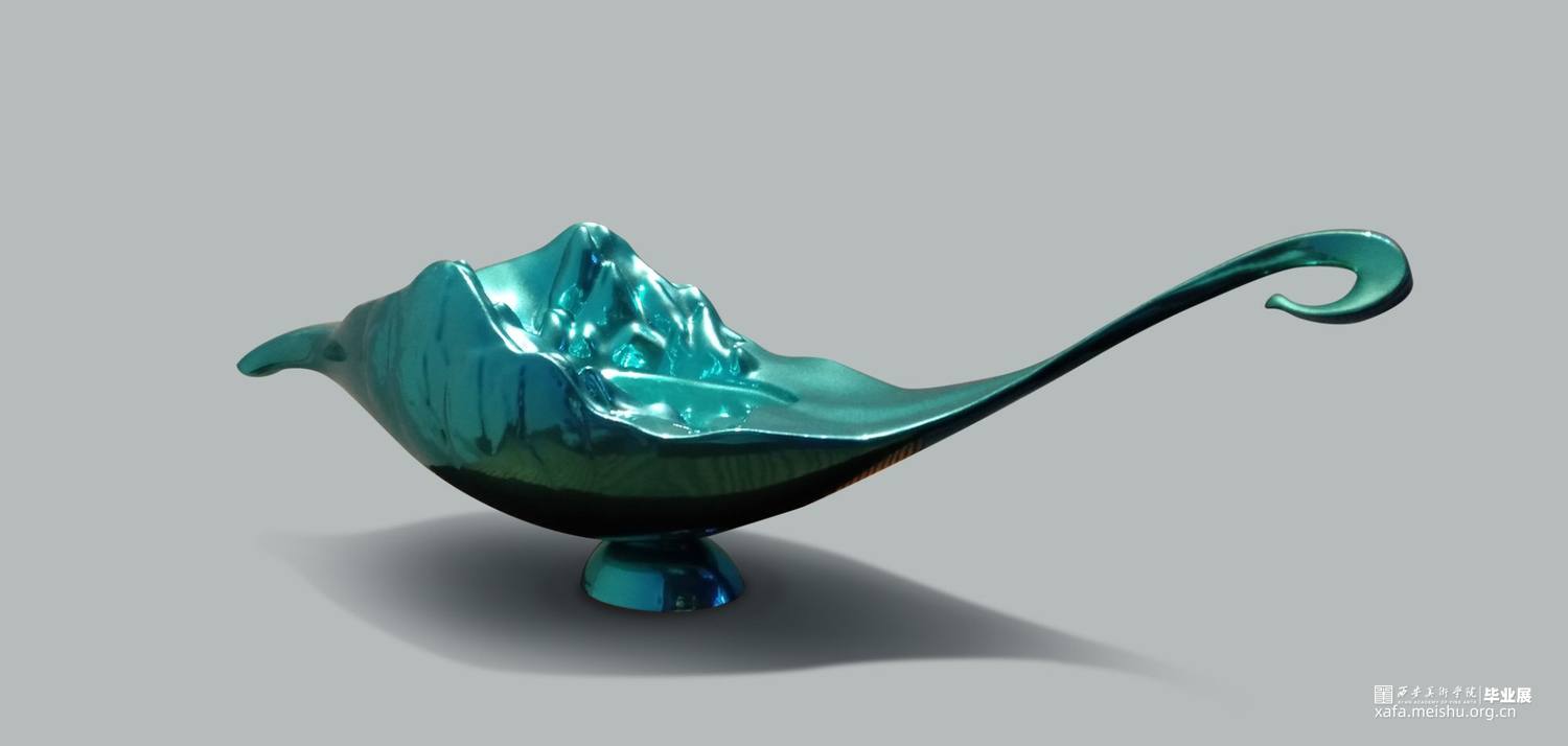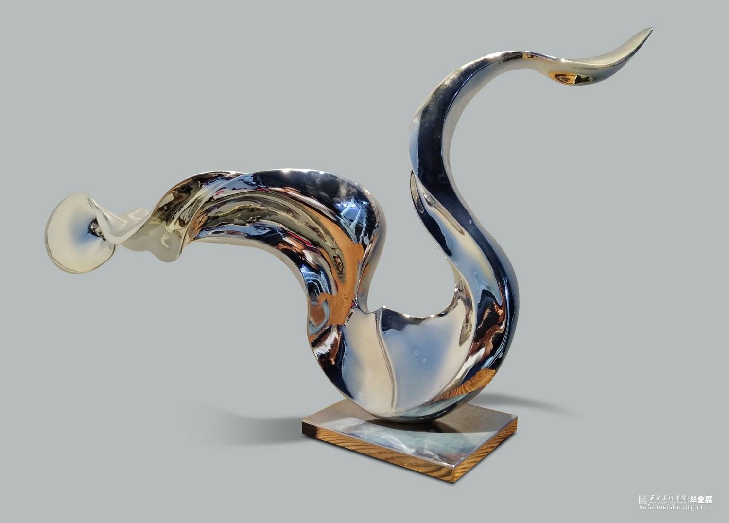 《漆物语》从自然界中的实物寻找灵感,如《漆物语之一》就是通过海螺的变形而来,通过灵动的线条表现山水之间的怡然风情。一汪清泉流淌之上,两面山峰依水而立。从最自然的形态抽象出灵动的线条和形式美感,融入场景之中,两者相得益彰,在饰以漆面的处理效果,弥补了不能使用大漆创作的遗憾。《漆物语之二》表现的也是山水之情。水自山间流出,而后经过山川湖泊,最后飘扬流淌与山势之外,与山间流水遥相呼应。作品整体造型来源于孤舟,山水泛舟而上,小舟灵动飘扬。