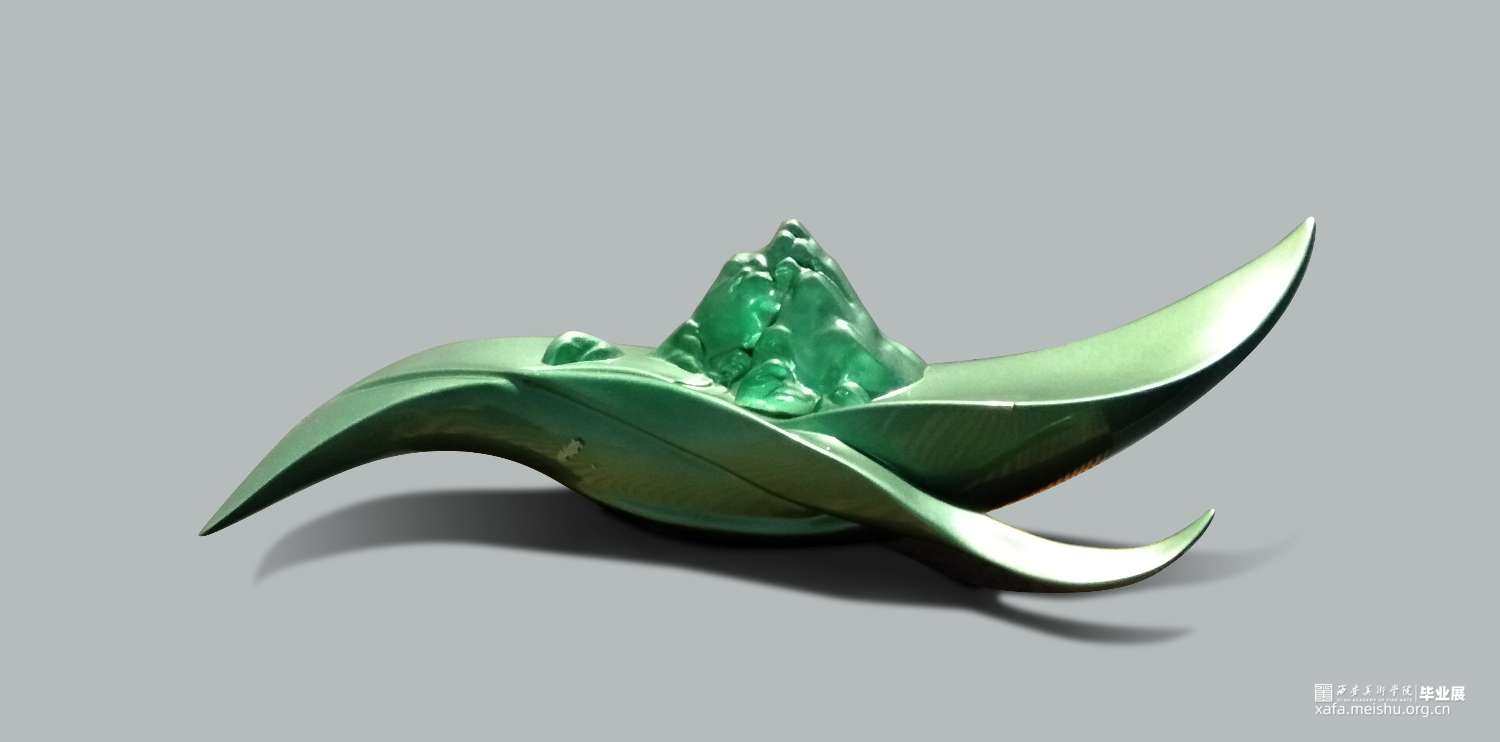 《漆物语》从自然界中的实物寻找灵感,《漆物语之二》表现的也是山水之情。水自山间流出,而后经过山川湖泊,最后飘扬流淌与山势之外,与山间流水遥相呼应。作品整体造型来源于孤舟,山水泛舟而上,小舟灵动飘扬。