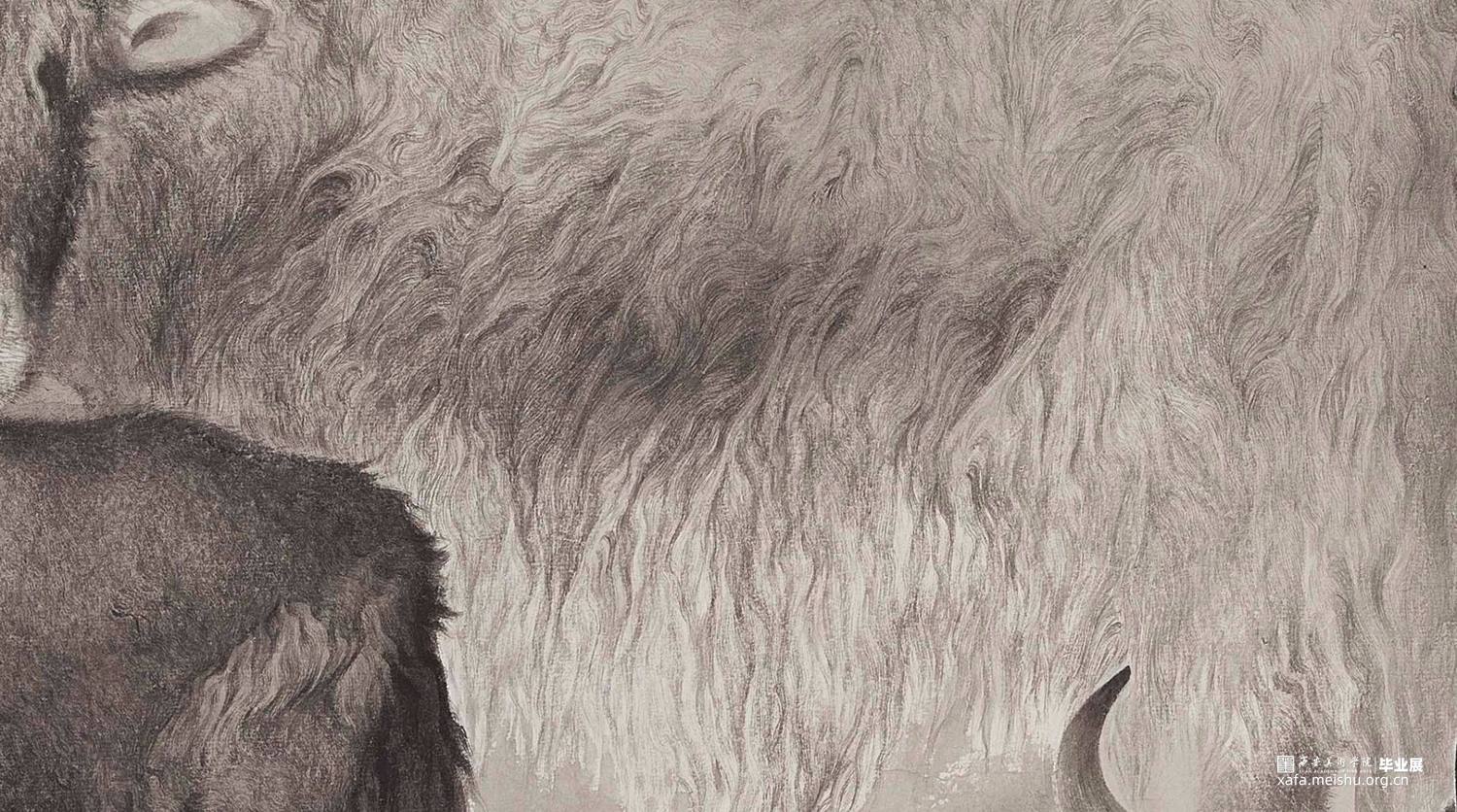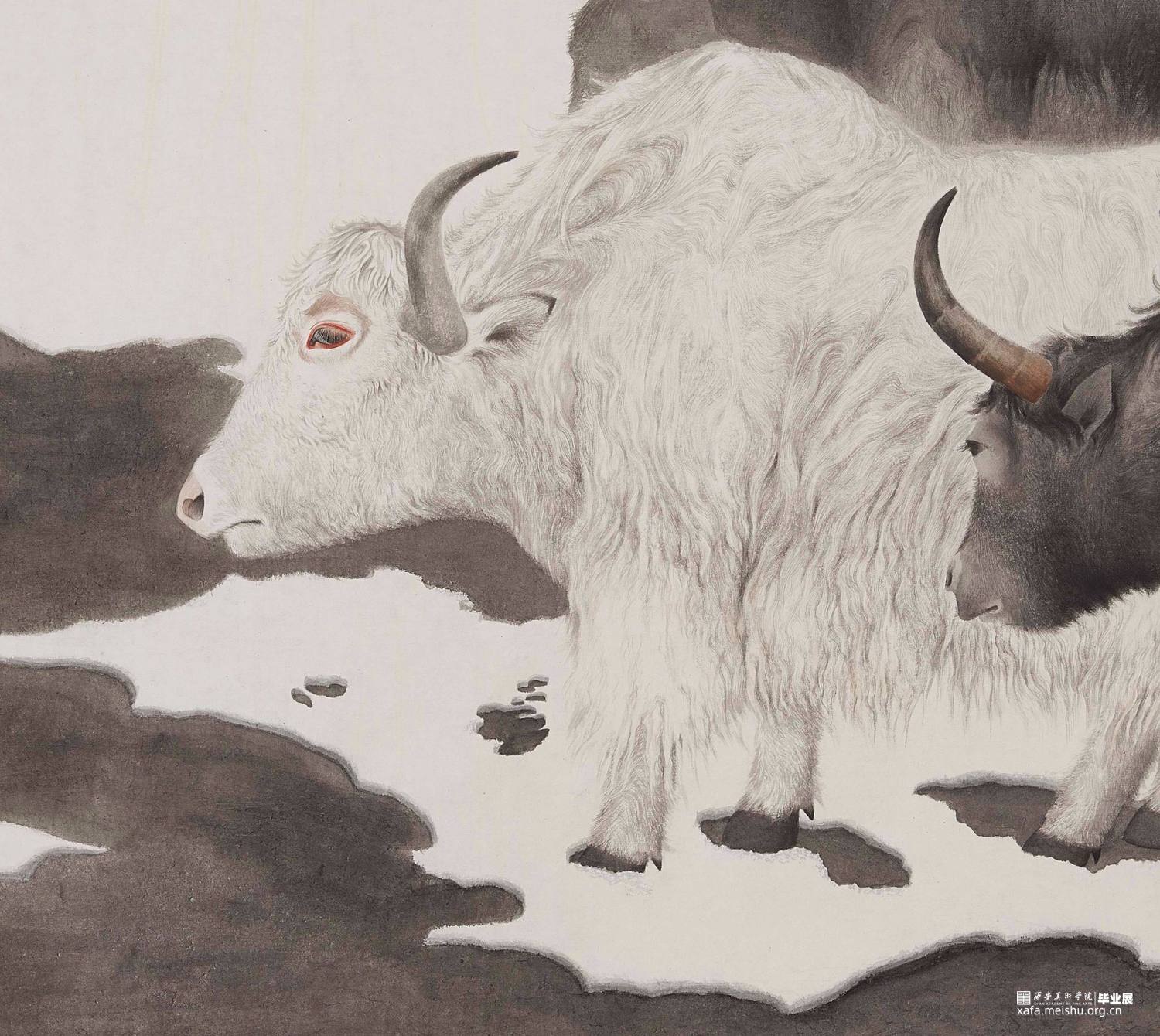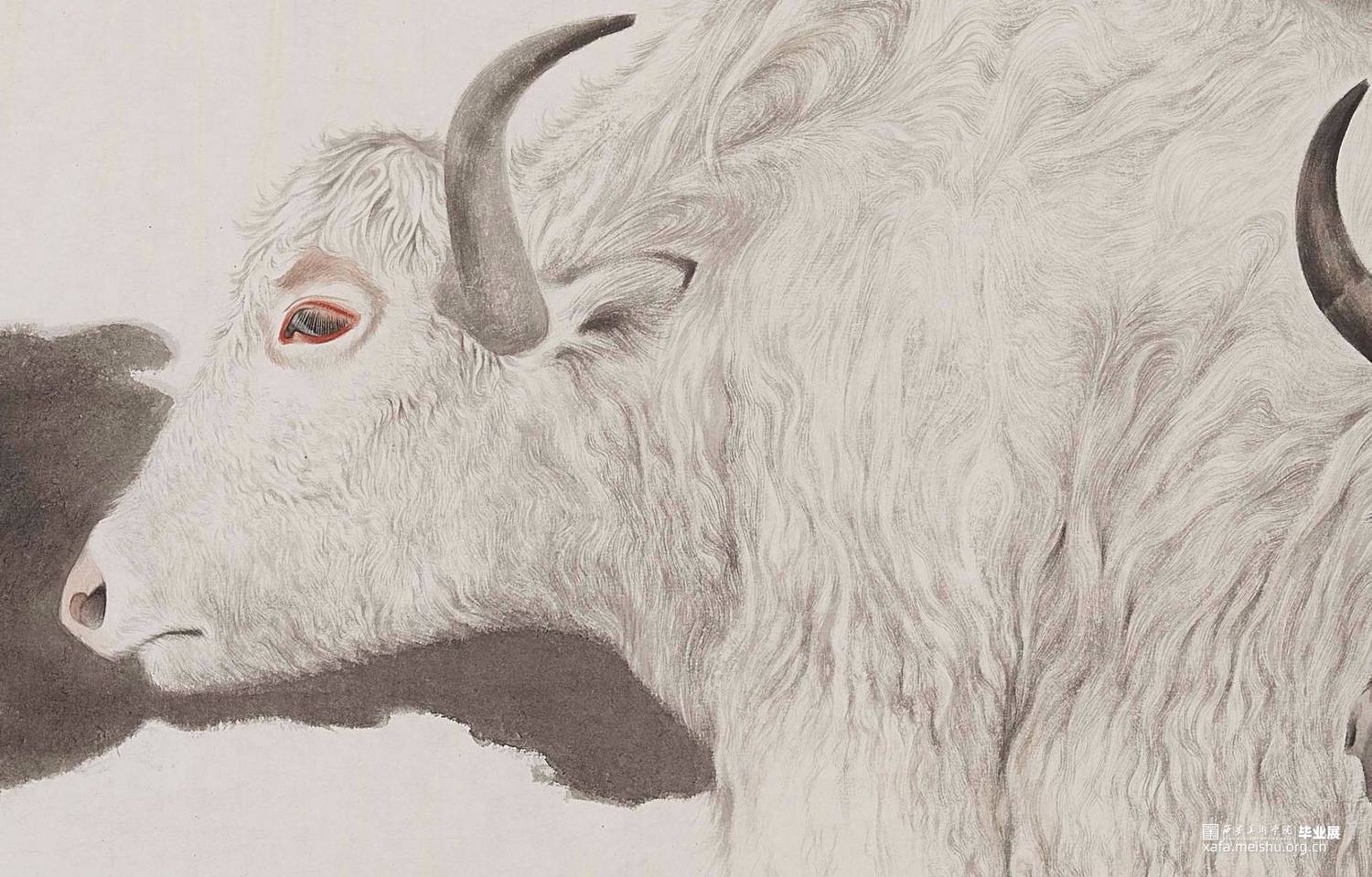 漫步在那片纯白的雪原,茫茫的白色足以刺痛神经,那跳跃的急促的飞雪,似乎要侵占这片雪原上仅剩不多的色彩……除却雪原的狂野粗旷,她还有安静温柔的一面。我见过最安静的场景,那便是雪后的牦牛群,它们悠闲的晃着,走老远也吃不到几根草。它的惬意,也带给了我感官的享受。作品的创作主线围绕着高原雪后的牦牛群,致力于表现雪光给人视觉带来的恍惚感还有牦牛和雪原这种动静的平衡关系。