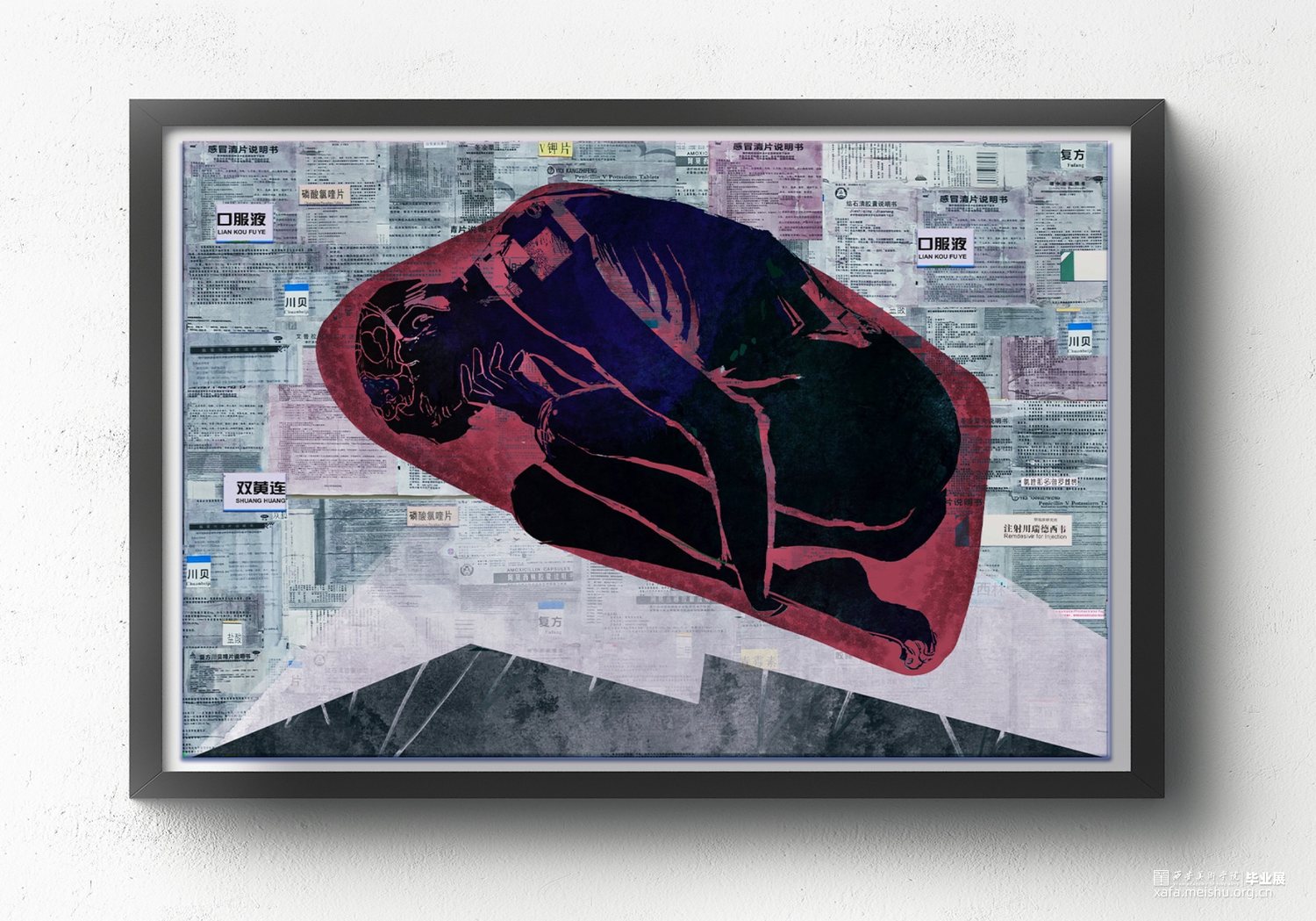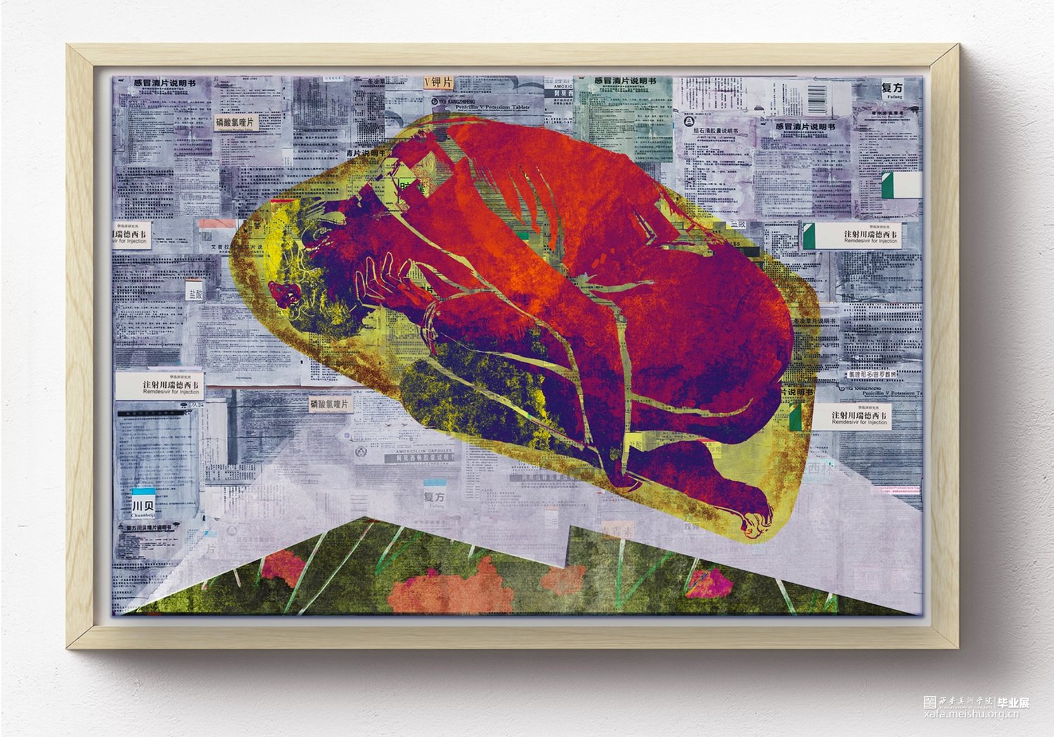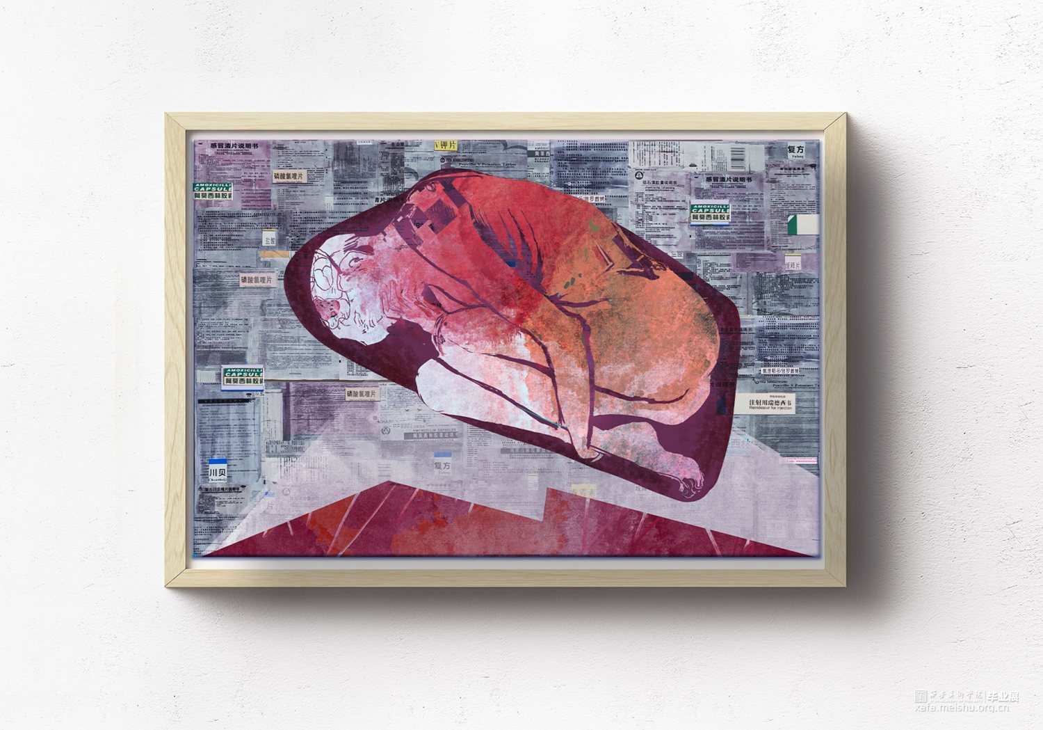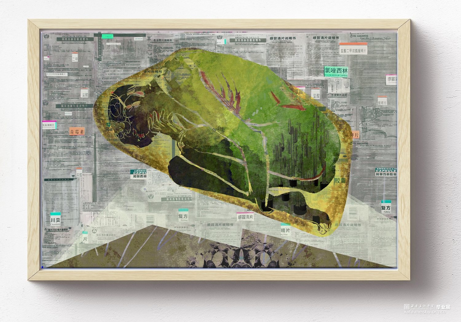 我的综合材料绘画作品 《醋酸羟喹泼松咗》,分为六幅作品进行自我理念阐释与表现,主要表达我对疾病的思考。