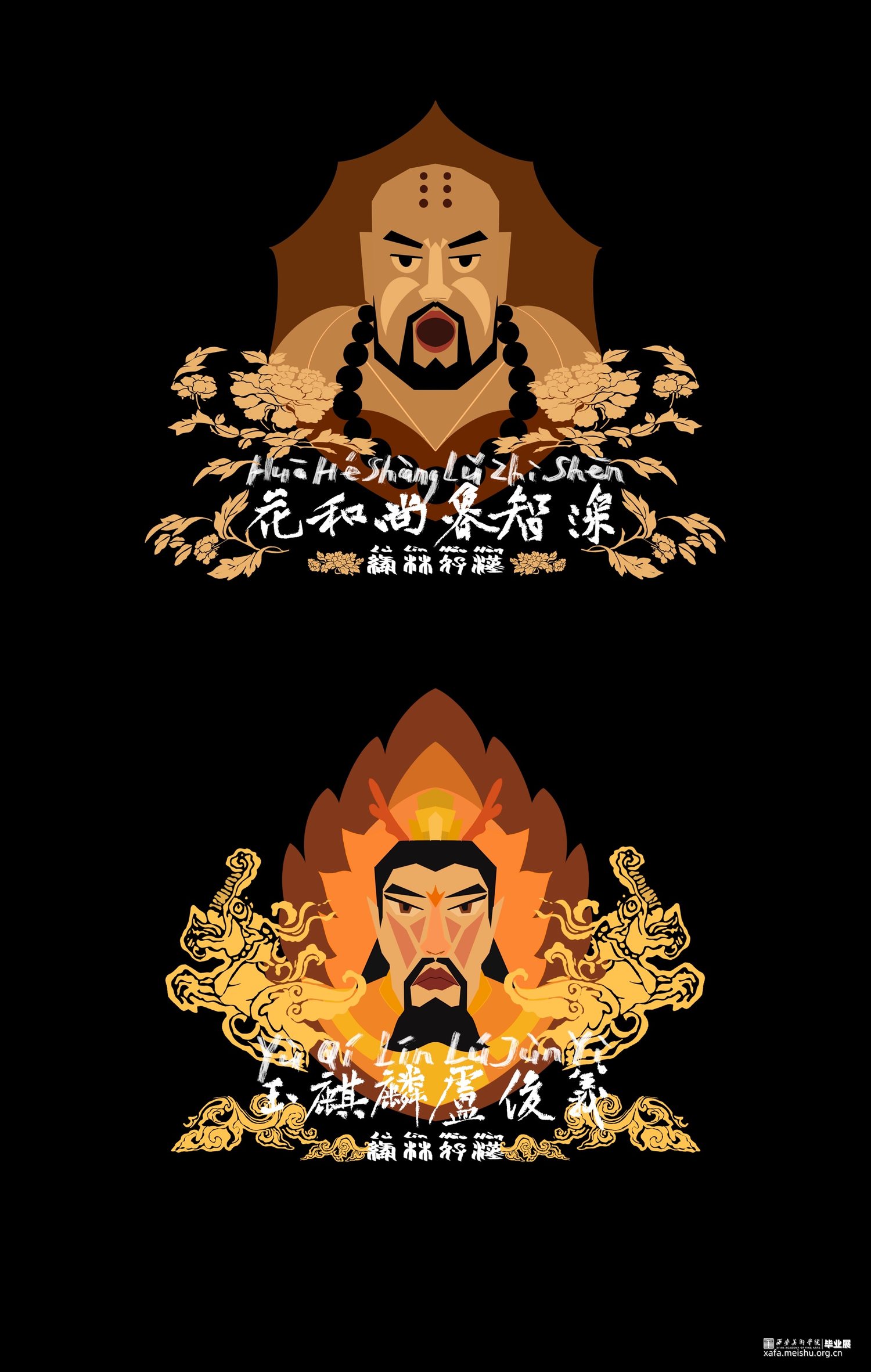 从中国传统文化中提取元素,结合人物特征,通过绿林好汉人物形象插画设计系列作品,让更多的人了解传统文化、爱上传统文化、传承和发扬传统文化、挖掘传统文化的深刻内涵,同时也希望越来越多的的中国元素能够融入设计当中。
