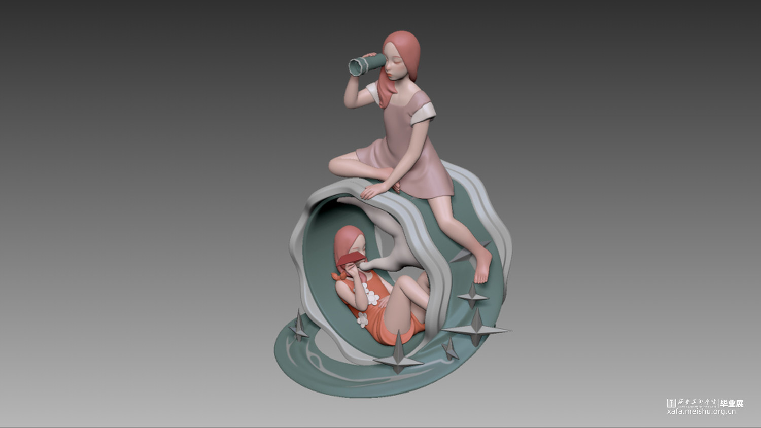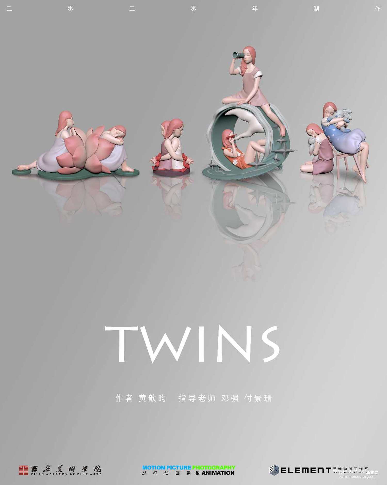 《TWINS》这组作品想表达的是作为双生子对外界对他们的惯性想法的反应,与他们自己相处的感受。这组作品由四个部分构成,分别是《并蒂莲》、《拥抱》、《望远镜》、《秘密》,第一个部分用并蒂莲的元素来预示双生子的出生。第二个部分《拥抱》表达的是双生子从小就被“双生子”这三个字捆绑着,别人喜欢比较他们的外貌,人生轨迹,两人一旦分开就会被问另一个人去哪了,很少被当成两个独立的个体对待。第三部分表达的是分隔两地的双生子互相牵挂着对方。第四部分则是表达经历了各种人生的他们,有自己的想法和秘密,是独立的自己,不是另一个对方。