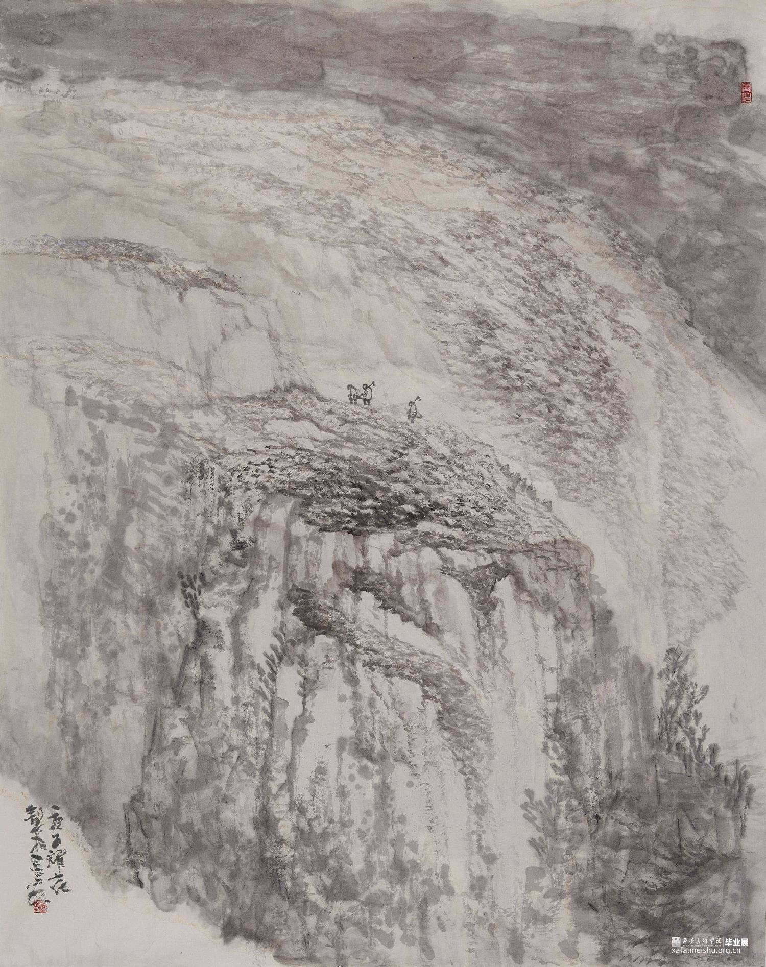 作品经过前期多次下乡写生、采风,对陕北黄土高原的地貌特征和民风进行研究,然后回到案头创作,反复实践,寻求符合自身和陕北的笔墨语言。