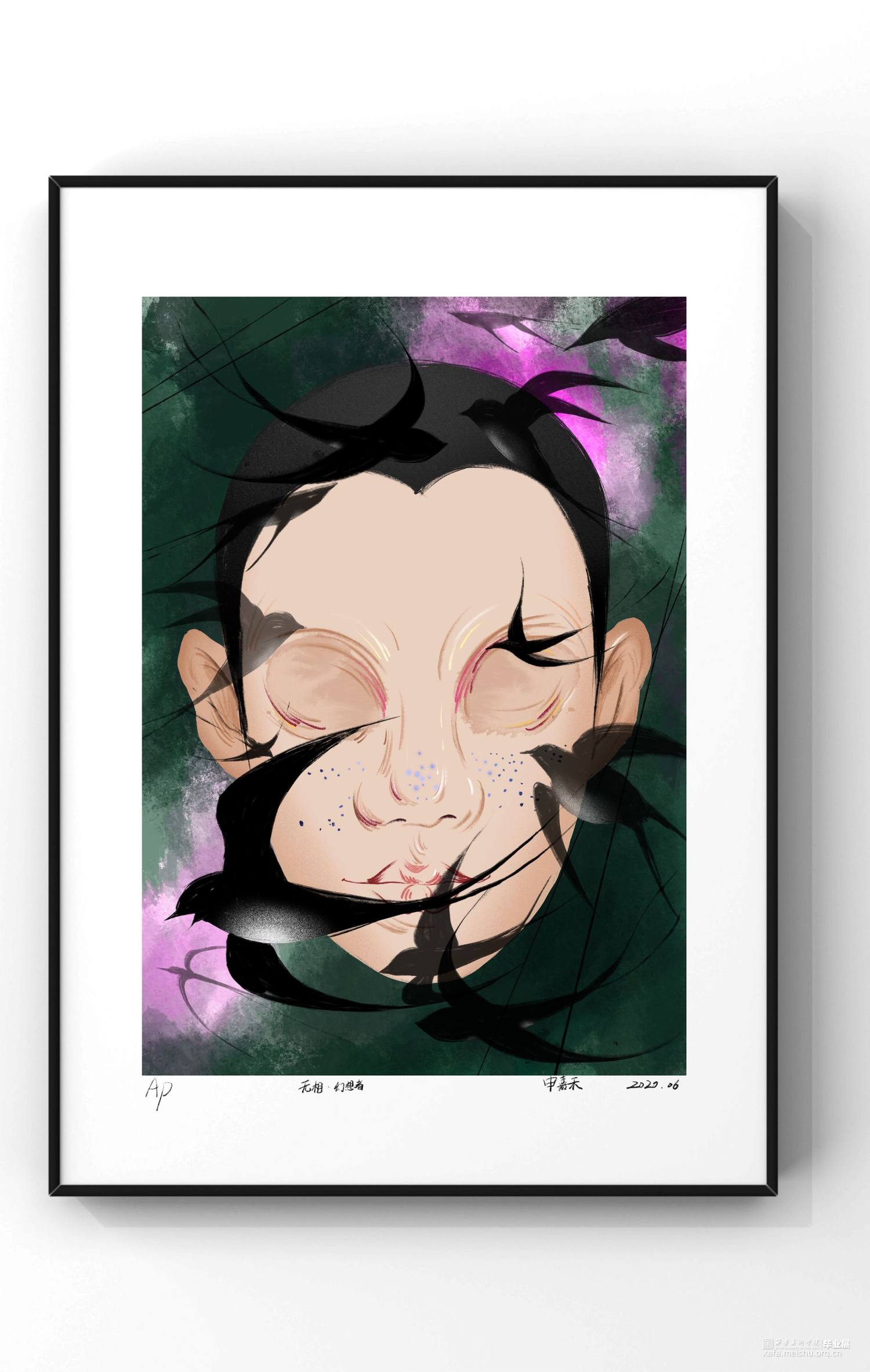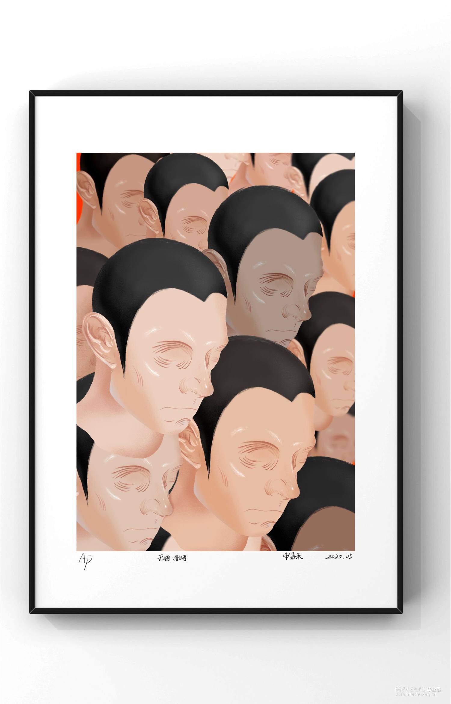 《无相》系列是以作者自画像为蓝本,创作的一系列可以代表一部分新时代青年形象与生活的作品。作品用图像记录个人的生活状态,以碎片化的形式与数字图像相结合,希望以数码版画的形式与当代青年的审美产生共鸣。数字时代我们从何而来?又有何不同?每个人千差万别却又千篇一律。作者想知道这些问题的答案,所以希望这系列带有实验性的作品,能为人们引出问题并加以思考。