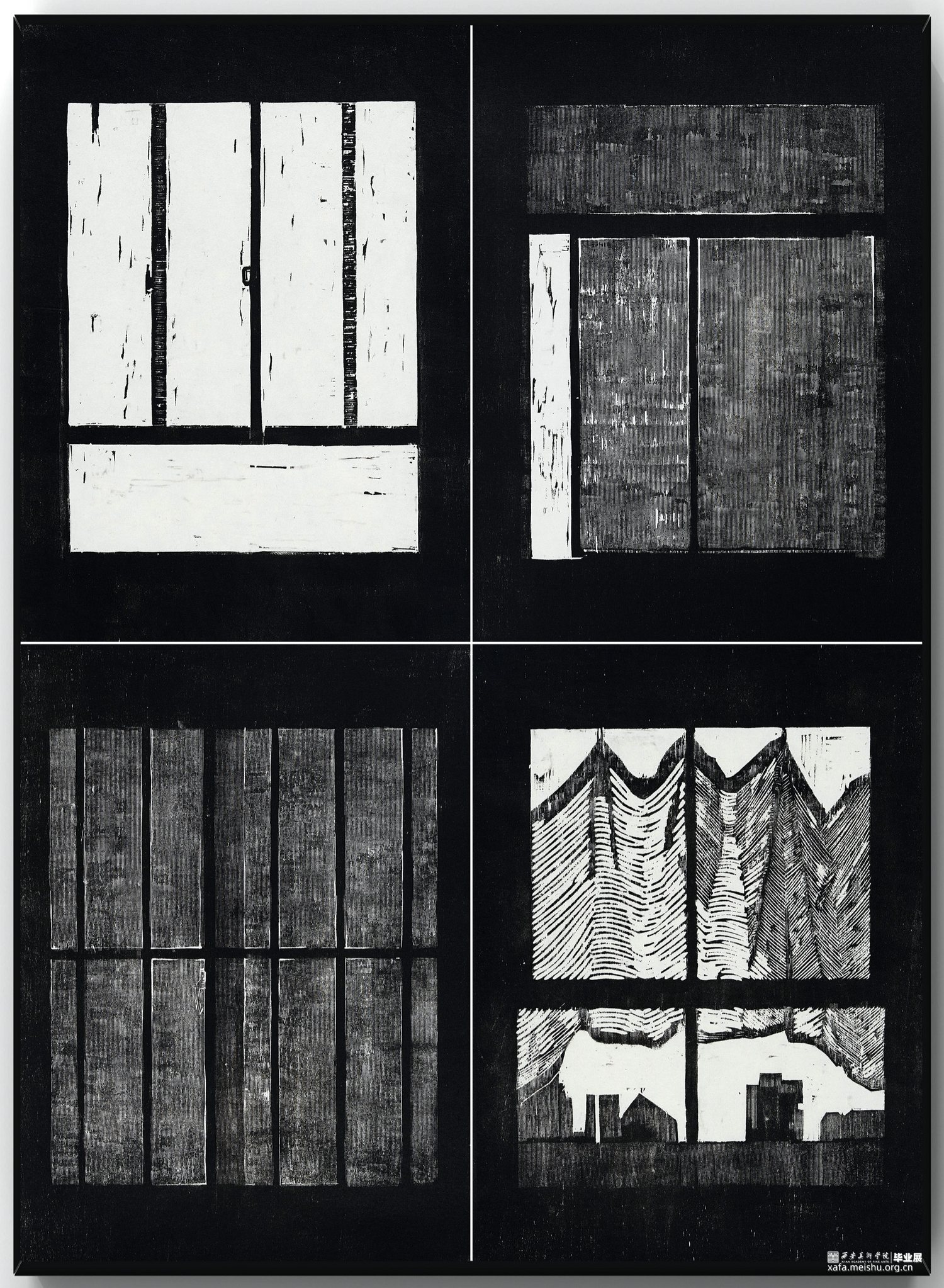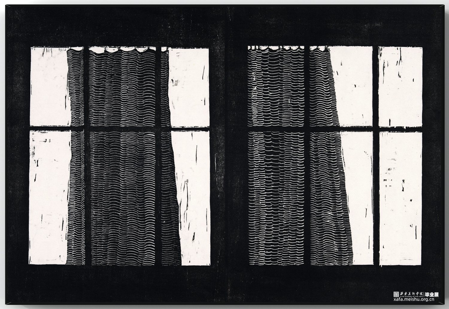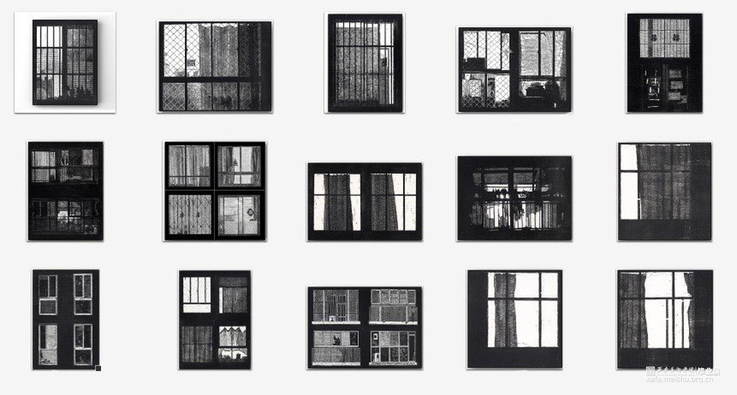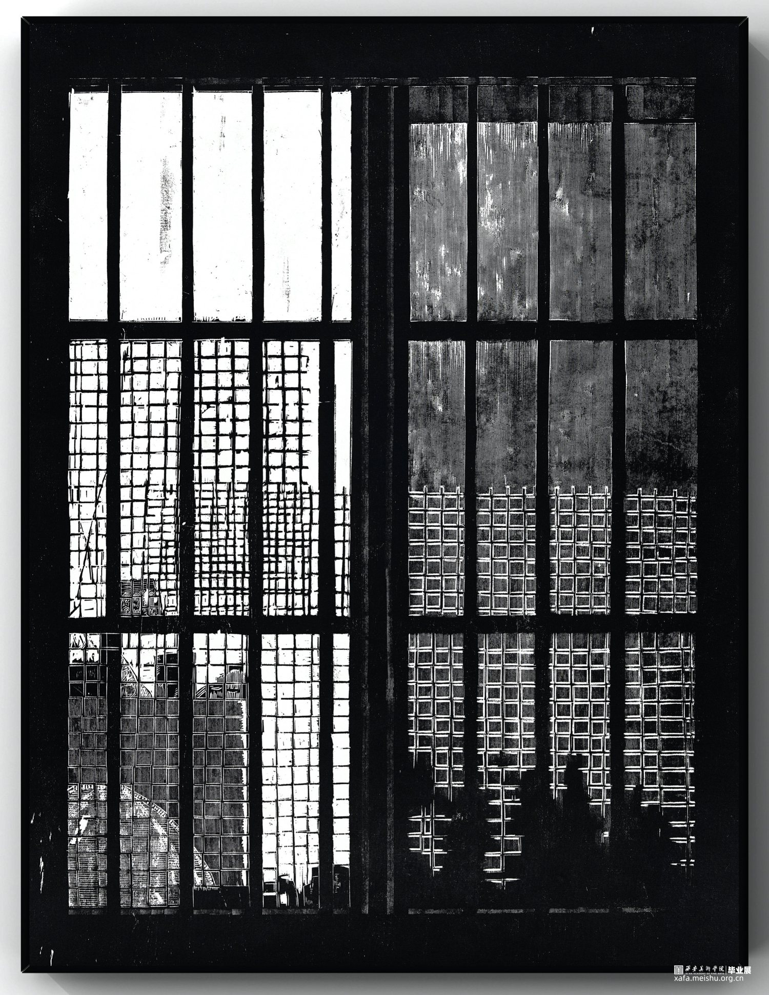 作品是由世事变化之快、城市飞速发展,但人与人之间的距离却越来越疏远感触得来。自己在观察着一扇扇窗口,每一扇窗口的背后都发生着不同的故事。伴随着现代科技的发展,房屋的进深越来越大,人们距离外界的距离也是越来越远。在自己与窗口的对视中,产生出了有关于城市题材的黑白木刻作品。