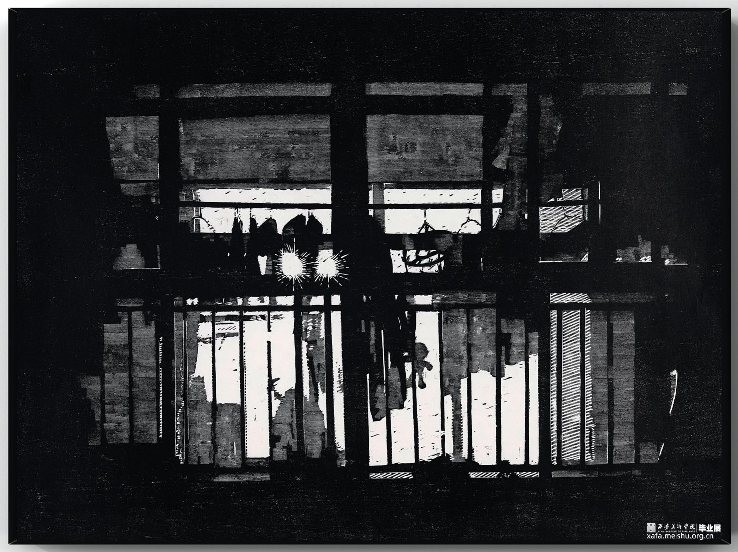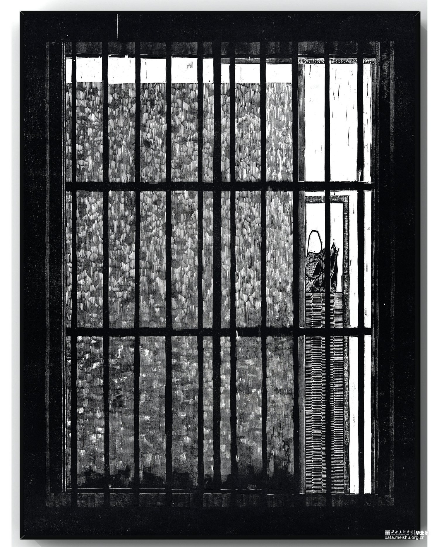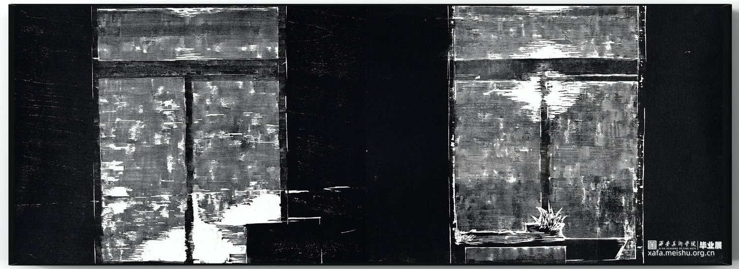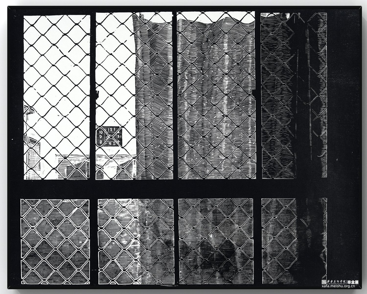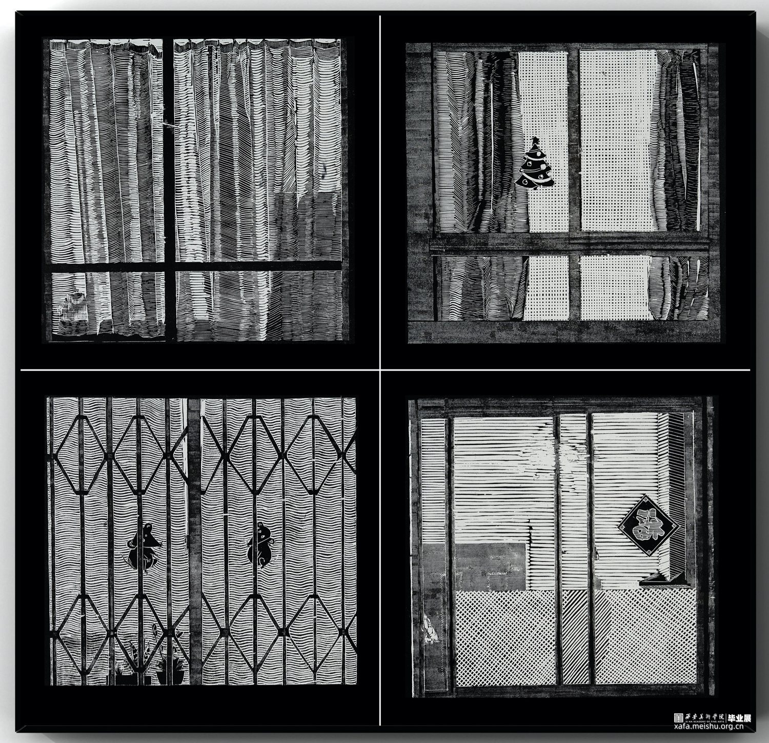 作品是由世事变化之快、城市飞速发展,但人与人之间的距离却越来越疏远感触得来。自己在观察着一扇扇窗口,每一扇窗口的背后都发生着不同的故事。伴随着现代科技的发展,房屋的进深越来越大,人们距离外界的距离也是越来越远。在自己与窗口的对视中,产生出了有关于城市题材的黑白木刻作品。