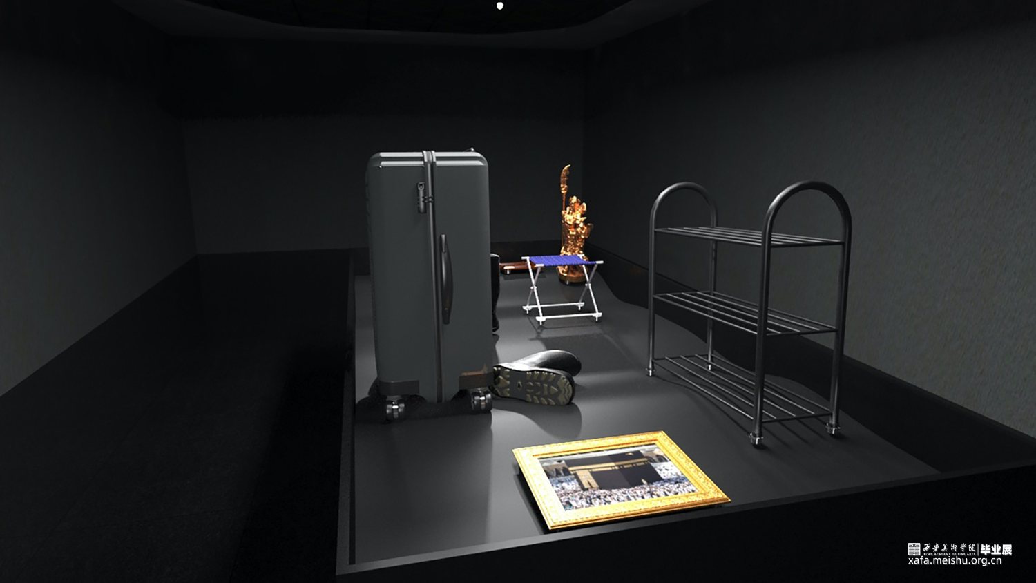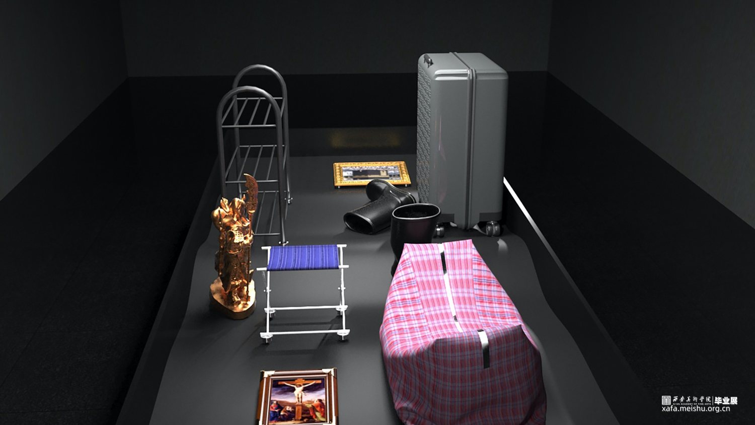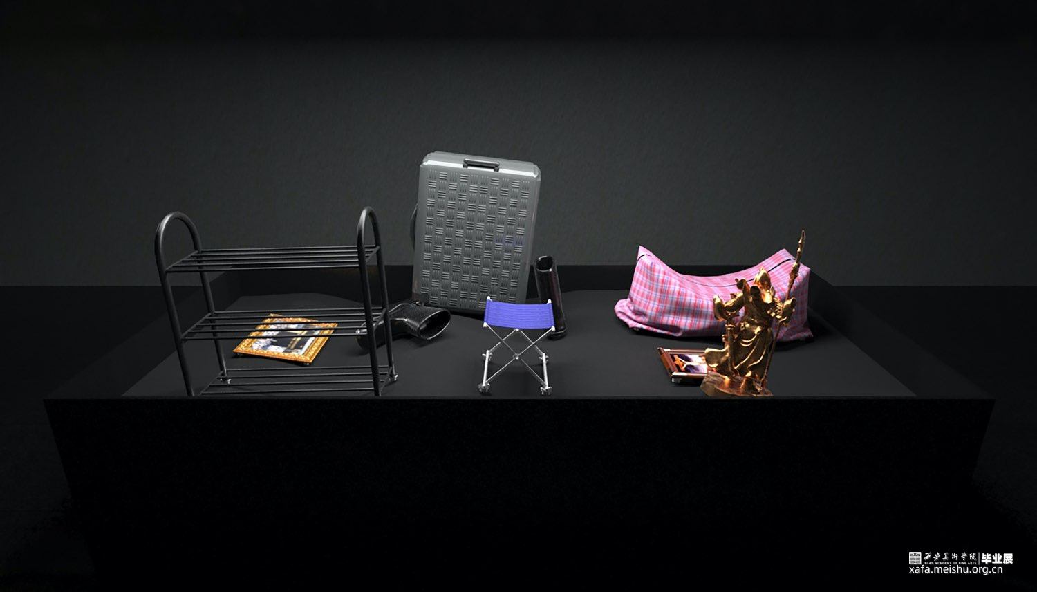 在政府及媒体的舆论造势之下,城中村似乎成了城市化进程中的众矢之的,为了时代的利益而不得不被推上火刑柱,租客为了在城市中生存而四处迁移,但这一切基本都被不可抗的外力所左右。我选用租客的一些日常物件,将其置于上下波动的平台上,物品受制于平台的运动规律,只能在一定范围内活动,且随时有倾倒的可能,如同底层民众在社会现场中的挣扎境况,是一场没有结果的预言。