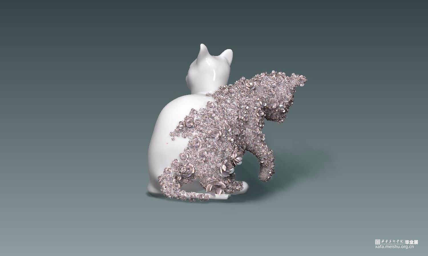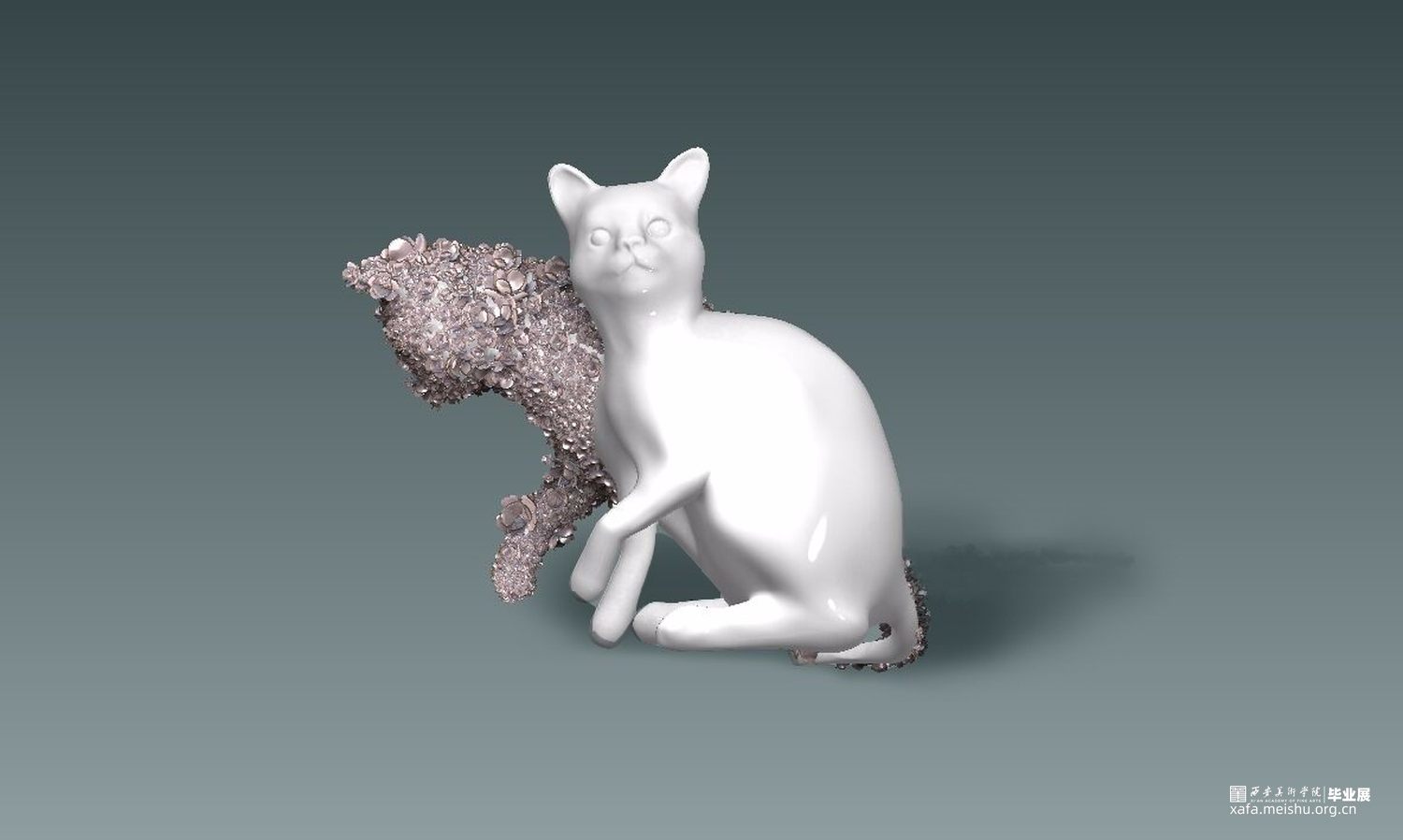 在作品中我想使用的是动物与植物的造型来表达内与外,采用两种不同的动态相结合的方法体现出内外表里,希望两种同属自然的形态能够相互和谐搭配,体现出两者间的包裹关系。