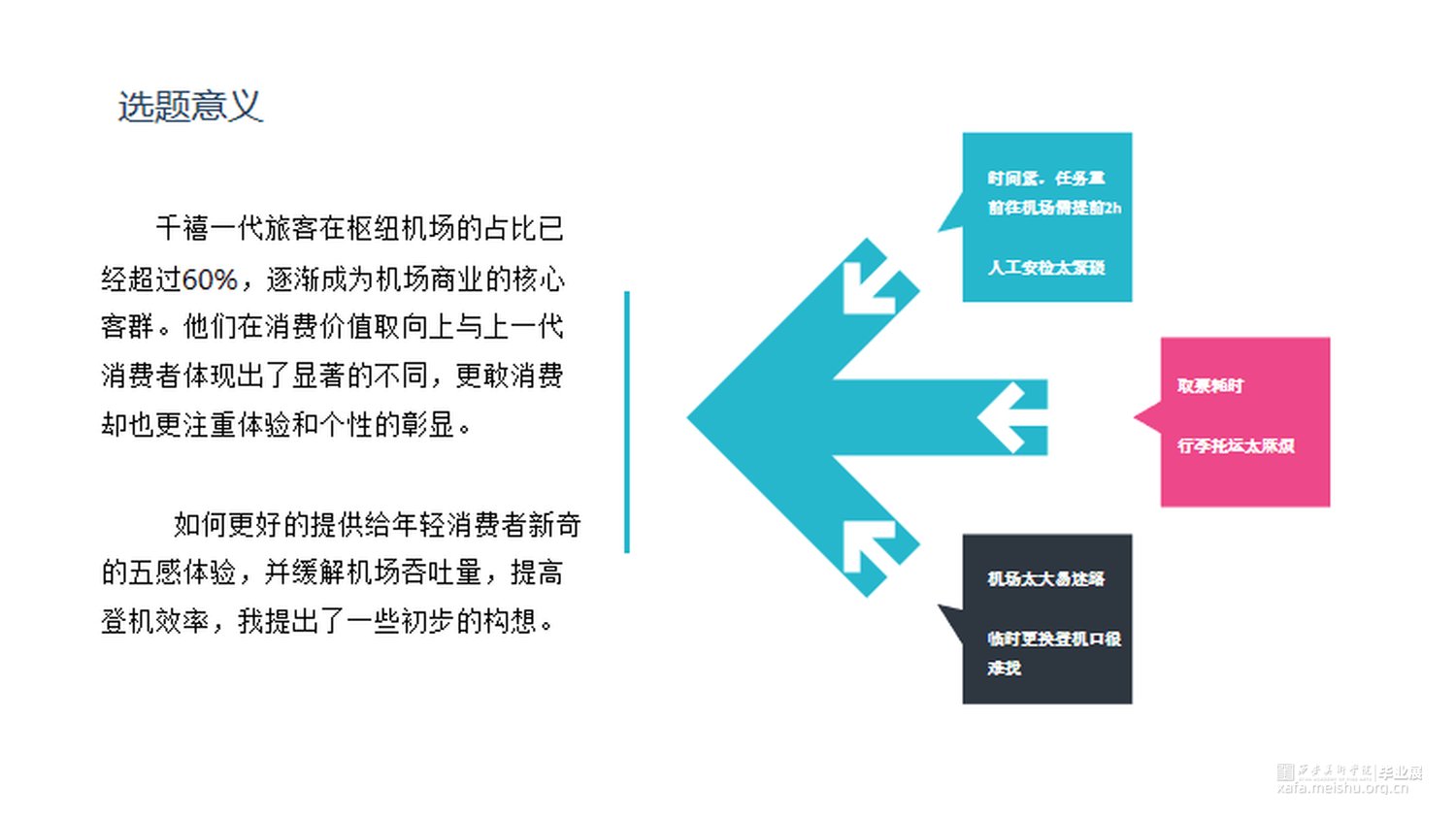 首先,登机一般要提前两小时到达机场,取票、办托运、过安检等流程较为繁琐。而年轻群体或精英人士有时会因为时间匆忙延误登机。其次机场面积较广路程较远,有时换乘,更改登机口容易迷路,寻找地点相对不太便捷。最后,行李需要自己办理托运,耗费了太多时间。本设计希望能缩短整个登机流程,出票可以在办理托运时自行打印机票,机器可以自动将乘客送往登机口,而初步安检也可通过此机器扫描完成,送往人流较少的通道尽快通过。