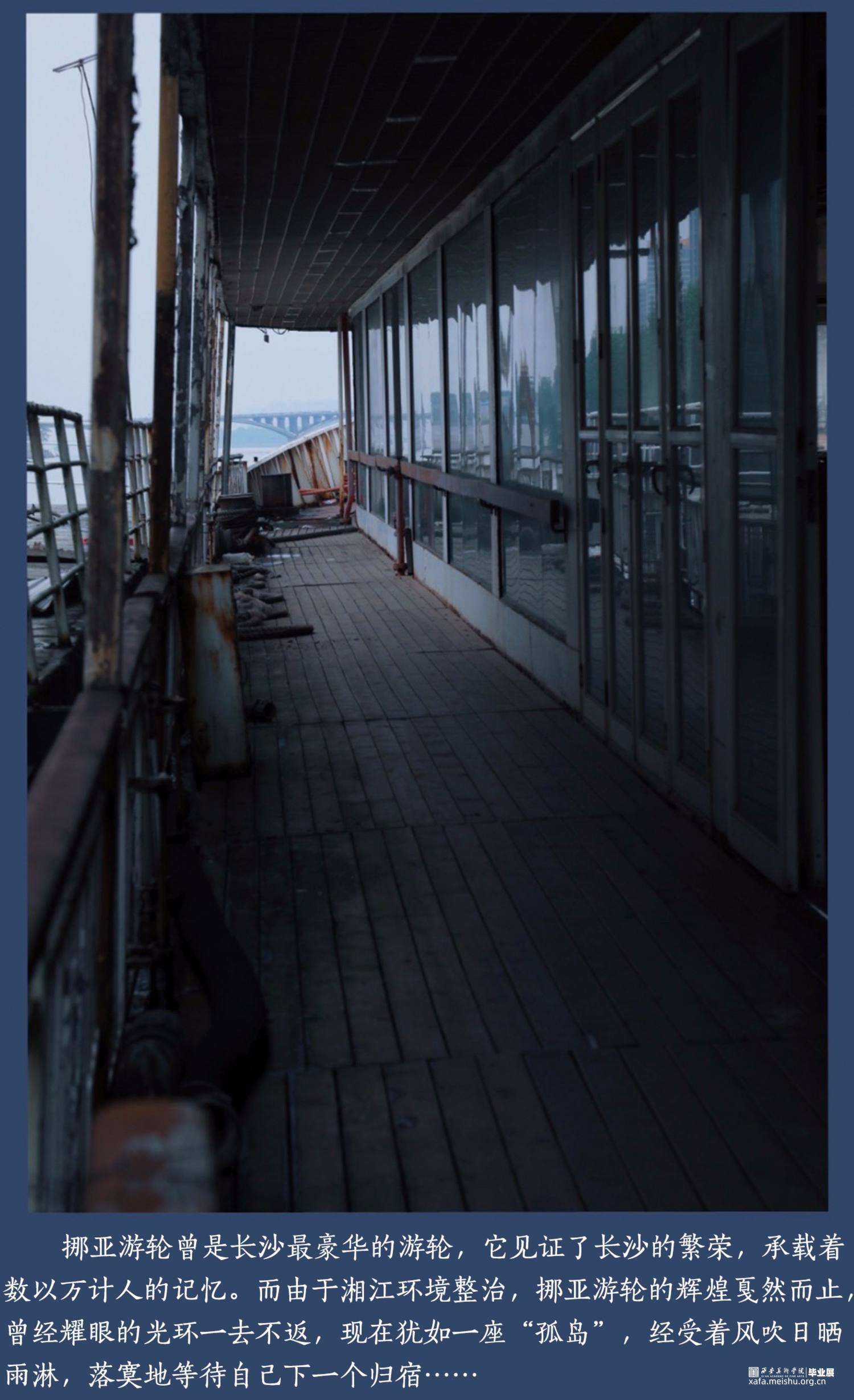 挪亚游轮曾是长沙最豪华的游轮,它见证了长沙的繁荣,承载着数以万计人的记忆。而由于湘江环境整治,挪亚游轮的辉煌戛然而止,曾经耀眼的光环一去不返,现在犹如一座“孤岛”,经受着风吹日晒雨淋,落寞地等待自己下一个归宿……