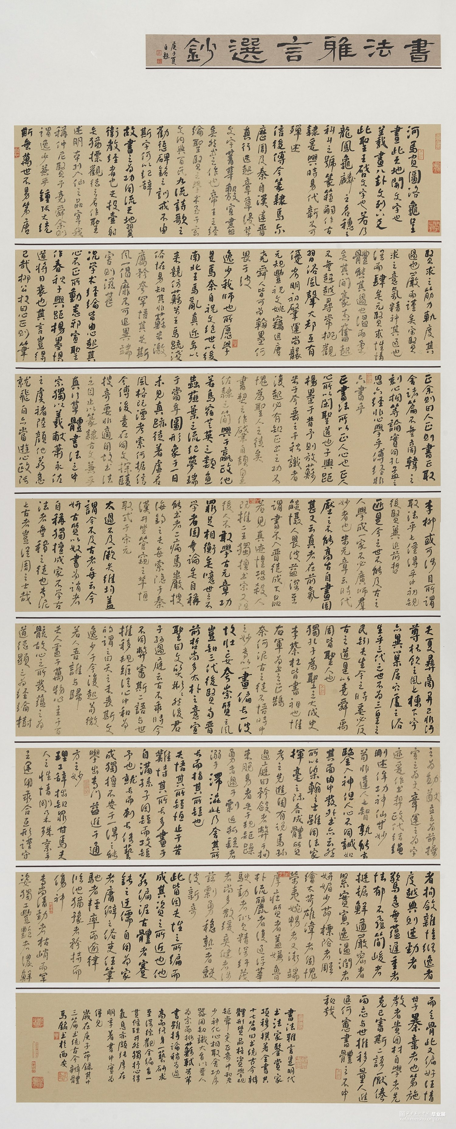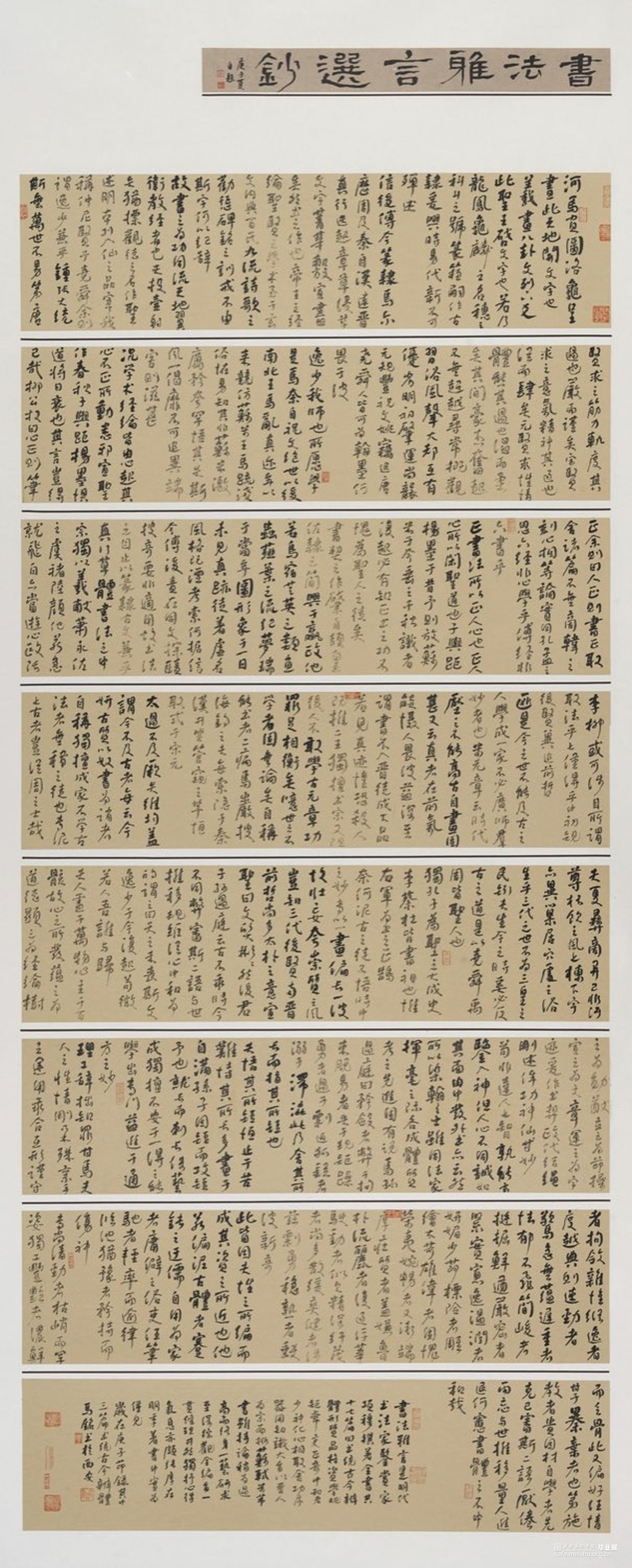 此幅行书作品,尺寸307*123cm,内容为《书法雅言》,因为对颜行书的喜欢和热爱,在毕业创作的时候以此风格为主 ,在选择内容的时候,主要选择书论的内容,这样更能紧扣自己本专业的知识。