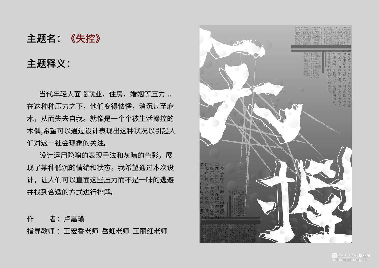 当代年轻人面临就业,住房,婚姻等压力。在这种种压力之下,他们变得怯懦,消沉甚至麻木,从而失去自我。就像是一个个被生活操控的木偶,希望可以通过设计表现出这种状况以引起人们对这一社会现象的关注。