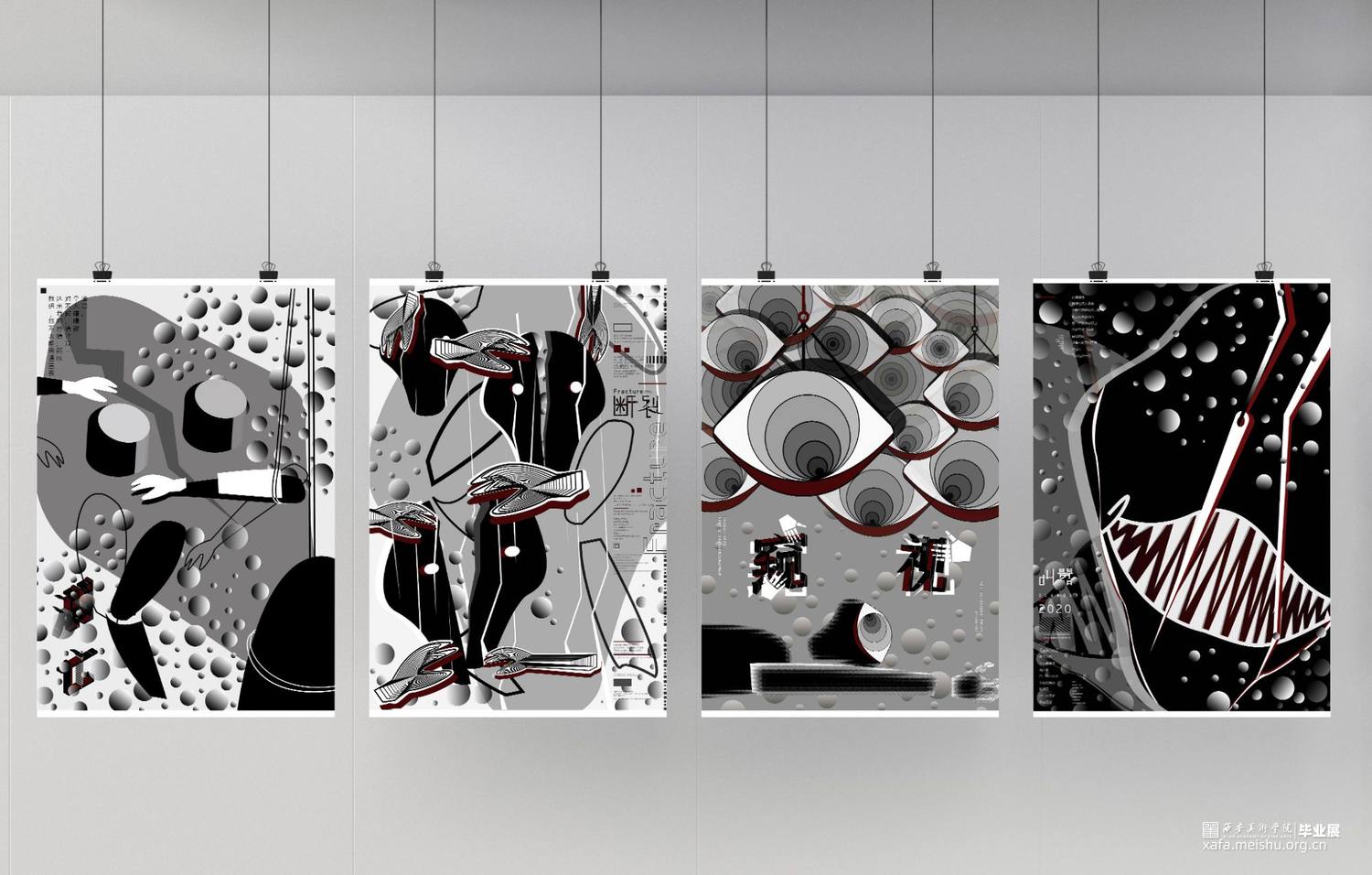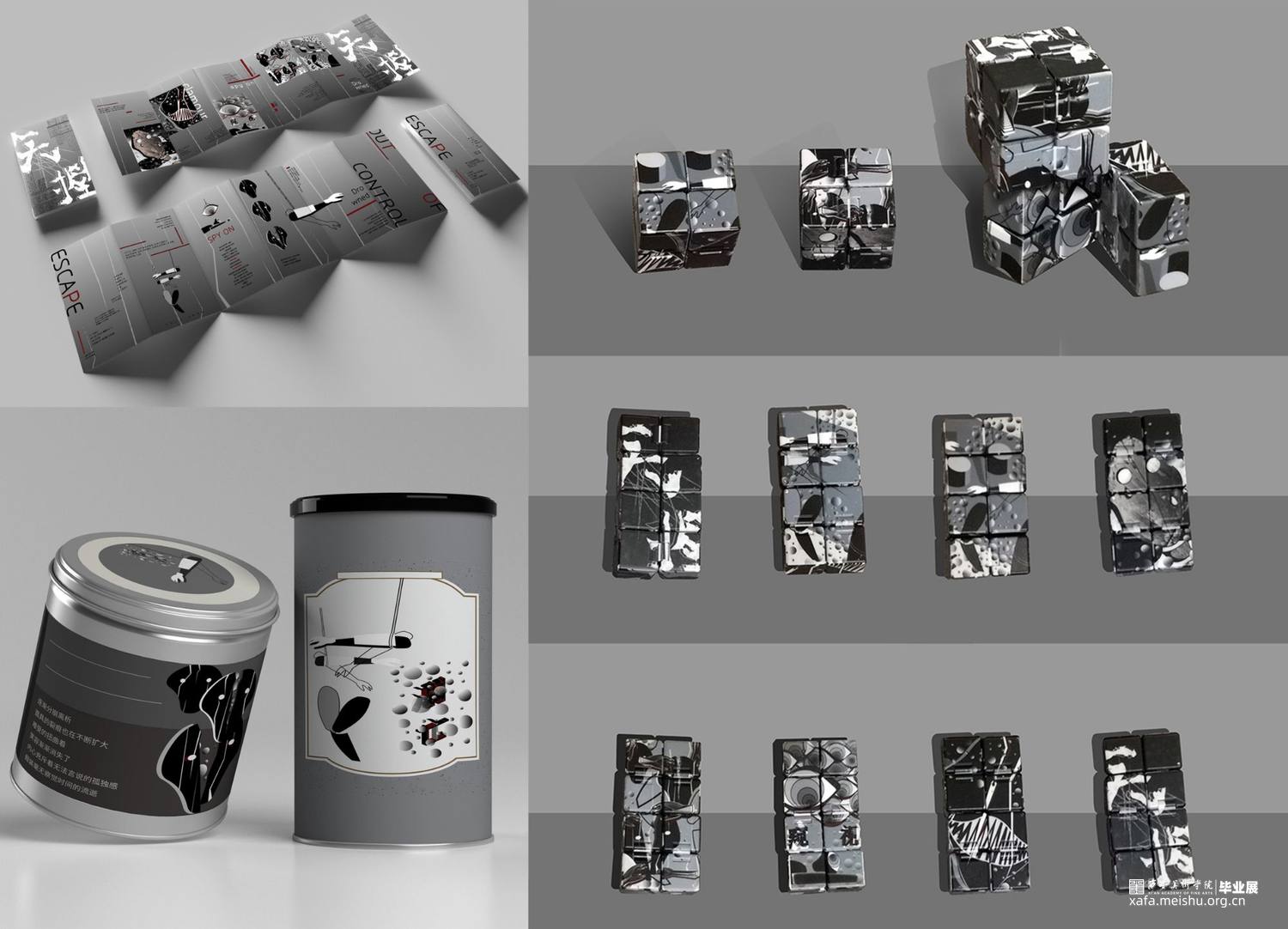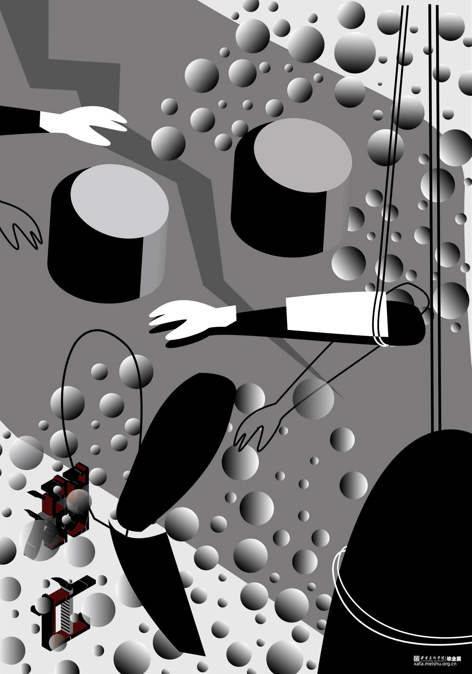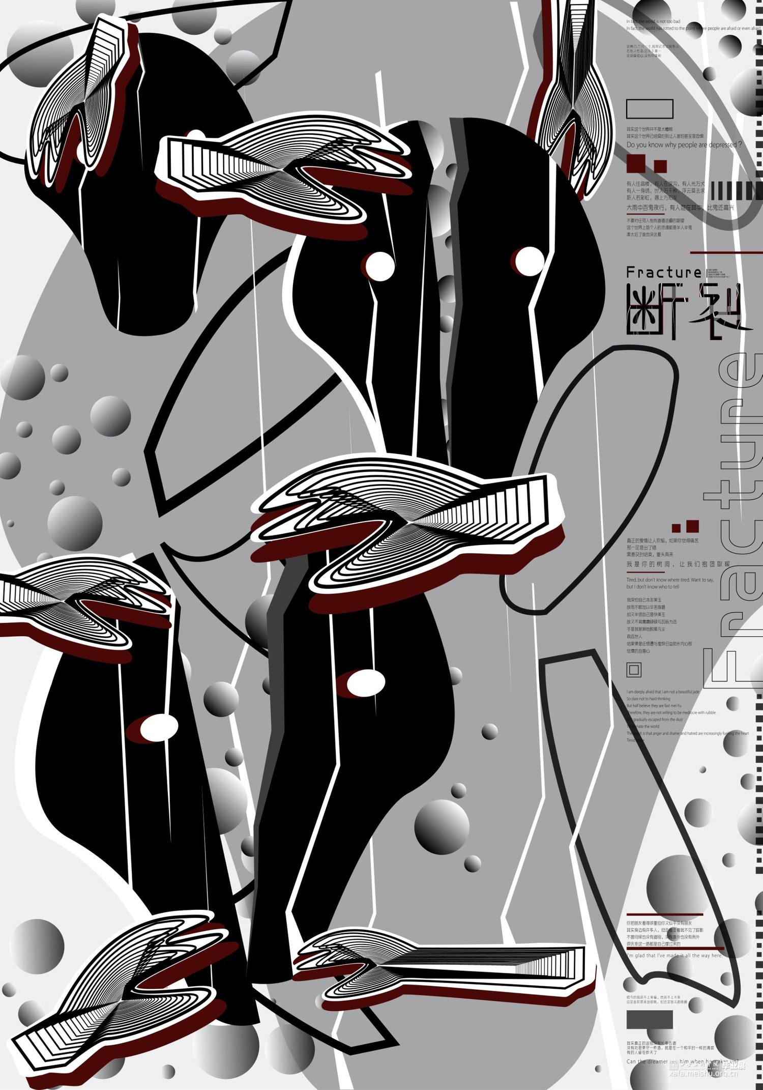 设计运用隐喻的表现手法和灰暗的色彩,展现了某种低沉的情绪和状态。我希望通过本次设计,让人们可以直面这些压力,而不是一味的逃避并找到合适的方式进行排解。
