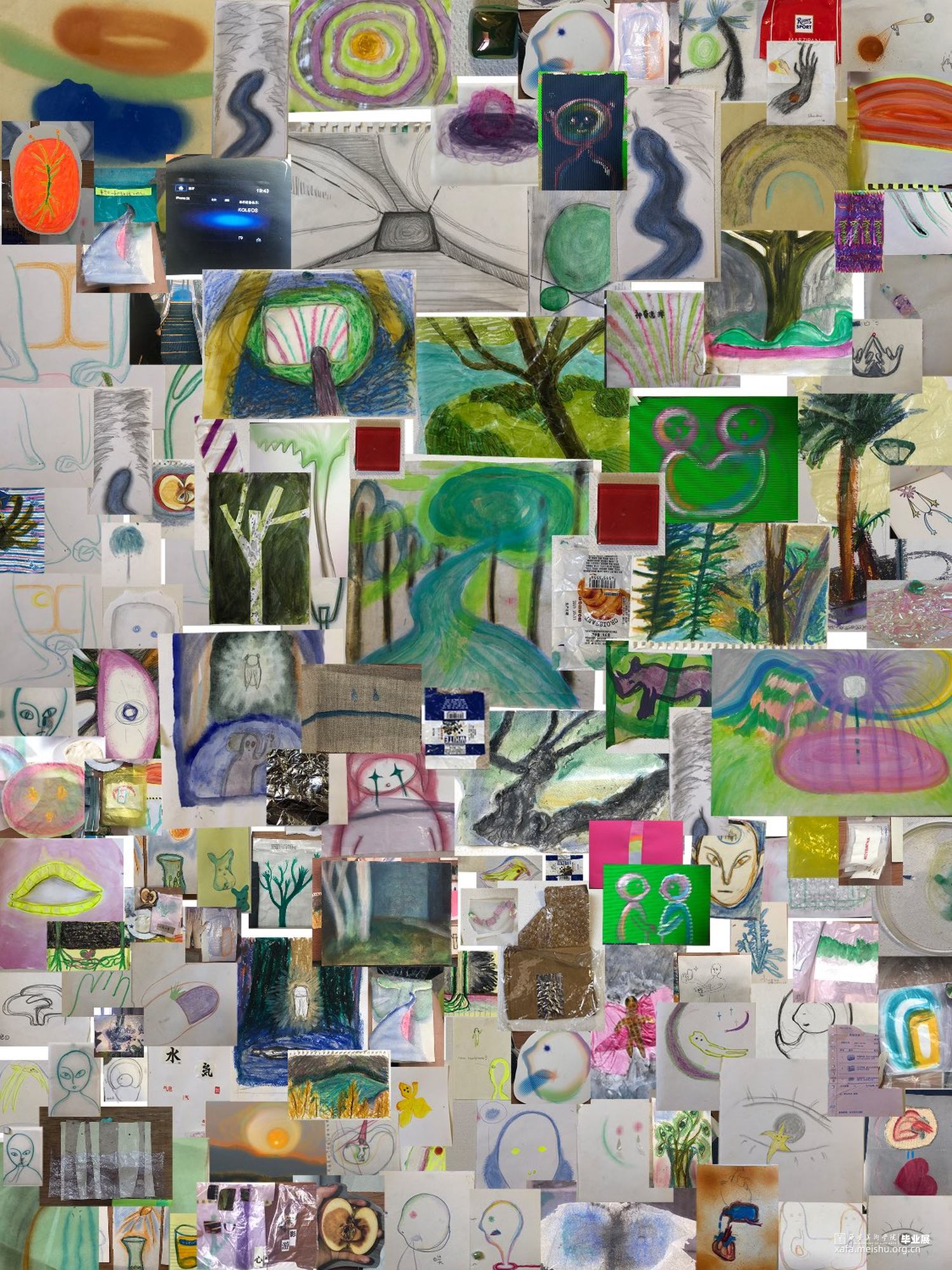 记录每日所见以及想法,由不同尺寸、不同材料的小画面以及与自己生活息息相关的包装纸组合而成,有些小书以动态效果呈现,不同于主流纸质书,它们更加轻薄,但翻页时的材质的声音让他们存在感更强。创作中每一张或每一组都在代替日常语言去讲述和呈现我对周遭的感受,捕捉事物中感兴趣的点,并将其抽离再现,呈现出它们的另一面。分开来看它们是单薄的,不够完整的,更像是一些词汇,或是短句,但彼此之间又相互联系。这些画面层层叠加和覆盖,相互遮挡,有的明晰跳跃,有的被隐藏但一直存在。