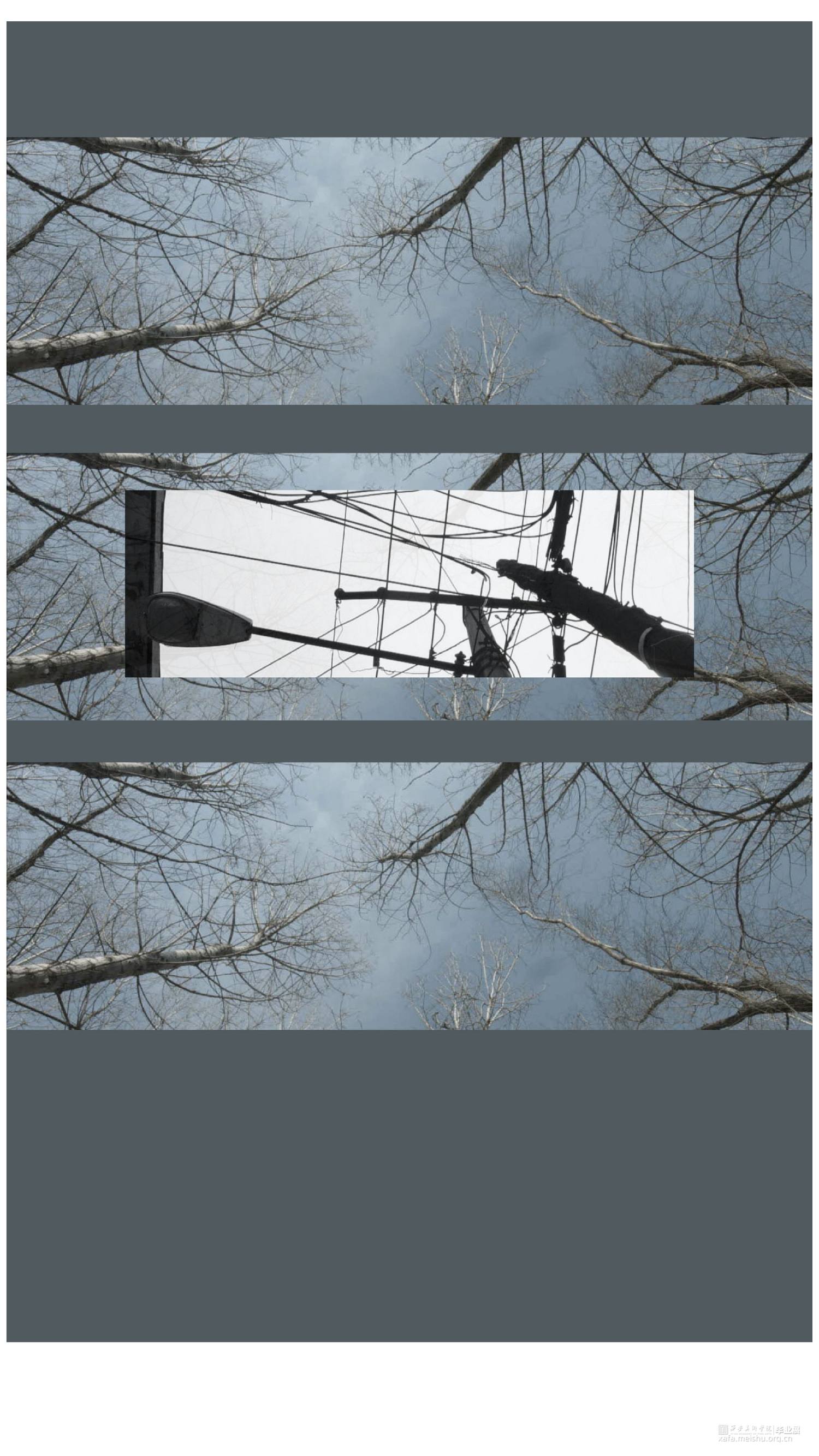 通过镜头,我记录了生活中的一些普通的场景,捕捉影像,发现,时间过的太快,本身这些是应该重叠在一起的,繁华的城市本身是茂密的绿色,缠绕的电线本身也许是一颗枯树,很多经历都在重复,日复一日的鱼肚白总是横游在楼宇间,人总是不爱说话,灯光亮了又暗,井底之蛙,每天都有新生的婴儿,死去的建筑,我们从这里去到那里,家的声音又静又吵,落叶化泥新叶又长,浩瀚的自然,渺小的蝼蚁。我试图重构城市、自然、世界的距离,站在我的地方,去回头看,一些若隐若现的痕迹。